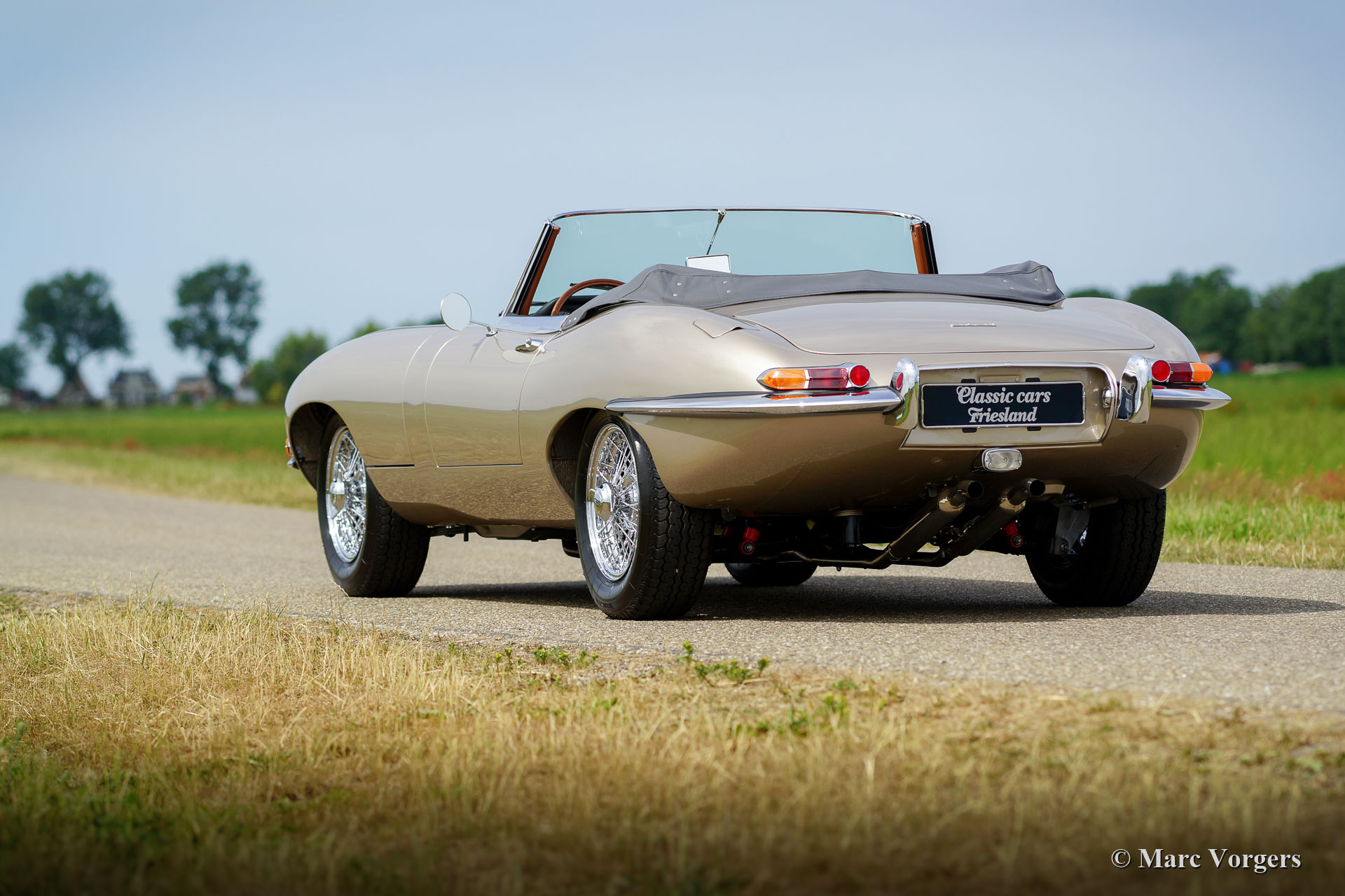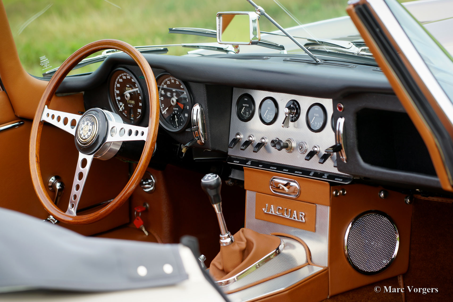 Jaguar E-Type 3.8 Litre série 1 OTS, année 1963. « Matching Numbers and Colours », un certificat Heritage pour confirmer ceci est présent. Couleur « Opalescent Golden Sand » combiné à un intérieur en cuir « Light Tan ». Capot et capuche en mohair gris français. Ce fabuleux Jaguar E-type OTS 1963 (Open Two Seater, également appelé Roadster) fut entièrement et parfaitement restauré par un spécialiste Jaguar aux Pays-Bas. La restauration a commencé en 2014 et s’est achevée en 2018. Tout fut restauré / révisé et / ou renouvelé. Les coûts et les efforts ont été épargnés pour enseigner la perfection. Un fichier de restauration complet avec rapport de photo et factures est présent. Cette magnifique Jaguar E-Type est en parfait état de concours ! L'automobile est équipée d'un radiateur en aluminium, d'un système de freinage amélioré, d'un échappement en acier inoxydable, de roues en fil chromé et d'un volant avec une jante en bois. Cette Jaguar E-type est livré avec la boîte à outils et le manuel d’atelier d’origine. Ceci est un exemple de TOP !