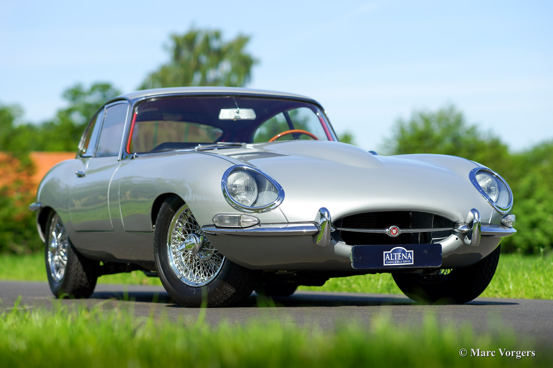 Jaguar E-type 4.2 Litre series 1 FHC, year 1967. Chassis number 1E33695, matching numbers. Colour silver metallic with a red leather interior. This magnificent E-type Fixed Head Coupe was imported to the Netherlands in the year 2002. The automobile was extensively restored to perfection. This Jaguar E-type is in superb (excellent++) condition; concours! An extensive photo reportage of the restoration is present.