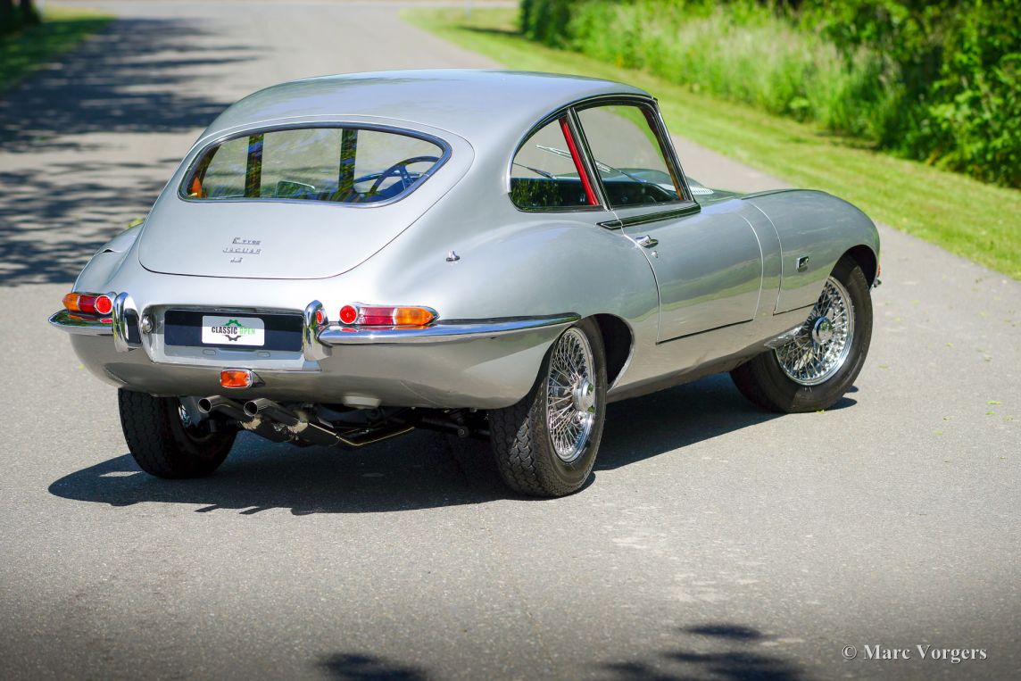Jaguar E-type 4,2 litres FHC 2+2, année 1966. Couleur argent métallisé combinée avec un intérieur en cuir rouge et un tapis rouge. Cette magnifique Jaguar E-type série 1 FHC 2+2 (Fixed Head Coupé) à « matching numbers » fut vendue neuve en France. Cette Jaguar E-Type n'a jamais été restaurée et est en très bon état ! La voiture présente tous les détails d'origine de la série 1, comme les fantastiques phares avec couvercles en verre et enjoliveurs chromés, les pare-chocs et l'intérieur aux formes merveilleuses. Le modèle 2+2 fut introduit en 1966. Construit sur un empattement élargi, le modèle 2+2 offrait un espace supplémentaire pour deux petits sièges arrière et plus d'espace pour la tête des passagers de grande taille. La voiture présente une magnifique patine vintage et l'intérieur en cuir est encore d'origine. Le tableau de bord de la série 1 est un plaisir à regarder avec les nombreuses jauges et interrupteurs. Il est spécial que ce type E 2+2 dispose d'une boîte de vitesses manuelle à 4 vitesses ; la plupart des modèles 2+2 étaient vendus avec des boîtes automatiques à 3 vitesses. Cette voiture européenne a une transmission finale ‘plus longue’ que les modèles américains, ce qui donne une vitesse de pointe plus élevée et une croisière plus détendue avec des révolutions de moteur plus faibles ! La boîte de vitesses manuelle donne à la voiture un caractère sportif ! Récemment, le moteur six cylindres en ligne de 4,2 litres, les carburateurs, les freins et la suspension furent révisés. L'embrayage fut renouvelé, tout comme le réservoir d'essence. Cette Jaguar E-type 4,2 litres série 1 2+2 FHC provient de la première année de production. Cette Jaguar E-Type super originale est magnifique roule et pilote parfaitement !