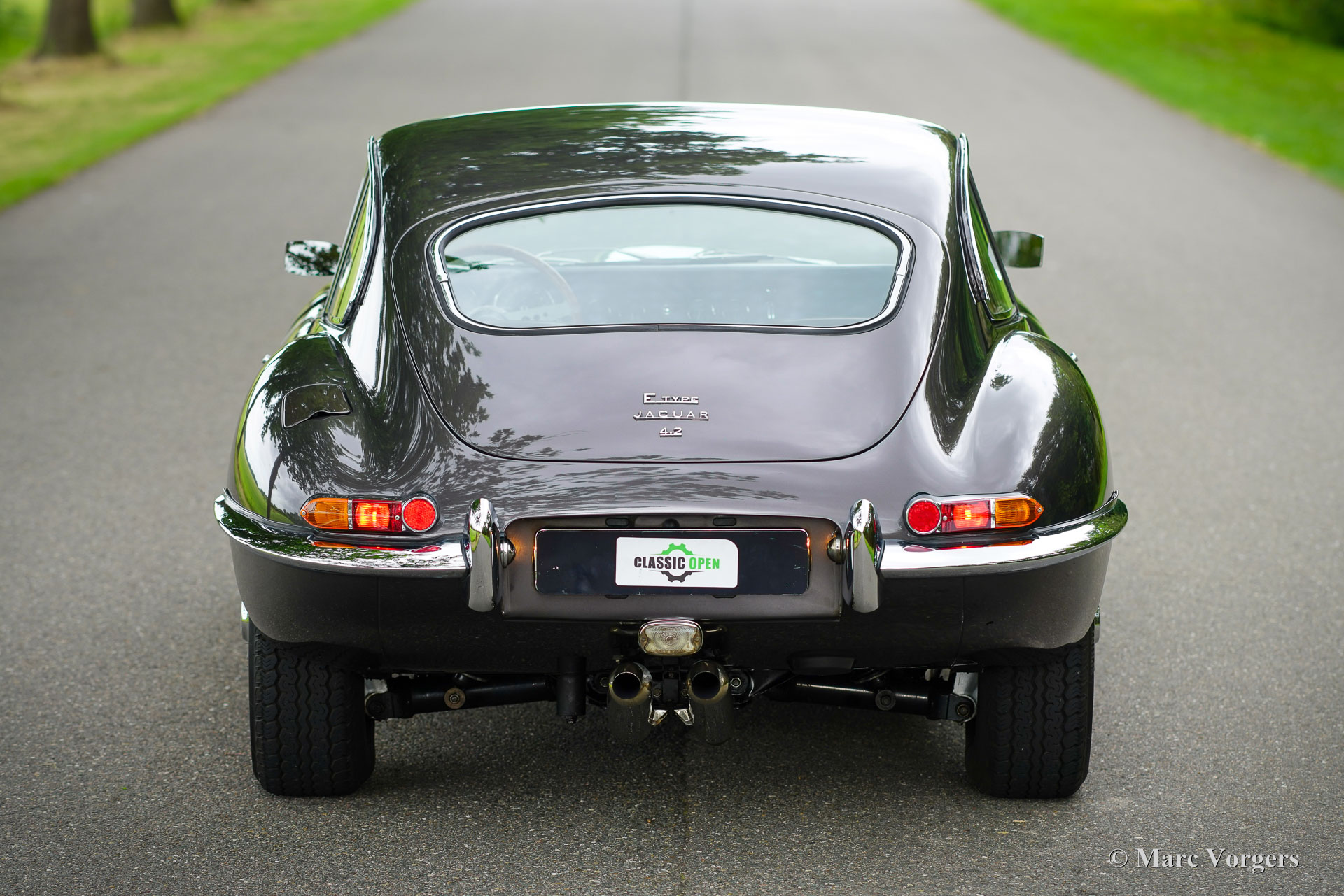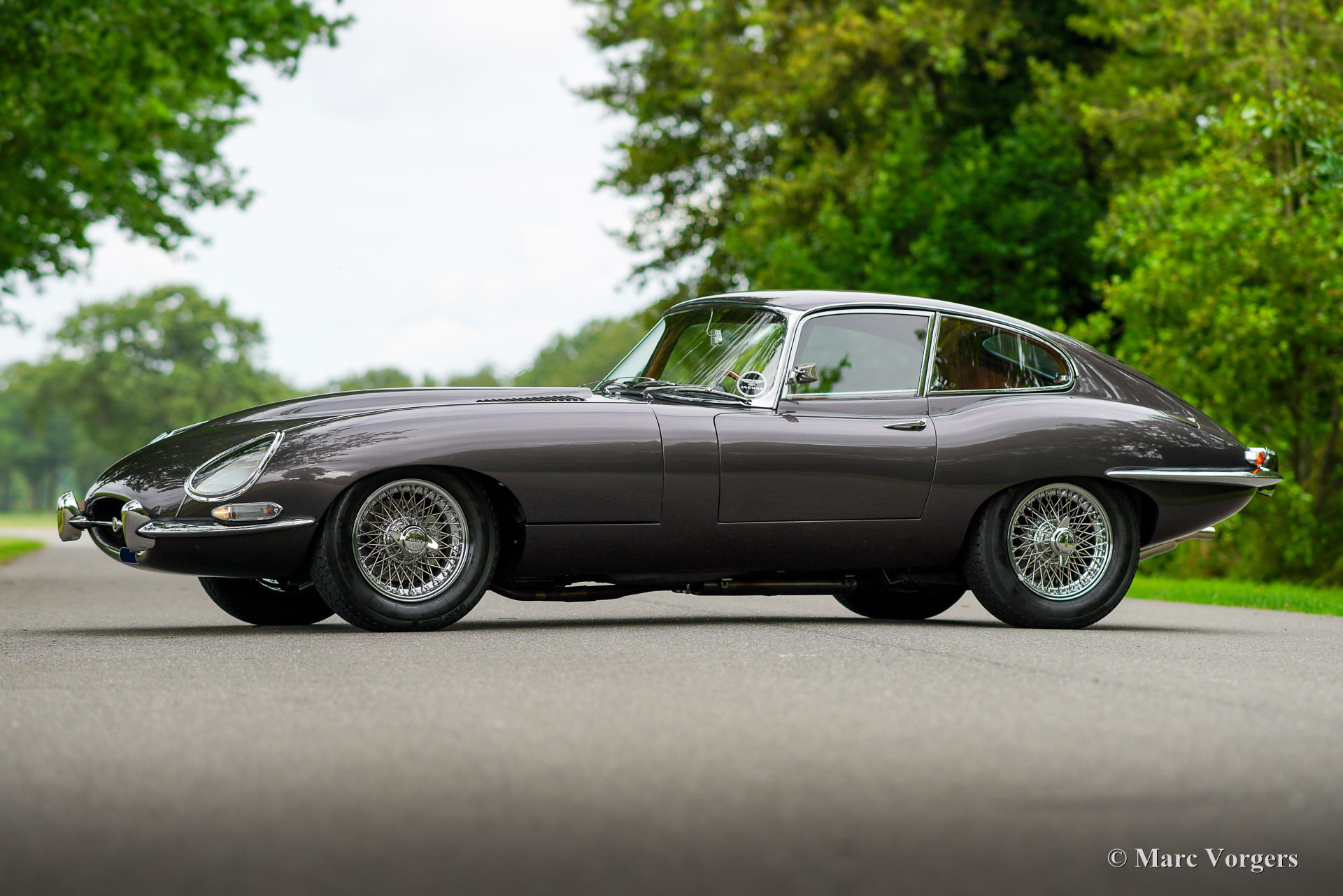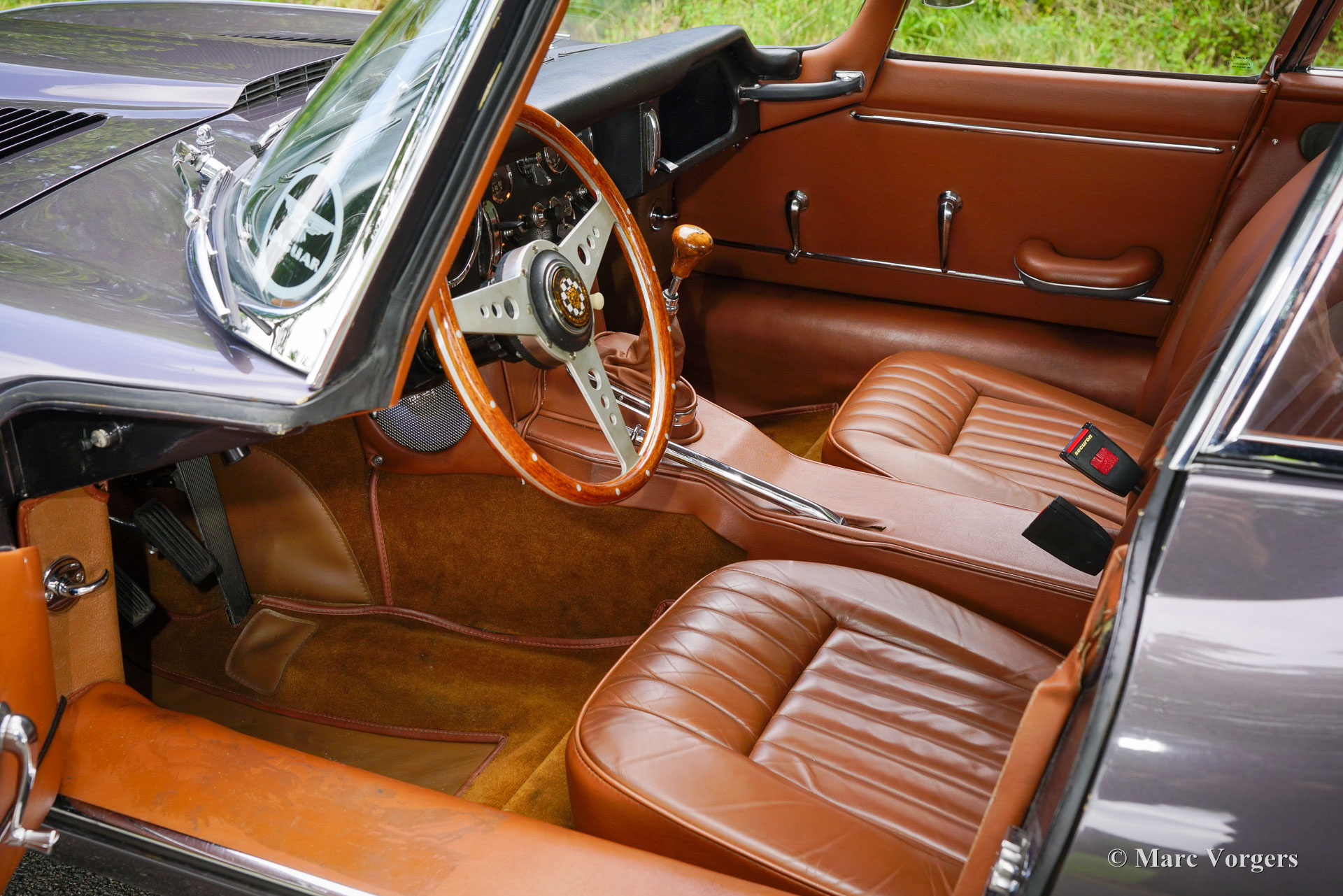 Jaguar E-type 4,2 litres FHC, année 1965. Couleur gris fonce métallisée (Tudor Grey) combinée à un intérieur en cuir marron. Cette Jaguar fut vendue neuve aux États-Unis. En 2007, la voiture fut expédiée en Allemagne où l'automobile a été magnifiquement restaurée. Quelques photos de la restauration sont présentes. En 2009, la Jaguar E-type a trouvé un nouveau propriétaire aux Pays-Bas qui a chéri la voiture jusqu'à nos jours. Cette magnifique E-Type série 1 est en très bon état, et la voiture roule et se manie parfaitement ! La Jaguar E-Type est l'une des plus belles voitures jamais conçues, une icône brillante dans l'histoire de l'automobile. Le modèle de la série 1 avec les phares recouverts de verre est le modèle le plus recherché. Les premiers E-types comportaient un moteur six cylindres en ligne de 3,8 litres, cette dernière voiture de la série 1 est équipée du moteur de 4,2 litres, de freins améliorés, d'un système électrique amélioré et de sièges plus confortables. En 2018, la boîte de vitesses à 4 vitesses aux spécifications américaines d'origine fut remplacée par une boîte de vitesses Tremec à 5 vitesses donnant des révolutions du moteur plus faibles à des vitesses plus élevées. La voiture est livrée avec un certificat d'héritage qui confirme que le moteur est d'origine (numéros de châssis et de moteur correspondants). Cette magnifique Jaguar 4,2 litres FHC (Fixed Head Coupé) ressemble à une image dans cette combinaison de couleurs et la voiture est un plaisir à conduire. Les six cylindres de 265 ch tourne et sonne parfaitement ! Ouvrir le capot long, c'est comme ouvrir une boîte à bijoux… On ne connaît pas de voiture avec un moteur plus joliment présenté. Cette belle Jaguar est équipée de roues à rayons chromées, d'un système d'échappement en acier inoxydable, d'une magnifique radio classique Blaupunkt Frankfurt avec MF/FM et d'un beau volant de style original avec une taille légèrement plus petite pour donner plus d'espace au conducteur. Cette magnifique Jaguar E-Type est magnifique et c’est un très bon exemple. La voiture est prête à être appréciée au maximum !