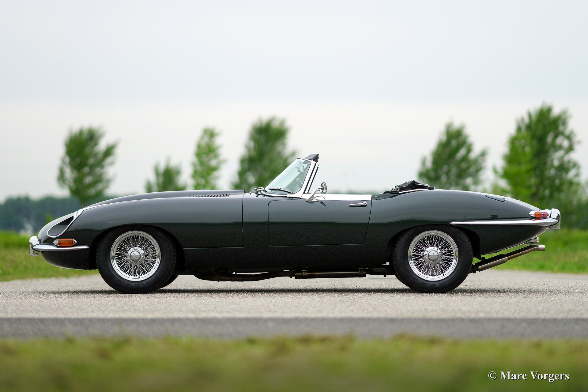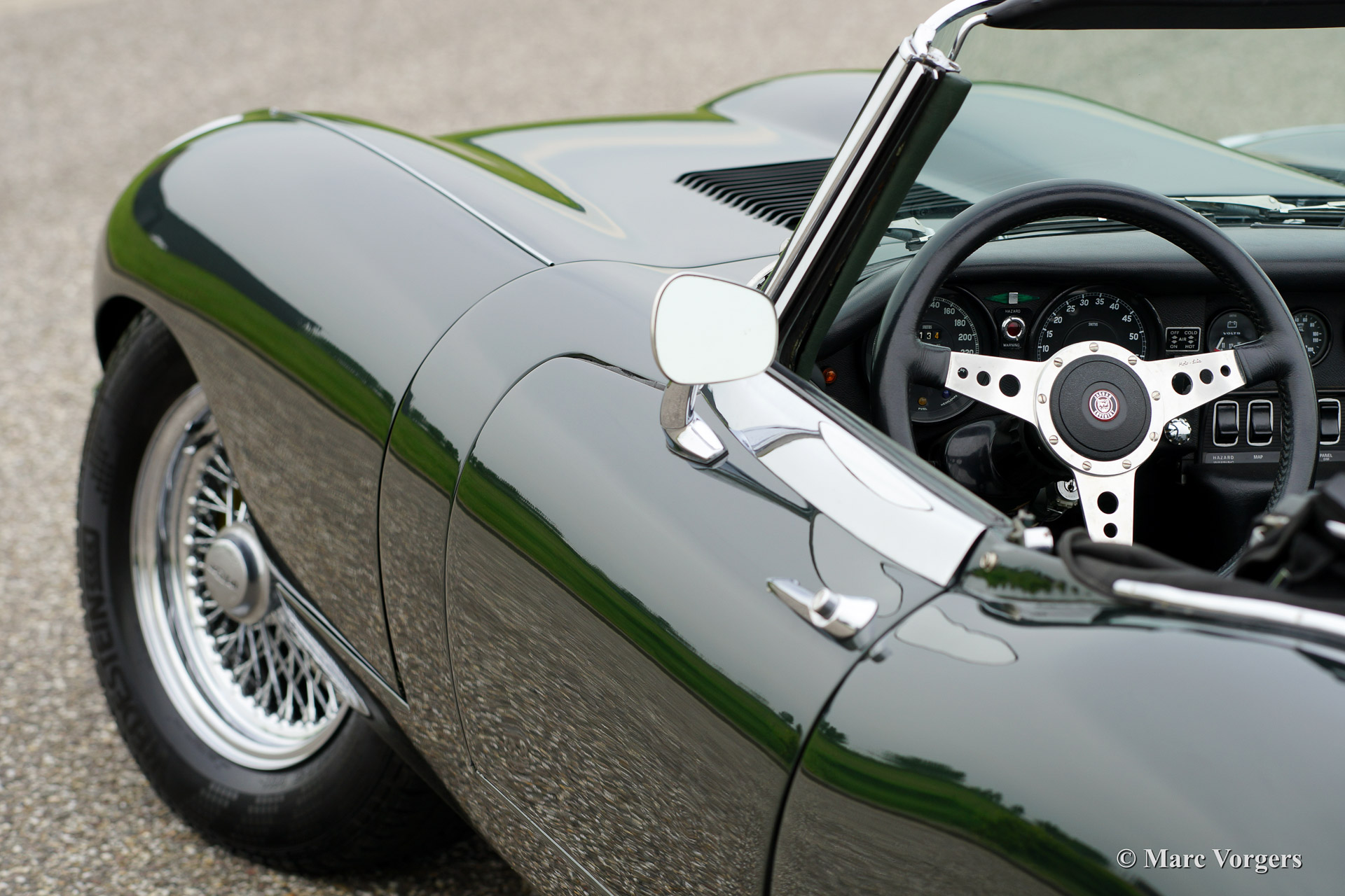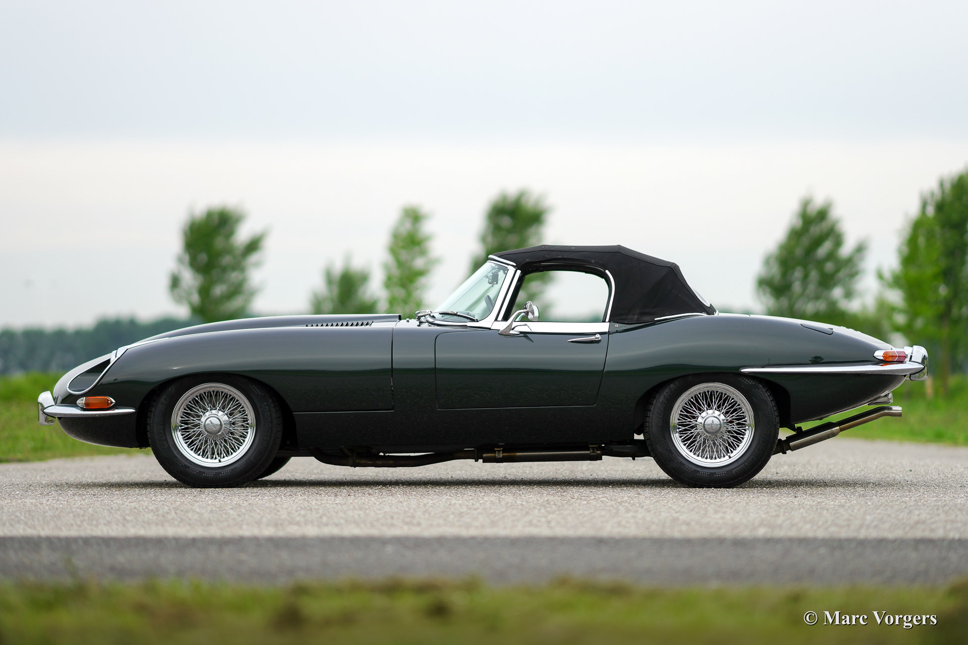 Jaguar E-Type 4.2 Litre series 1.5 Open Two seater (OTS), year of first registration 1969. Chassis number 1E17XXX, engine number 7E17XXX-X. Colour Dark Racing Green metallic with a suede green leather interior. Black soft top. This fabulous Jaguar E-type was top restored by the renowned firm of Piet Mozes Restorations. The restoration was finished in the year 2003 and a photo reportage is present. This E-type is in superb (excellent+) condition!