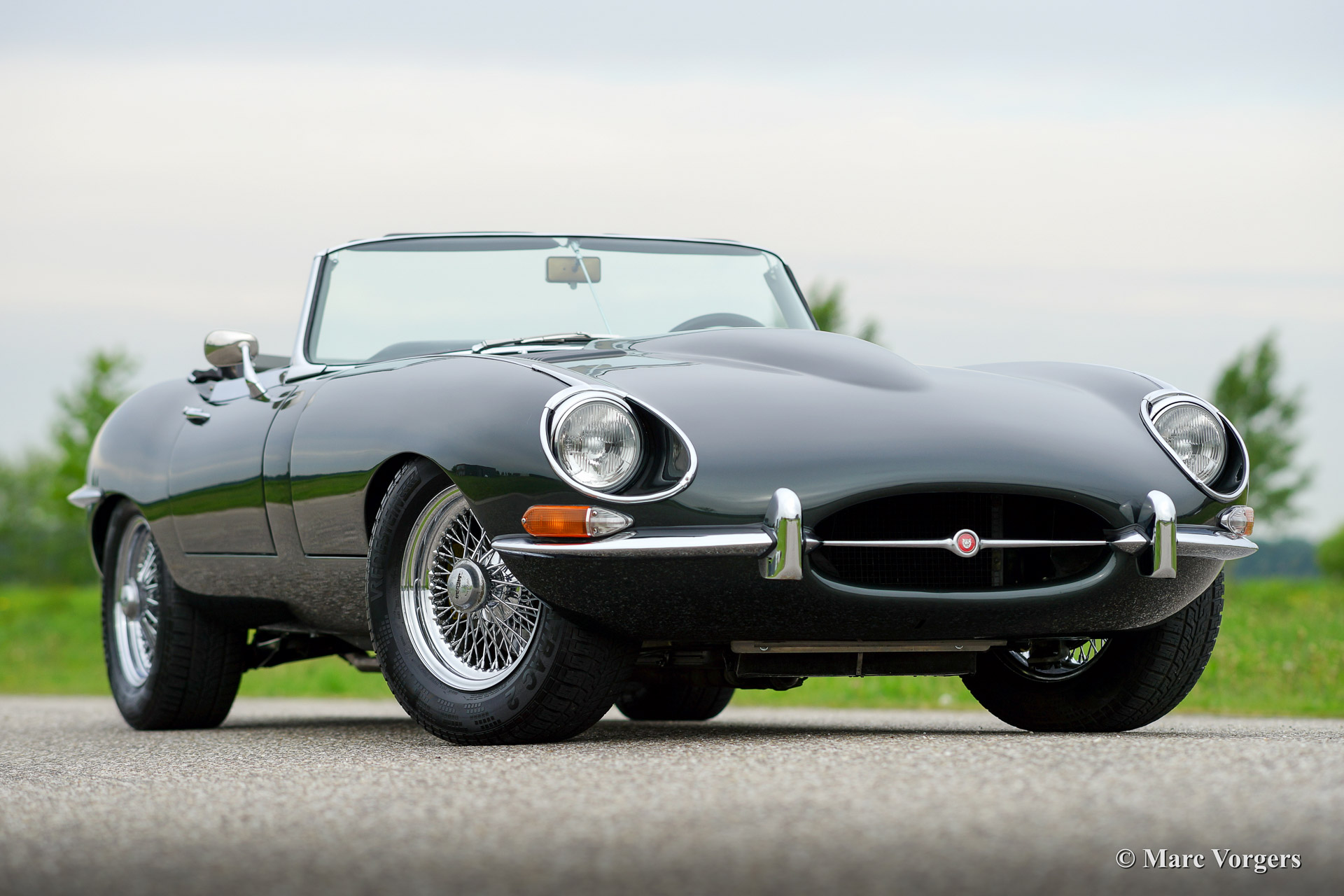 The design of the E-Type series as it was introduced in 1961 is of almost unearthly beauty. Look at all the refined details: the bonnet, the headlights, the back lights, the recess for the wheel housing and the back side, and you will realize that you are looking at absolute, timeless beauty in automobile design.