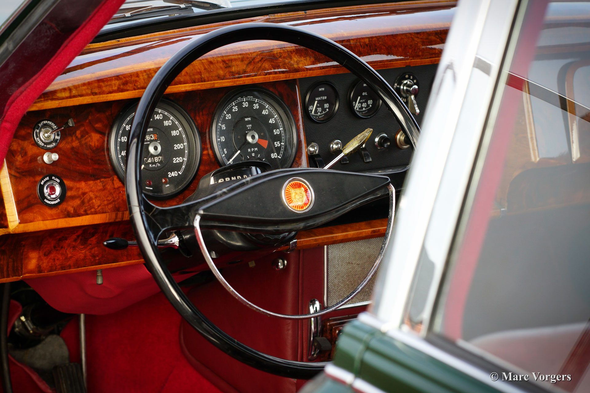 The Mk II derived its power and speed from the famous Jaguar XK engine with which Jaguar had been able to win in Le Mans in 1951 and in 1953 (3.4-litre version). The XK engine in the Mk II was available in three different cylinder capacities, namely 2483 cc/120 horsepower, 3442 cc/210 horsepower and 3781cc/220 horsepower respectively. The 3.8 version had a top speed of no less than 120.5 miles per hour (about 200 km/h). The Jaguar Mk II was built until 1967.