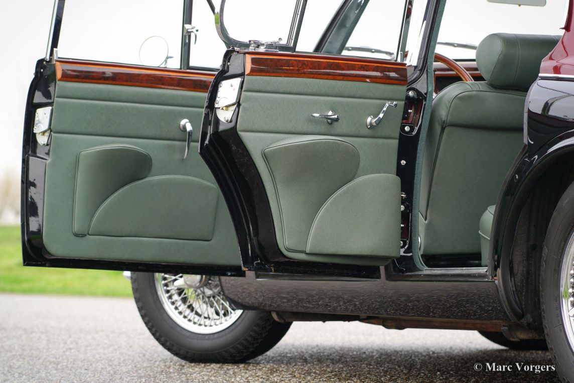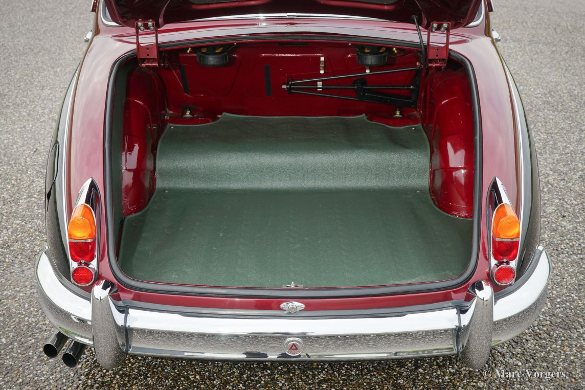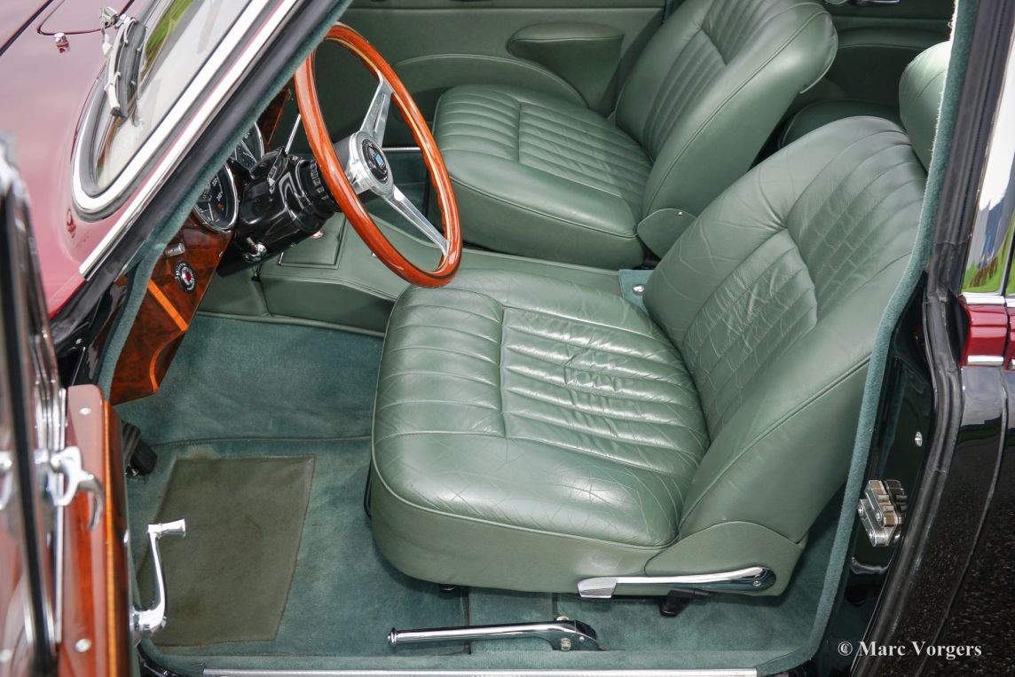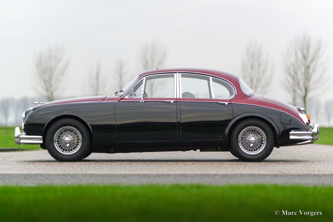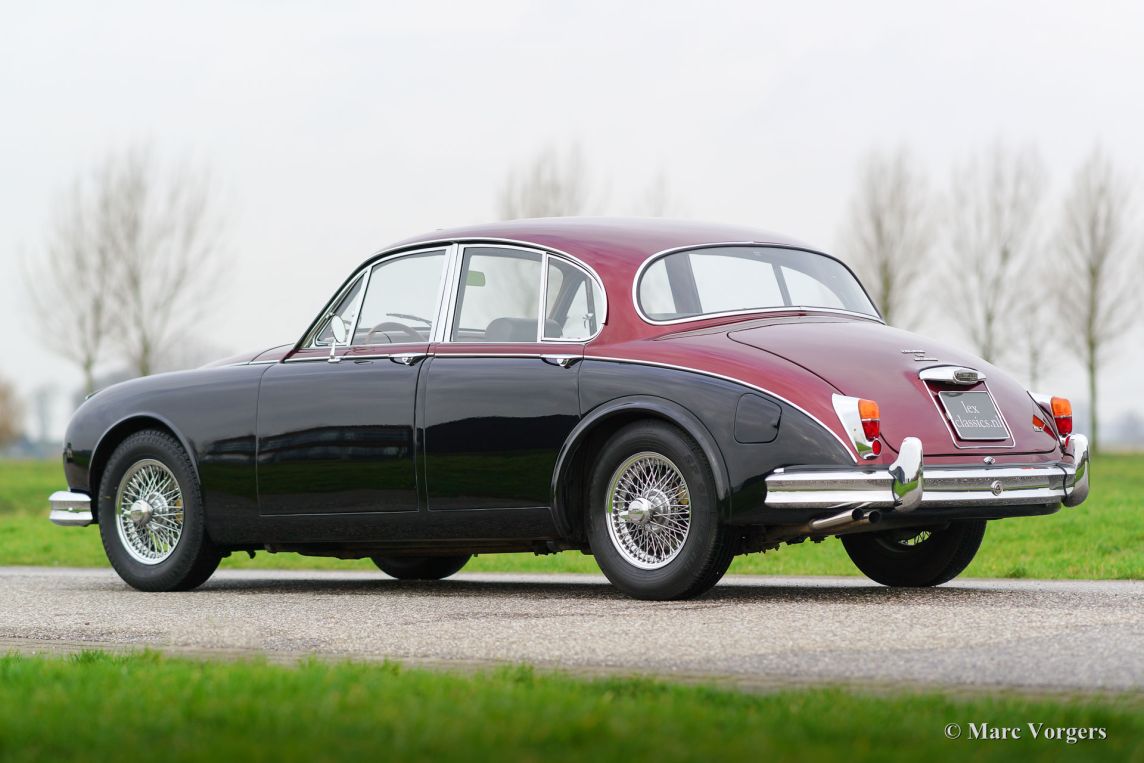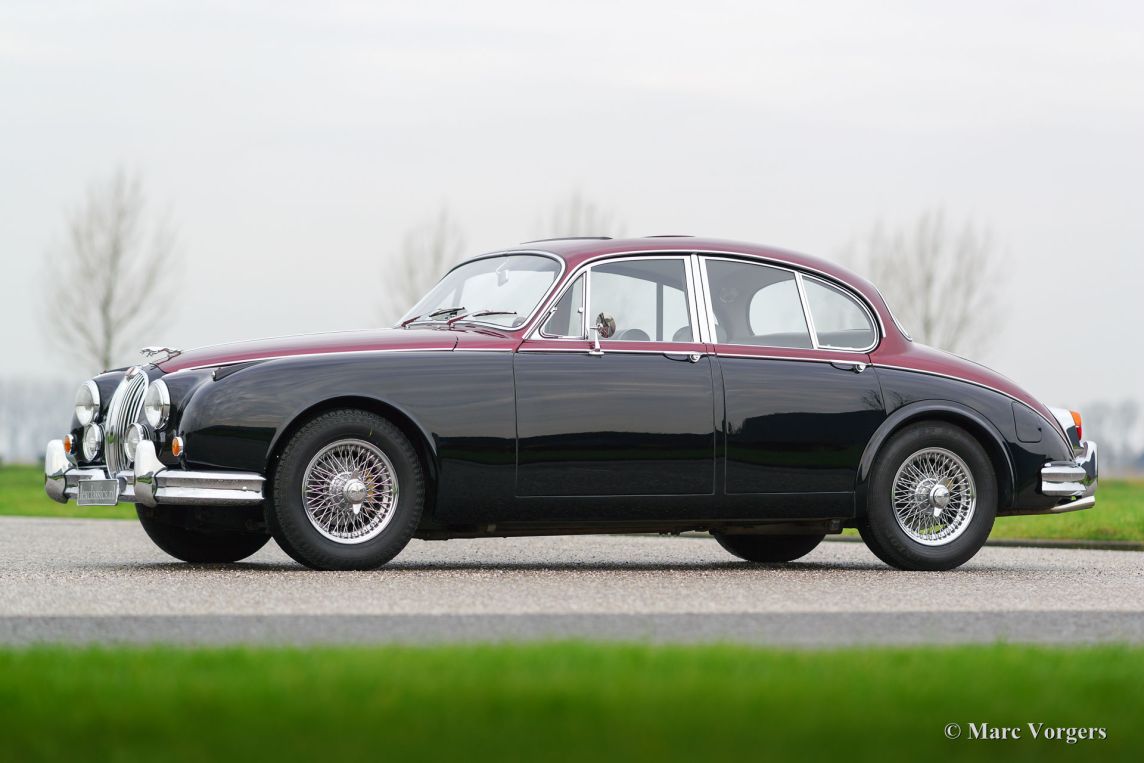 Jaguar Mk II 3.8 Litre, année 1961. Couleur : bicolore noir / rouge métallisé avec un intérieur cuir vert ‘suede’ et tapis vert correspondant. Ce fantastique Jaguar Mk II a été restauré abondamment et parfaitement ‘body-off’ il y a 18 ans par un spécialiste néerlandais Jaguar. Une vaste reportage photo de la restauration est présent. Cette Mk II dispose d'une boîte de vitesses automatique. L'automobile est en superbe état et la voiture roule parfaitement ! Lors de la restauration, plusieurs modifications et améliorations ont été réalisées pour rendre la voiture aussi bon, fiable et sûr que possible.