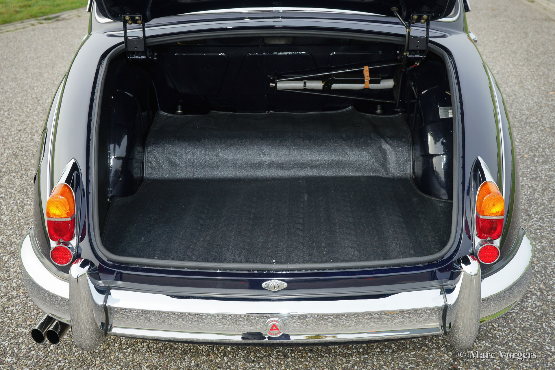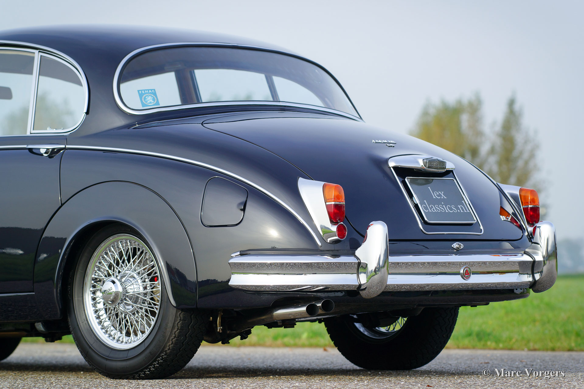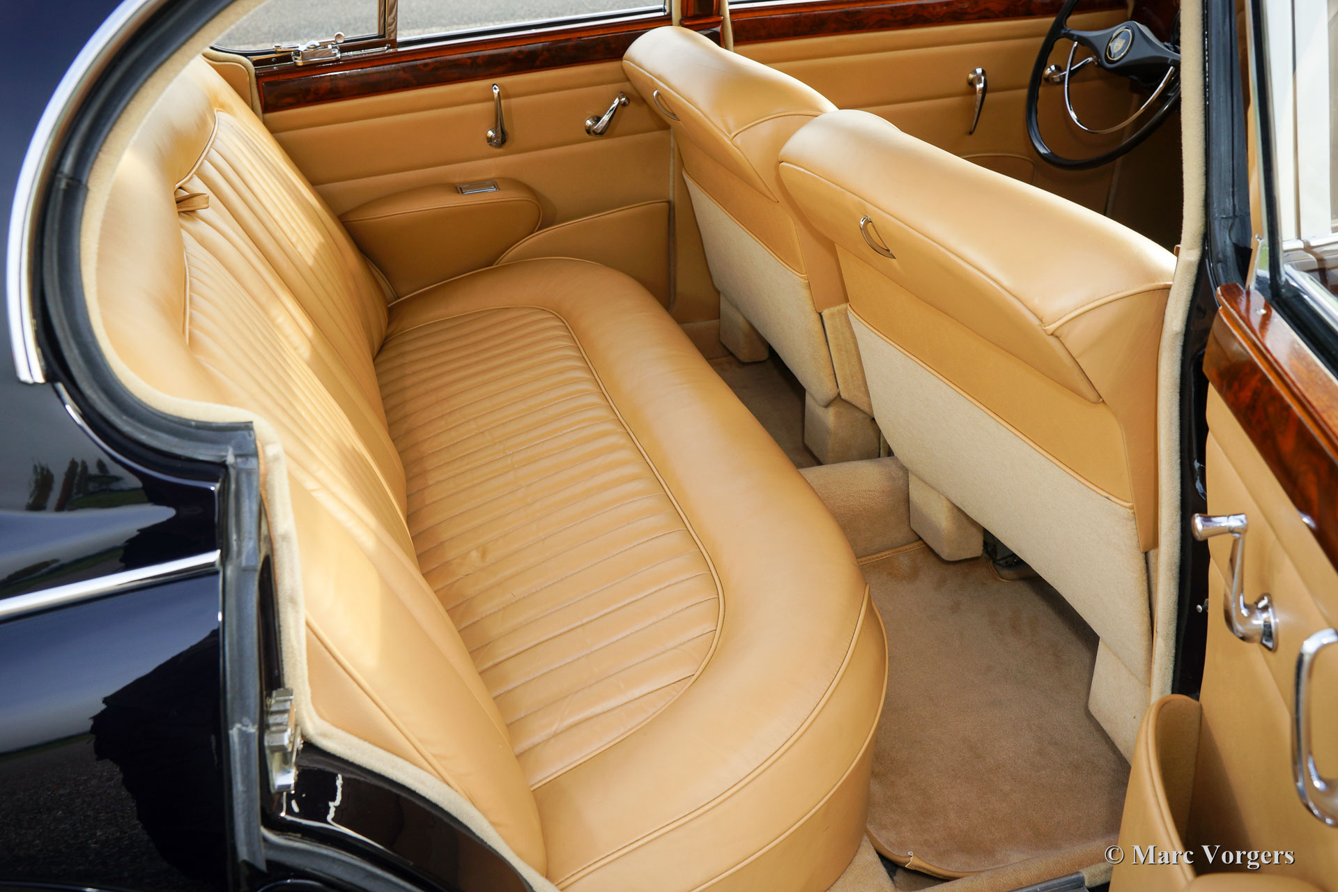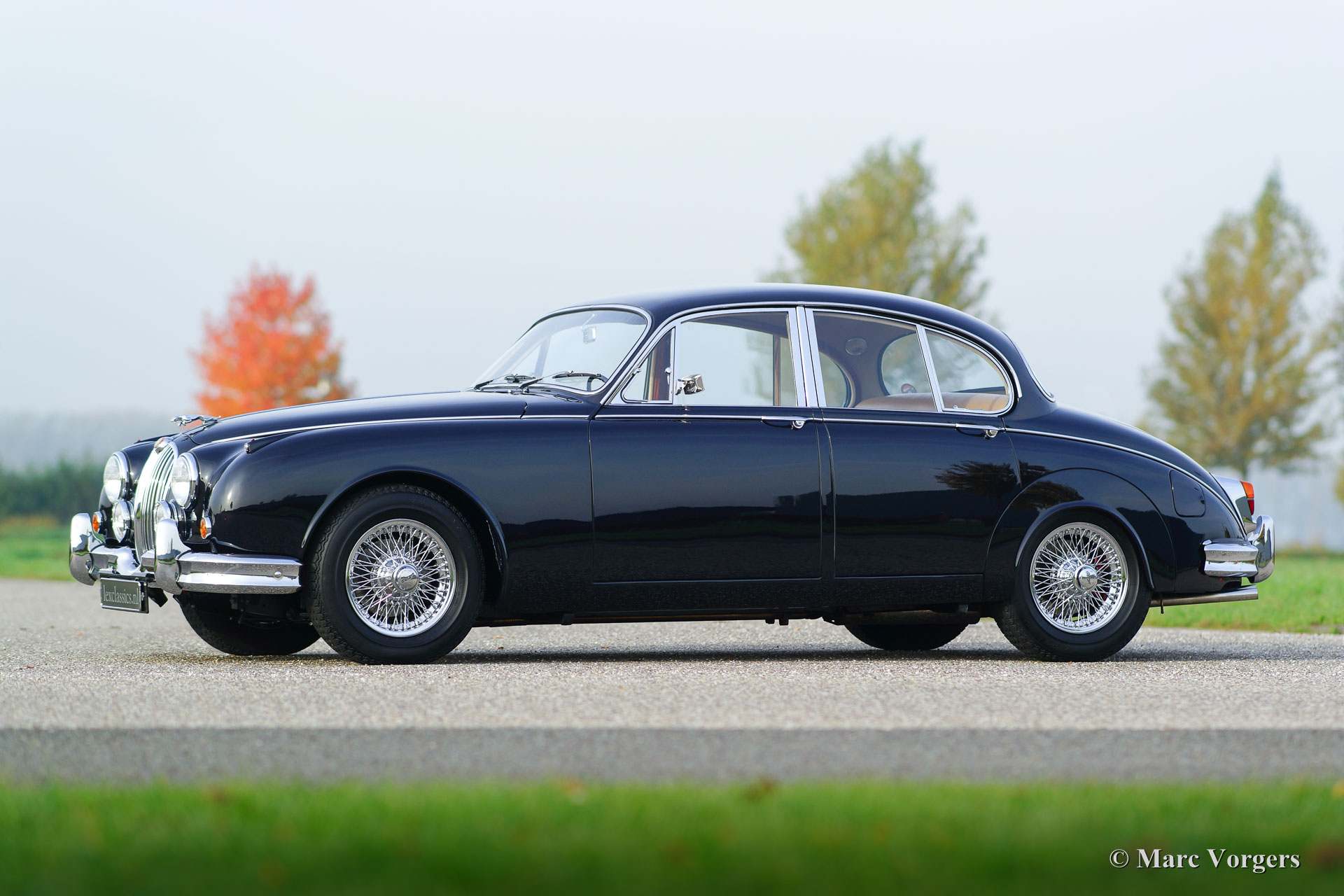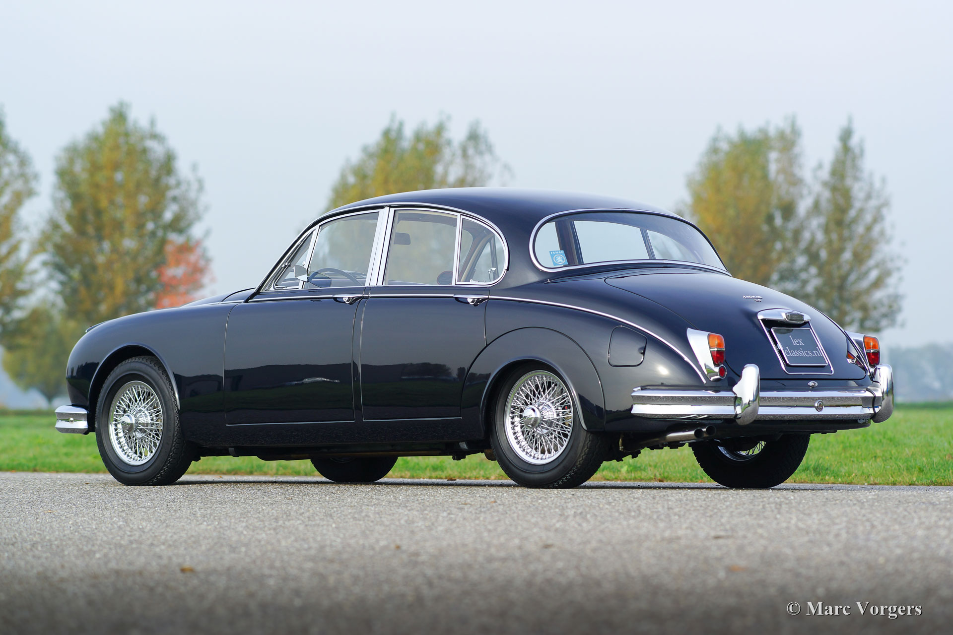 Jaguar Mk II 3.8 Litres, année 1962. Couleur bleu foncé avec un intérieur en cuir beige et tapis beige. Ce magnifique Jaguar Mk II a été restauré détaillée et parfaitement aux Pays-Bas. L'automobile est en superbe état TOP; Concours ! La carrosserie montre des lignes nettes, ajustement parfait du panneau, la peinture comme verre et les détails chromé parfait. Une documentation de restauration et un reportage photo de la restauration sont présents. Ce Jaguar Mk II est un modèle recherché de « top-of-the-line » équipé du plus grand moteur de 3,8 litres, boîte de vitesses manuelle et overdrive ! La voiture est un pur plaisir à conduire ! En outre, la voiture est équipée de roues chromées à rayons, de phares antibrouillards à l'avant, de direction assistée, d'un ventilateur électrique Kenlow, deux rétroviseurs, une radio d'époque et une antenne. C'est un spécimen haut de gamme TOP!