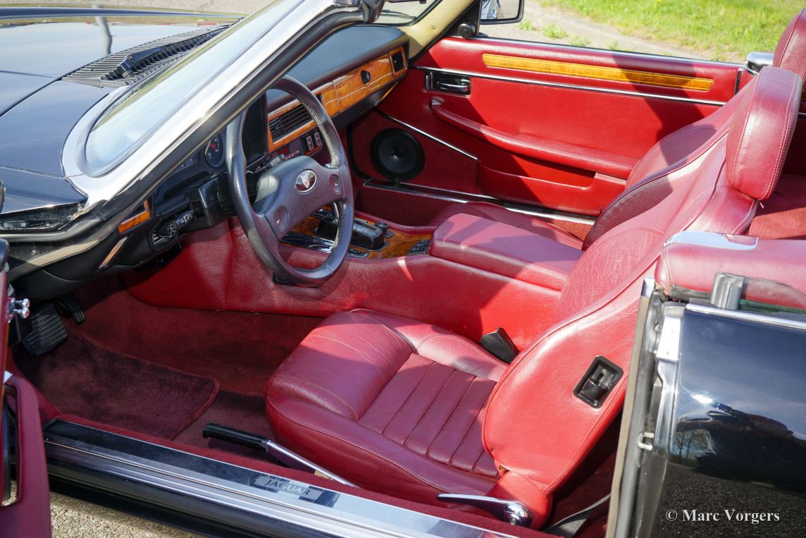 Jaguar XJS-C V12, année 1989. Couleur extérieure noire combinée à un intérieur rouge foncé et moquette assortie. Capuche et couvercle de la hotte noire. Cette impressionnante Jaguar XJS-C (convertible) est dans un état d'origine magnifique. La voiture ne présente que de légères traces d'utilisation antérieure. L'automobile a été importée des États-Unis aux Pays-Bas en 2021, depuis l'origine, cette belle Jaguar n'a parcouru que 66 500 milles. Ce croiseur de luxe est équipé du légendaire moteur Jaguar V12, d'une boîte de vitesses automatique, de sièges réglables électriquement et d'un capot à commande électrique. La voiture est équipée des jantes en alliage d'origine Jaguar "Lattice", et elle est livrée avec l'ensemble d'outils d'origine et les manuels d'instructions, d'entretien et de radio d'origine dans un magnifique dossier Jaguar. Un très bel exemple pour les passionnés de Jaguar XJS !