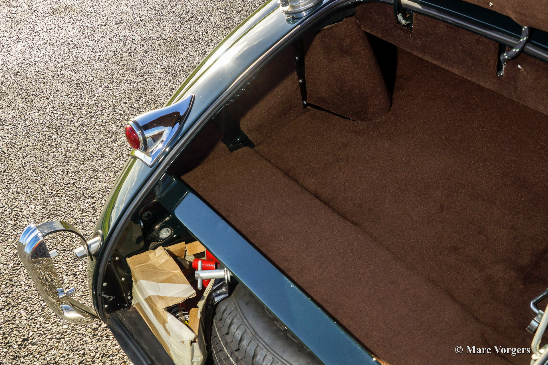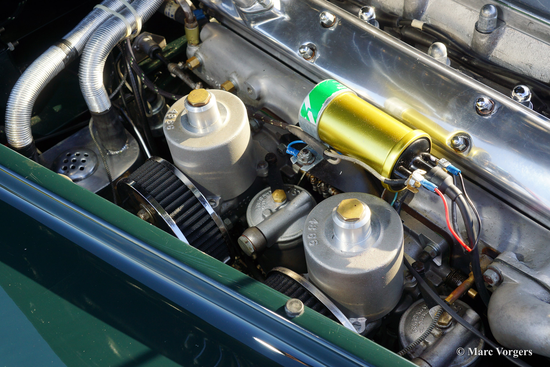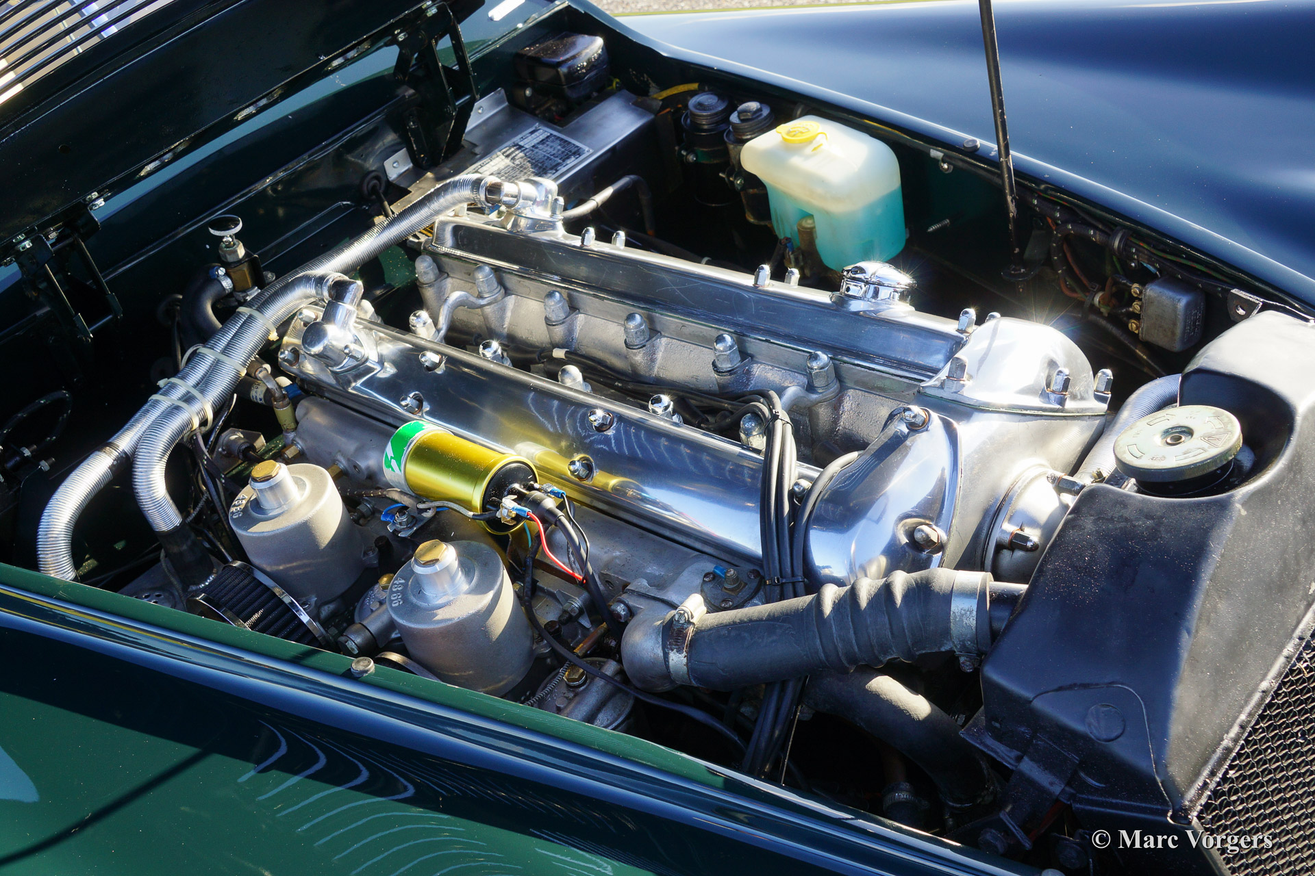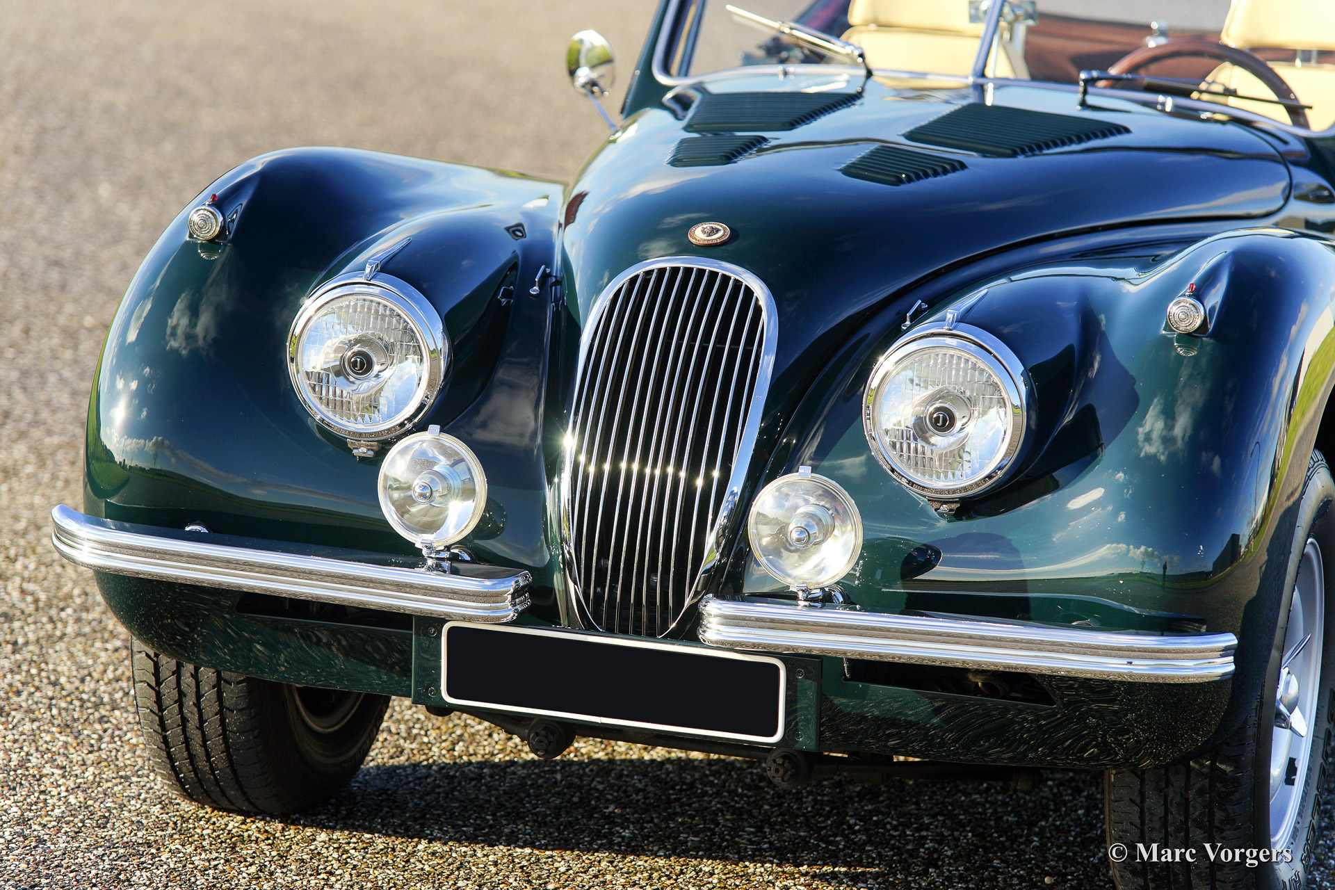 Jaguar XK 120 Drophead Coupe (DHC), year 1954. Chassis number: 678302, engine number: NAI242-8 and 7365-8. Colour British Racing Green with a beige leather interior trimmed with brown piping. Brown carpet. Black mohair soft top. This car was originally sold new in the Netherlands, the old linen registration 'paper' is still present. This fabulous Jaguar XK 120 was extensively restored in the year 2004. The automobile is in superb (excellent+) condition! Additionally some modifications were carried out to improve safety and reliability. Improvements: 'S' cylinderhead, 'fast road' camshafts, more precise XK 150 steering, Getrag 5-speed manual gearbox, special rollbars, special leather seats, 4-point safety harnesses, GTI rally twin, a louvered bonnet for improved cooling, 123 electronic ignition, 2 inch 'sand-cast' carburettors, Dunlop alloy wheels, additional driving lamps at front and a special steering wheel. This masculine XK 120 drives fantastic!