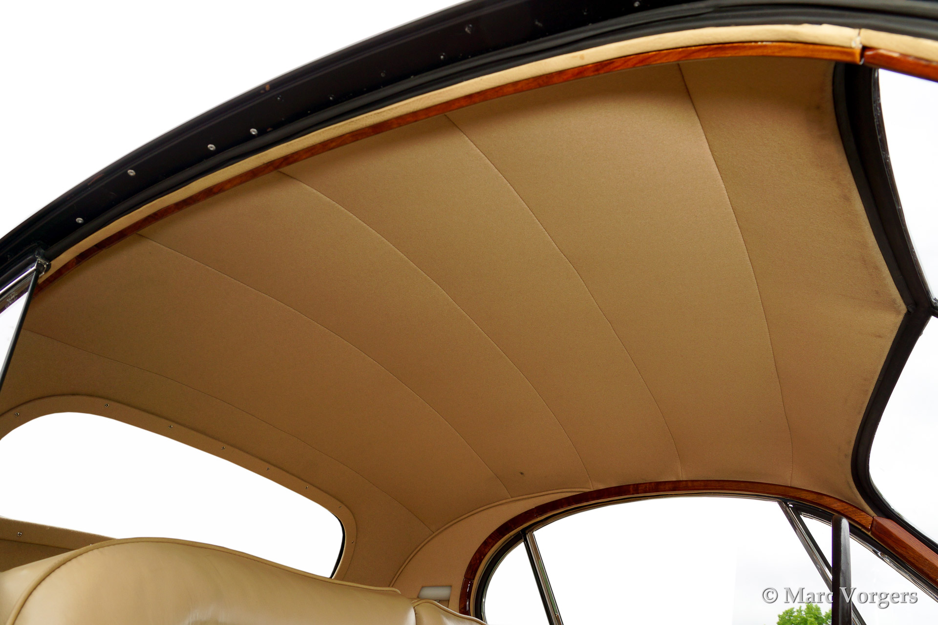 The Jaguar XK 120 was introduced in 1948, and caused an immediate sensation. The XK 120 had a top speed of 120 miles an hour (about. 200 km/h) and was the fastest production car for sale at that time. The XK 120 was designed by Jaguar’s boss and founder William Lyons. The bodywork had an almost sculptural design, with sober, well-chosen flowing lines and beautiful curves. With its exquisite long bonnet and elongated wing lines, the XK 120 has a very dynamic charisma.