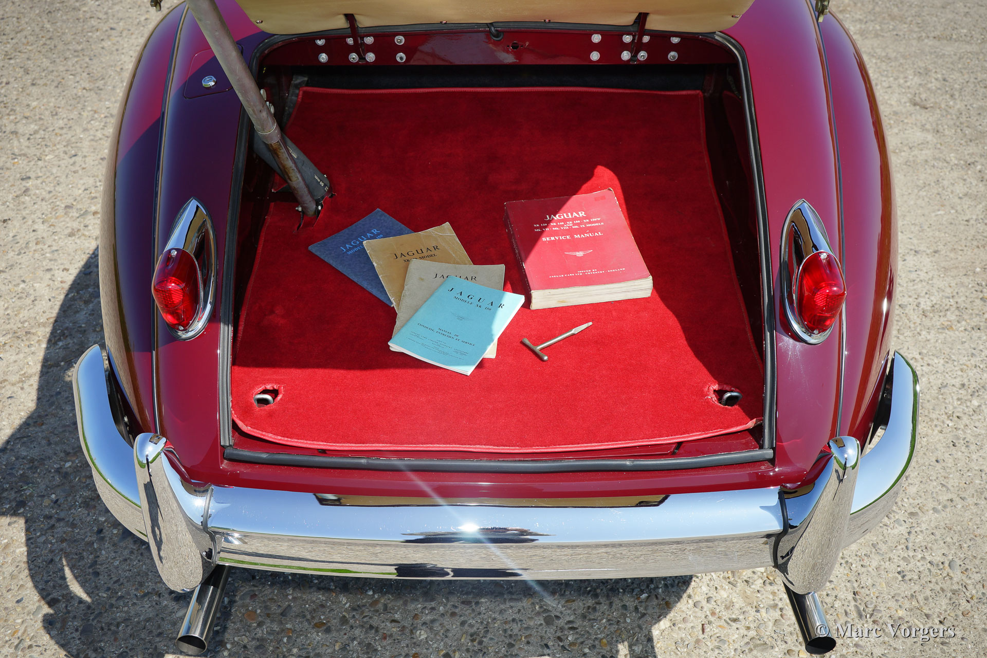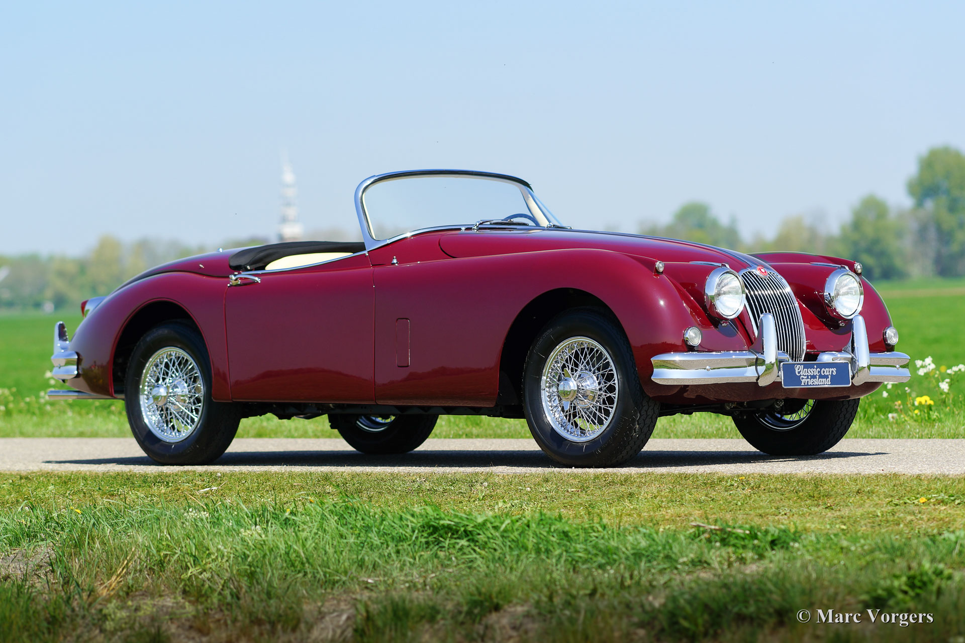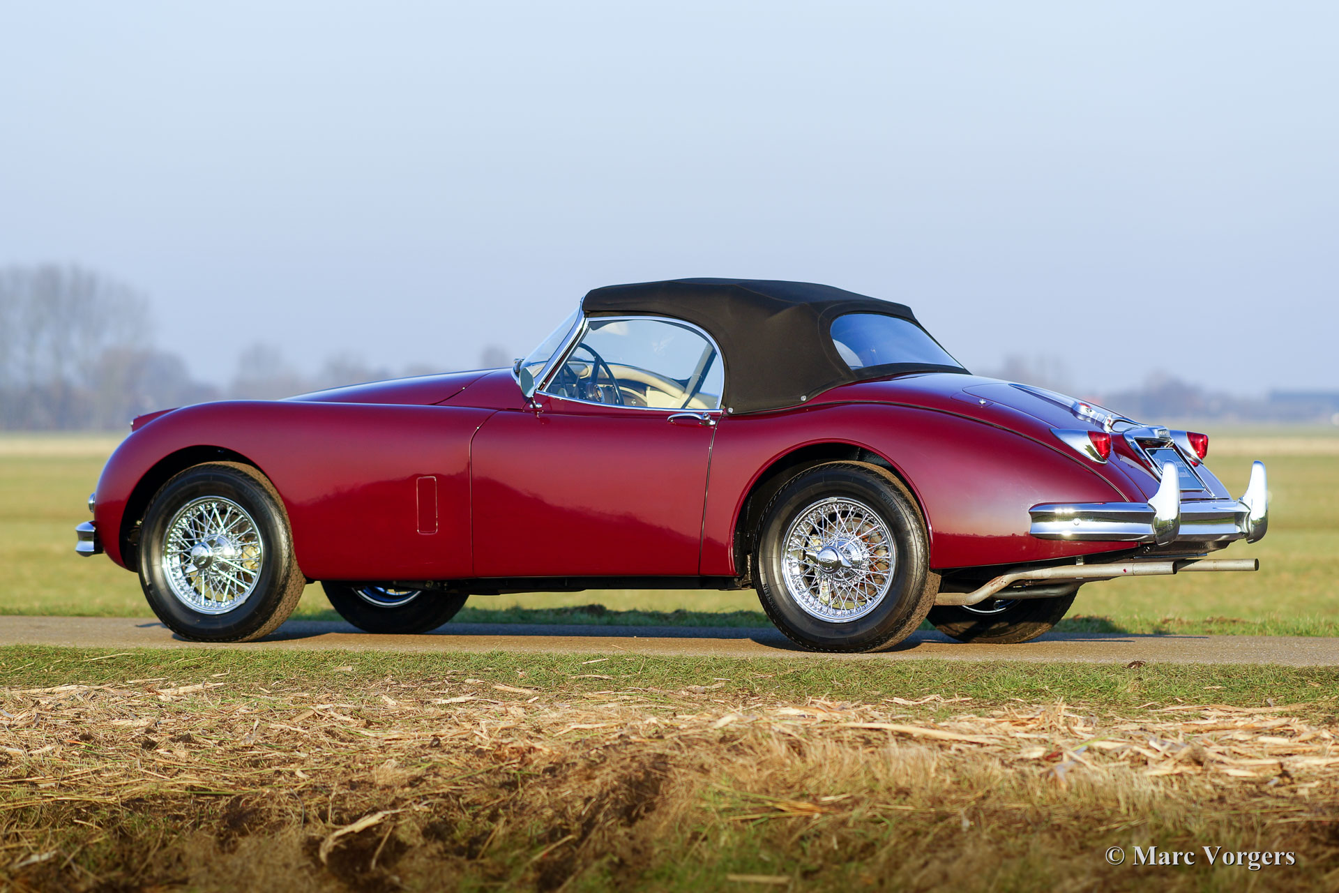 Jaguar XK 150 3.4 litre OTS, année 1958. Couleur rouge foncé (Maroon red) avec un intérieur en cuir beige clair (Magnolia) et tapis beige clair pour correspondre. Capot mohair noir. Ce magnifique Jaguar XK 150 Open Two Seater (OTS), également appelé roadster, a été restauré détaillée dans le passé. Bien sûr, le moteur et la boîte de vitesses ont été révisés. Depuis la fin de la restauration de la voiture a parcouru seulement 2200 miles. La voiture est en superbe état TOP : Concours ! Le dernier propriétaire a chéri cette beauté depuis 26 ans. Ce beau Jaguar a des « matching numbers ». L'automobile comporte overdrive, des roues en fil de chrome, des pneus Vredestein Sprint Classic et un échappement en acier inoxydable. Ce Jaguar XK 150 OTS conduit parfaitement, un exemple TOP !