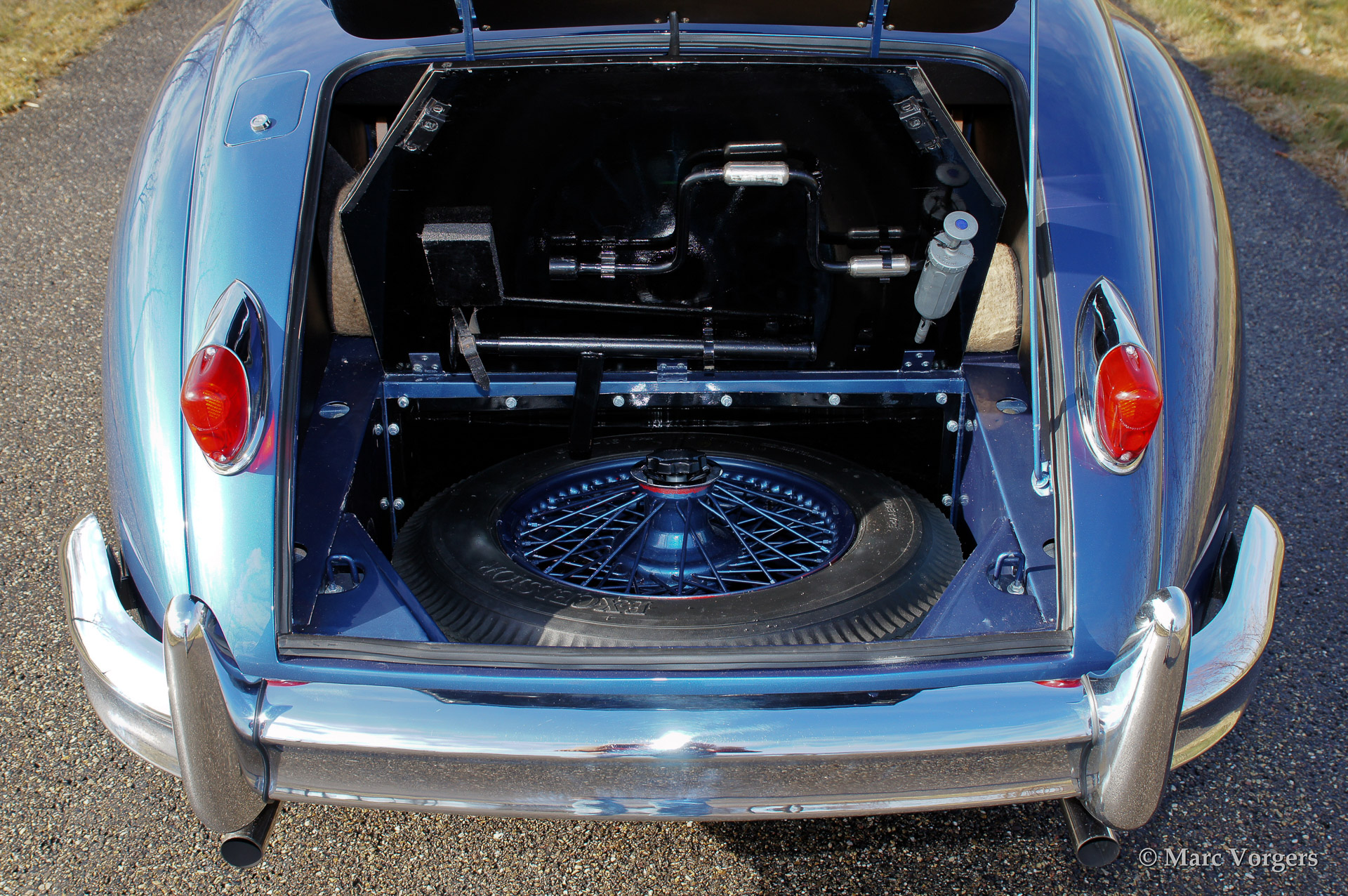 The XK 150 replaced the Jaguar XK 140 in 1957. The undercarriage of the XK 150 was for the greater part equal to the XK 140’s, but its bodywork was new and broader. Though its design was again very refined, it was somewhat less dynamic as compared with the XK 120 and XK 140. The bodywork was less sleek and the design of the characteristic wing lines was now less markedly sloping. The increased width of the bodywork resulted in a wider grille which, in line with the best Jaguar’s tradition, was delicately integrated in its design. The XK 150 was the first of XK series with an unbroken panoramic windscreen.