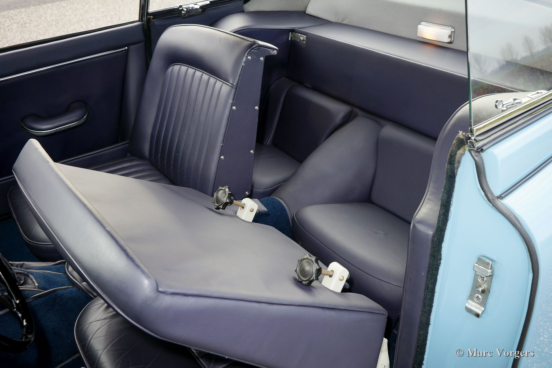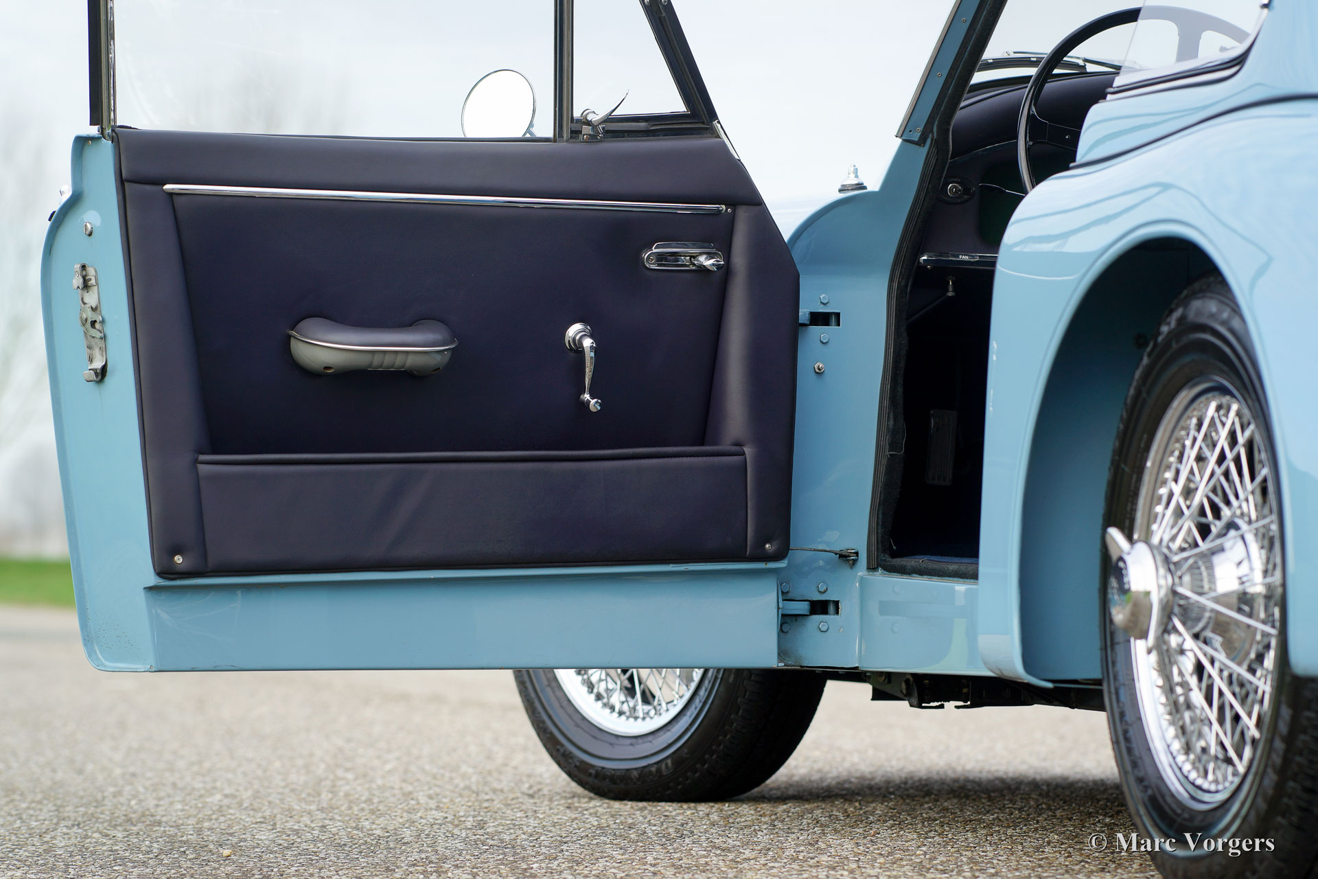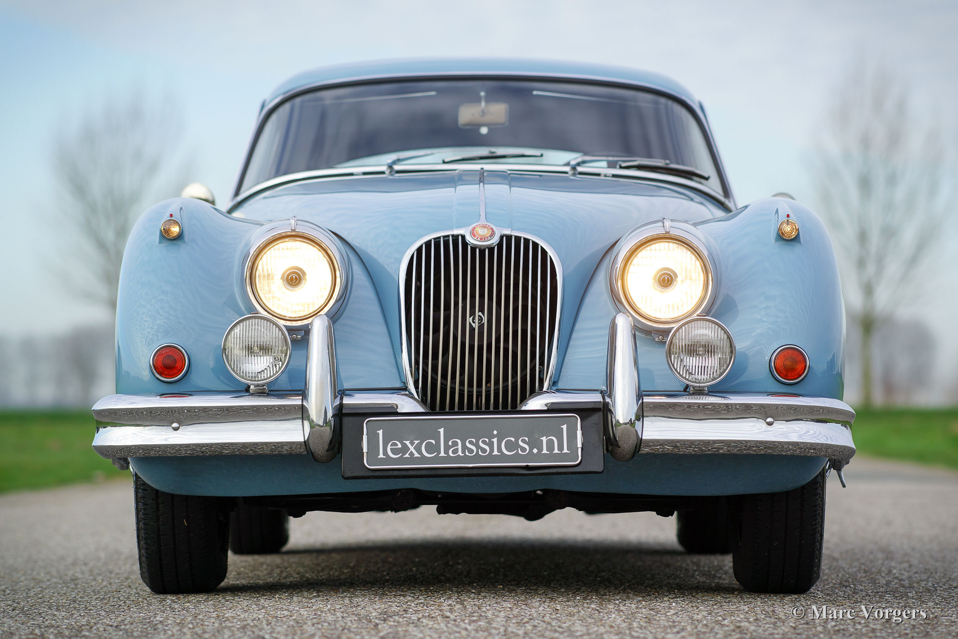 Jaguar XK 150 3,8 litres FHC, année 1960. Numéro châssis S836628XX, numéro moteur sur demande. Couleur bleu clair (Pastel Blue) avec un intérieur en cuir bleu foncé et tapis bleu foncé. Cette Jaguar fut vendue neuf en Hollande. Ce magnifique Jaguar XK 150 FHC est restauré détaillée et «body-off» par Lex Classics au cours des années 1999-2002. Un reportage photo complet de la restauration est présente. Cette très belle automobile est en superbe état TOP et la voiture roule parfait ! La voiture a parcouru 18.569 kilomètres depuis la fin de la restauration. Un certificat Heritage est présence. L'automobile dispose d'un toit coulissant original d'usine (une option rare et très Souhaitable !), Roues de fil chromé, écrous de roue chromée «knock-off», phares antibrouillard à l'avant et des phares Jaguar avec le logo « J » sur le verre. Ce Jaguar XK 150 Fixed Head Coupe (FHC) est un modèle haut-de-gamme équipée du plus puissant moteur de 3,8 litres, boîte de vitesses à commande manuelle, overdrive et des freins à disque tout autour. Une voiture de sport classique très souhaitable !
