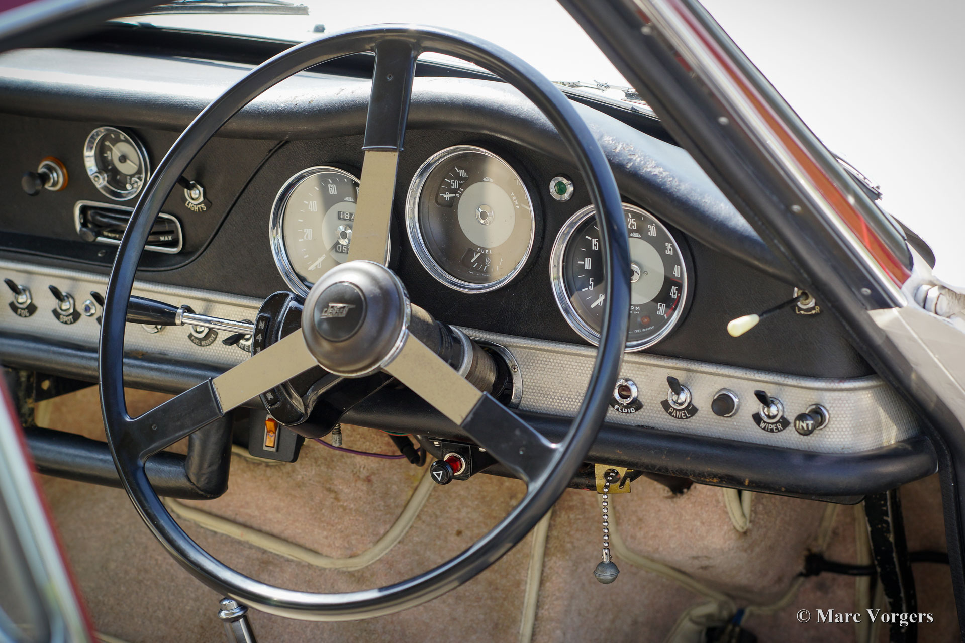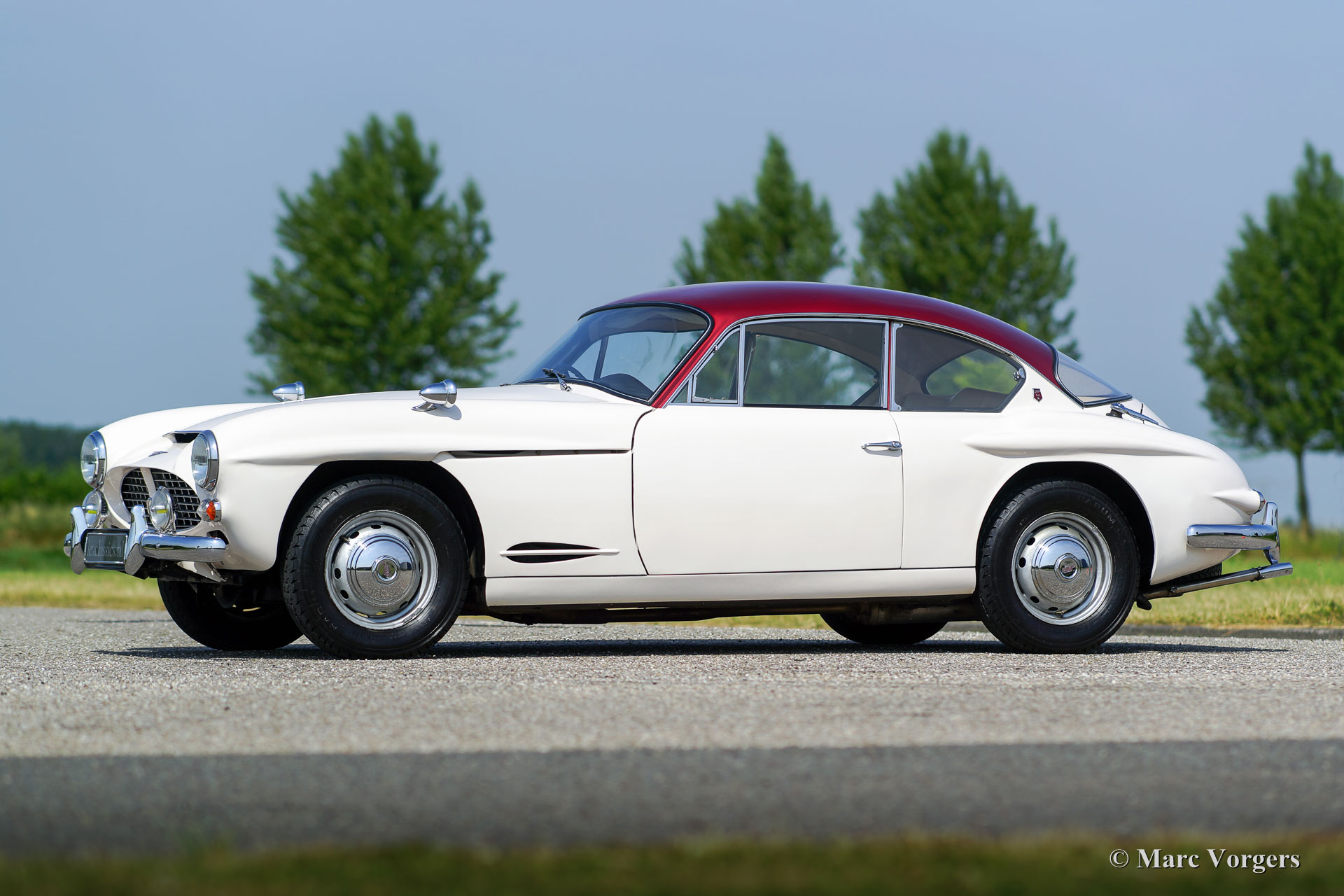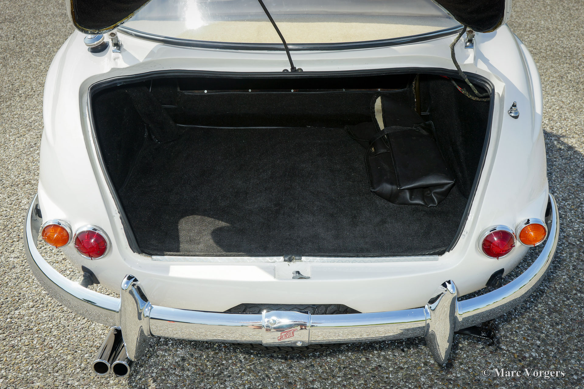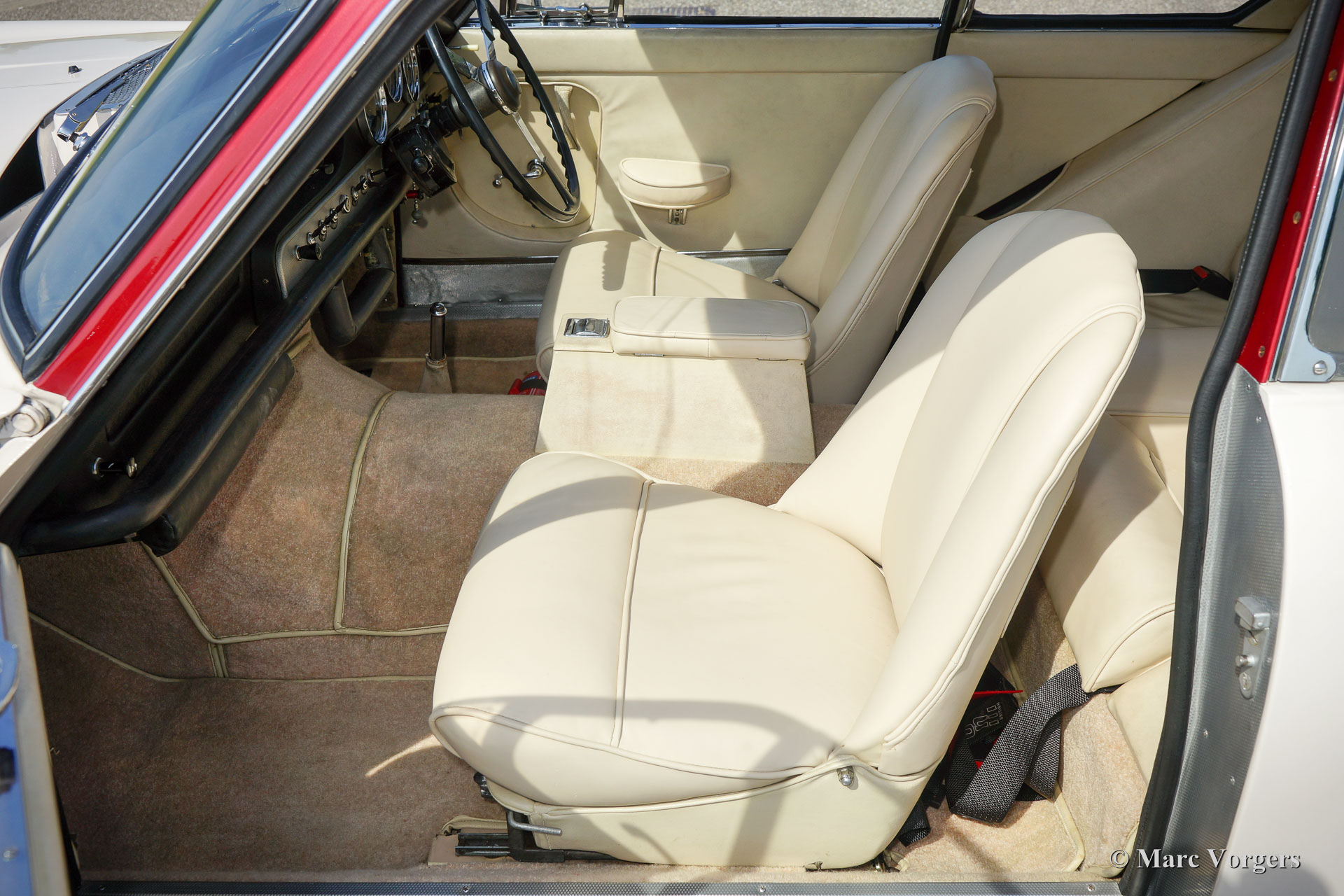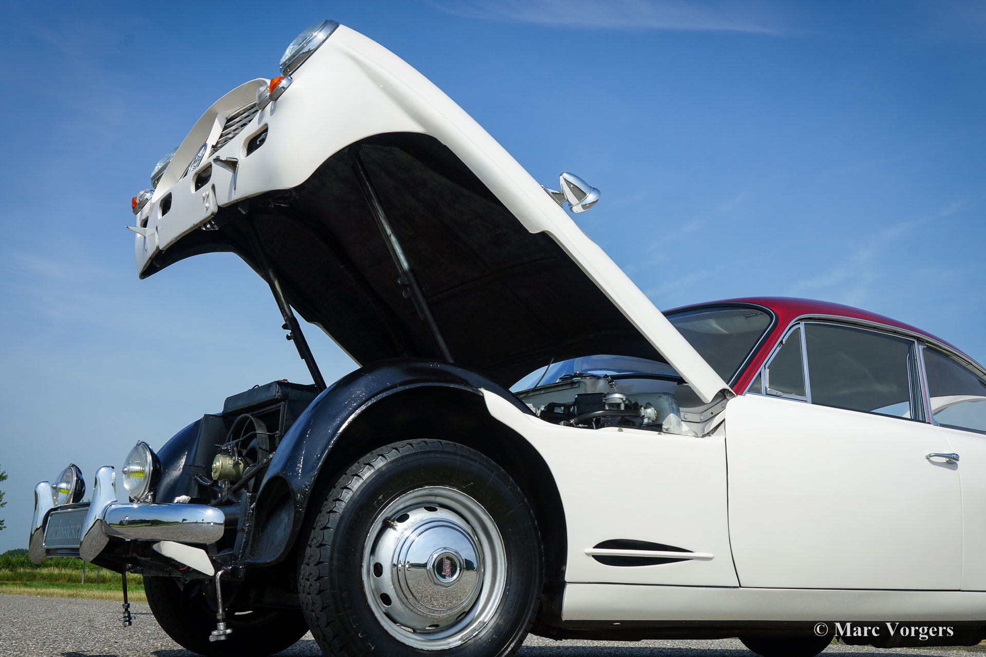 Jensen 541 S, année 1961. Couleur blanc avec le toit en rouge métallique. Tapisserie en cuir beige clair (Magnolia) et tapis beige. Ce magnifique et rare Jensen 541 S fut restauré dans la Grande-Bretagne par le passé. Les factures concernant la restauration sont présentes. L'automobile est en très bonne et belle condition et la voiture montre tous les détails originaux. Le Jensen 541 S dispose d'un grand moteur en ligne à six cylindres Austin 3993 cc avec un son moteur exceptionnel. La puissance est transmise aux roues arrière via une boîte de vitesses automatique à 4 rapports Hydramatic Rolls-Royce. Le Jensen 541 S est une voiture très rare, seulement 127 voitures furent construites dont 20 ont équipées d'une boîte de vitesses manuelle et 107 voitures ont présenté Rolls Royce Hydramatic. Le Jensen 541 S dispose d'un châssis en acier avec une carrosserie en plastique renforcé de fibres de verre (GRP), ce qui, dans la tradition de nombreux fabricants de voitures de sport britanniques d'après-guerre. Avec un Jensen 541 S, vous ne conduisez pas d’incognito ; Un véritable tourneur de tête et une pièce spéciale de l'histoire de la voiture britannique !