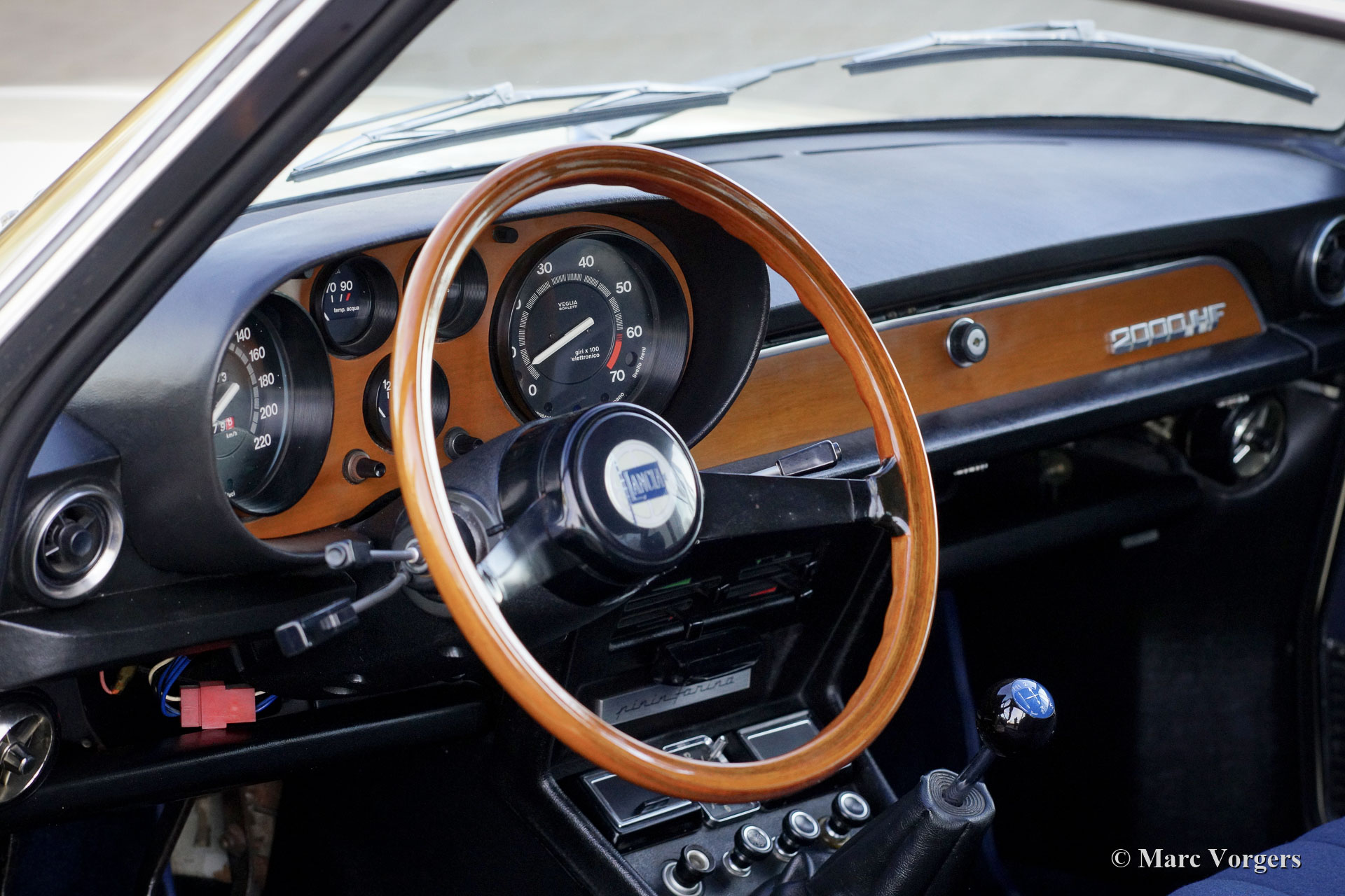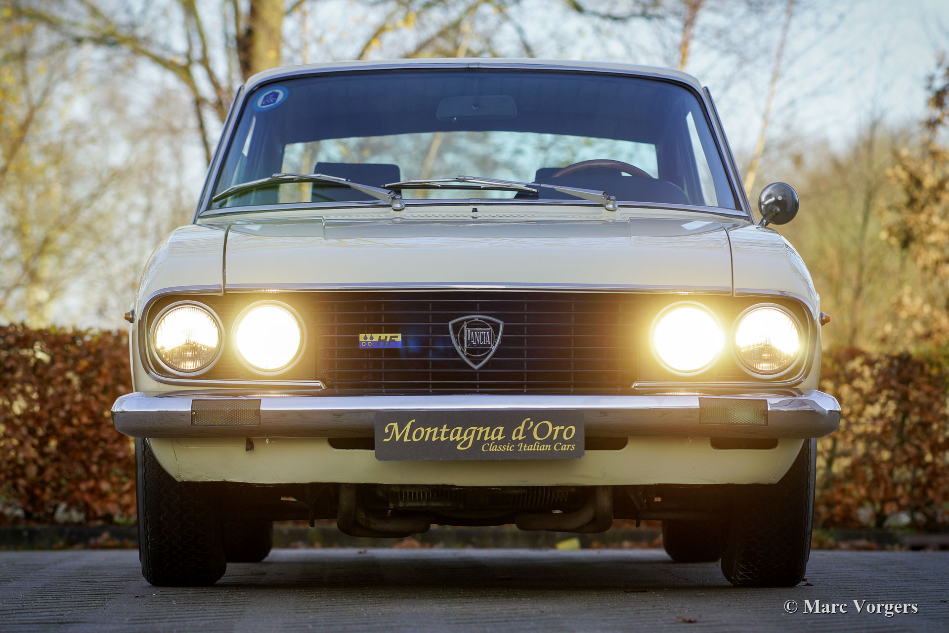 Lancia 2000 HF Coupé, année 1973. Couleur blanc crème combinée à un intérieur en tissu bleu. Cette magnifique Lancia 2000 HF Coupé a été vendue neuve en Italie. Le premier propriétaire était M. Luciano Cassulo qui vivait à Turin. La voiture fut livrée par Concessionaria S.P.A. SVAT à Turin. Nous avons récemment importé cette beauté d'Italie, la voiture a toujours une immatriculation italienne. Le compteur kilométrique affiche 00074 km. L'automobile est en très bon à excellent état ; ce 2000 HF montre tous les détails d'origine. La Lancia 2000 HF Coupé est une voiture rare, seulement 1229 exemplaires furent construits. Le Coupé 2000 est un Flavia Coupé considérablement redessiné. La voiture a été conçue et restylée par PininFarina. Le 2000 HF Coupé est le modèle haut de gamme dotée de l'injection essence Bosch et à partir de 1971 d'une boîte de vitesses à cinq rapports. Le moteur boxer à quatre cylindres de 125 ch est une unité merveilleuse, et le son du moteur est très spécial. Cette voiture rare et spéciale est livrée avec la couverture d'origine du concessionnaire contenant le manuel d'instructions, le livret de "naissance" d'origine et un certificat ASI.