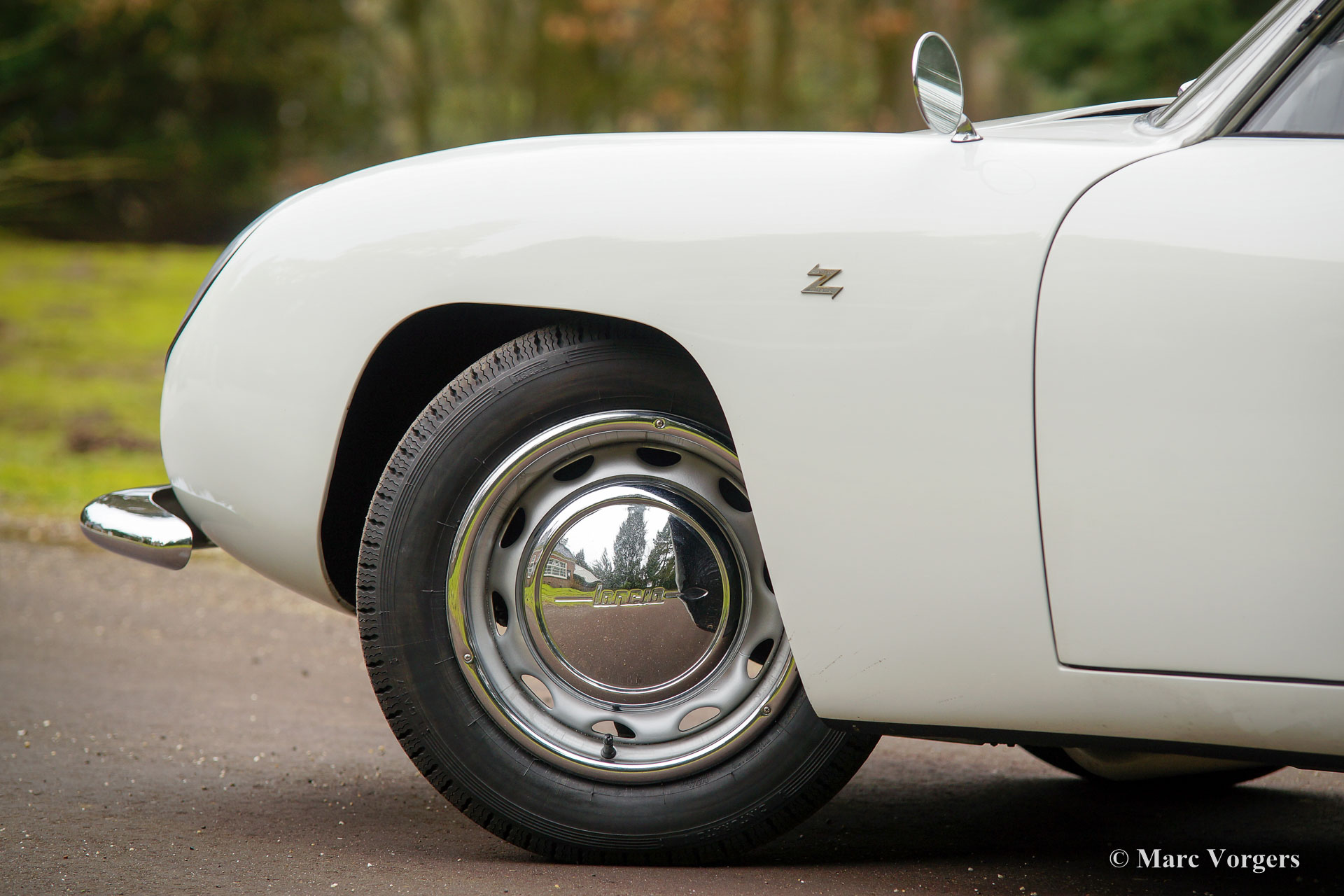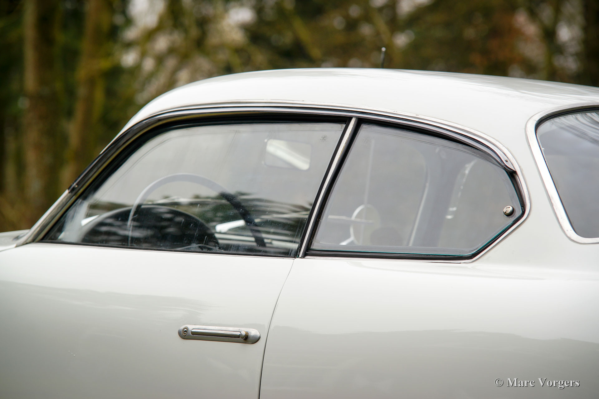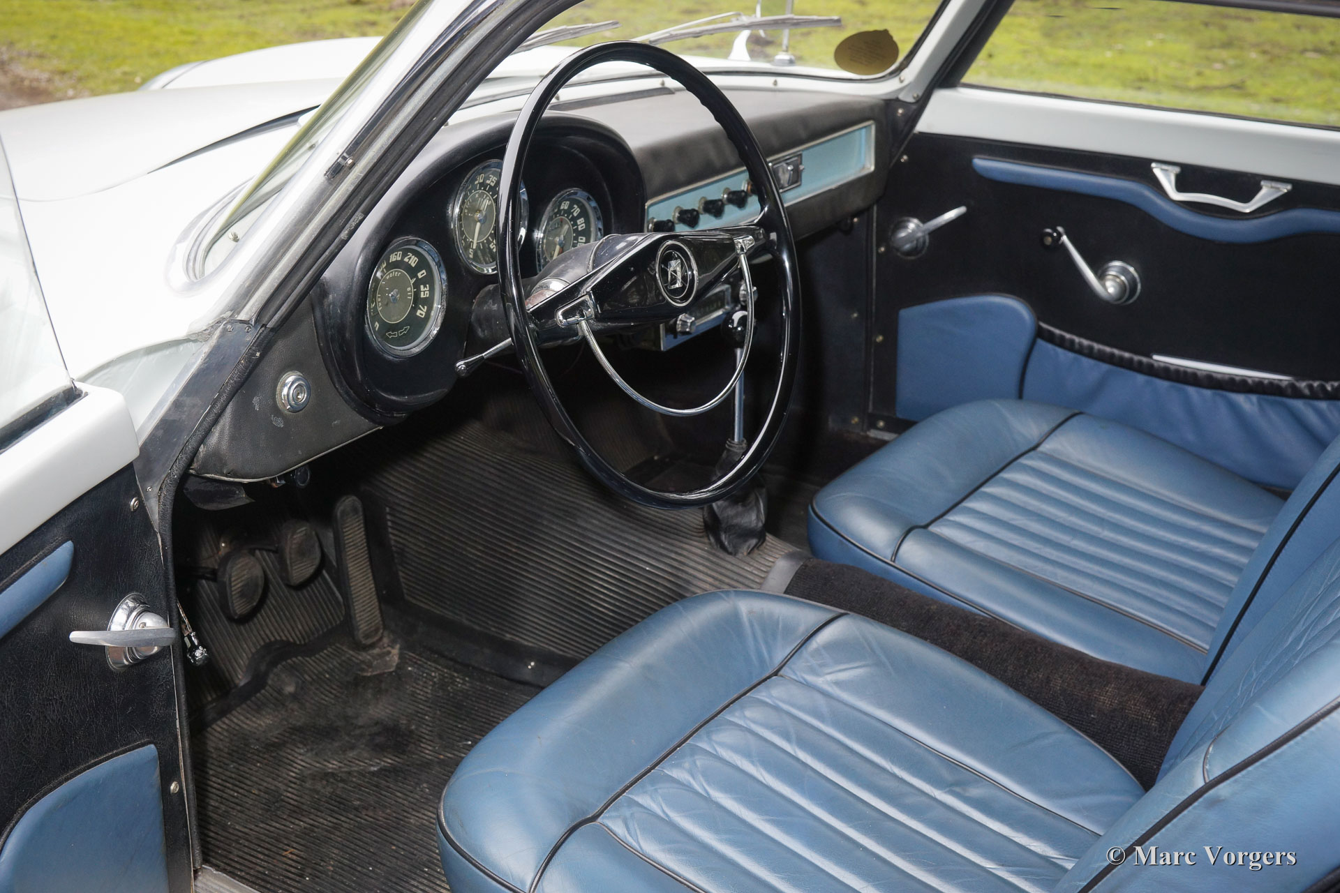 Lancia Appia GTE Zagato, année 1959. Couleur blanc avec un intérieur en cuir blue et tapis noir de caoutchouc. Ce magnifique et rare Lancia Appia GTE Zagato a été vendue neuve en France. En 1960, la Lancia a trouvé une nouvelle maison aux Etats-Unis où il avait qu'un seul propriétaire depuis plus de 45 ans ! En l'an 2005, l'automobile a été importé aux Pays-Bas. En 2007, la voiture a été élevé à jour par un spécialiste Fiat / Lancia et la voiture a été homologué pour la route. En l'an 2013, la Lancia a été largement dépouillé afin de donner une re-peinture. Le dessous et le plancher du coffre ont été dépouillés au métal nu. Le corps avéré être en parfait état ; pas de rouille, des bosses ou de remplissage ont été trouvés ! Le corps a été amorcé avec primaire époxy, puis peint dans la couleur d'origine. Dans le même temps, les pare-chocs, la calandre et les enjoliveurs ont été chromé neuf et quatre nouveaux pneus Pirelli Cinturato ont été équipés. L'odomètre lit actuellement 49.800 kilomètres. Ce fantastique Lancia Appia GTE Zagato est en excellent état et la voiture roule parfaitement. La voiture est livrée avec un fichier d'historique. La Lancia Appia GTE Zagato est un objet de collection rare ; seulement 241 exemples ont été construits par Zagato. Une voiture classique très souhaitable et un très bon investissement.