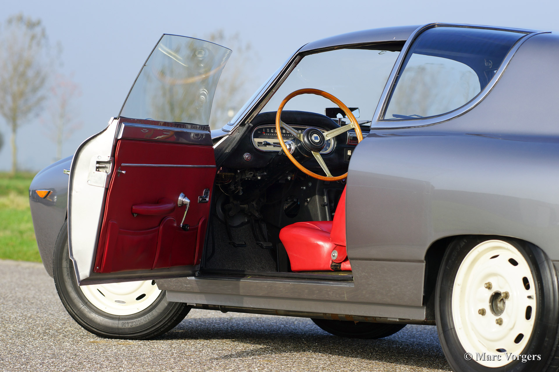 Lancia Flavia Sport Zagato, year 1963. Body colour Grigio Inglewood with a red leather interior and grey carpet. This fantastic Lancia Flavia Sport Zagato is in excellent condition. This is a very special and rare automobile. Only 625 Sport Zagato cars have been built. The body is hand built from aluminium by Zagato and mated with the advanced Lancia flavia 'platform' featuring independent suspension, disc brakes all round and a delightful four cylinder boxer engine.