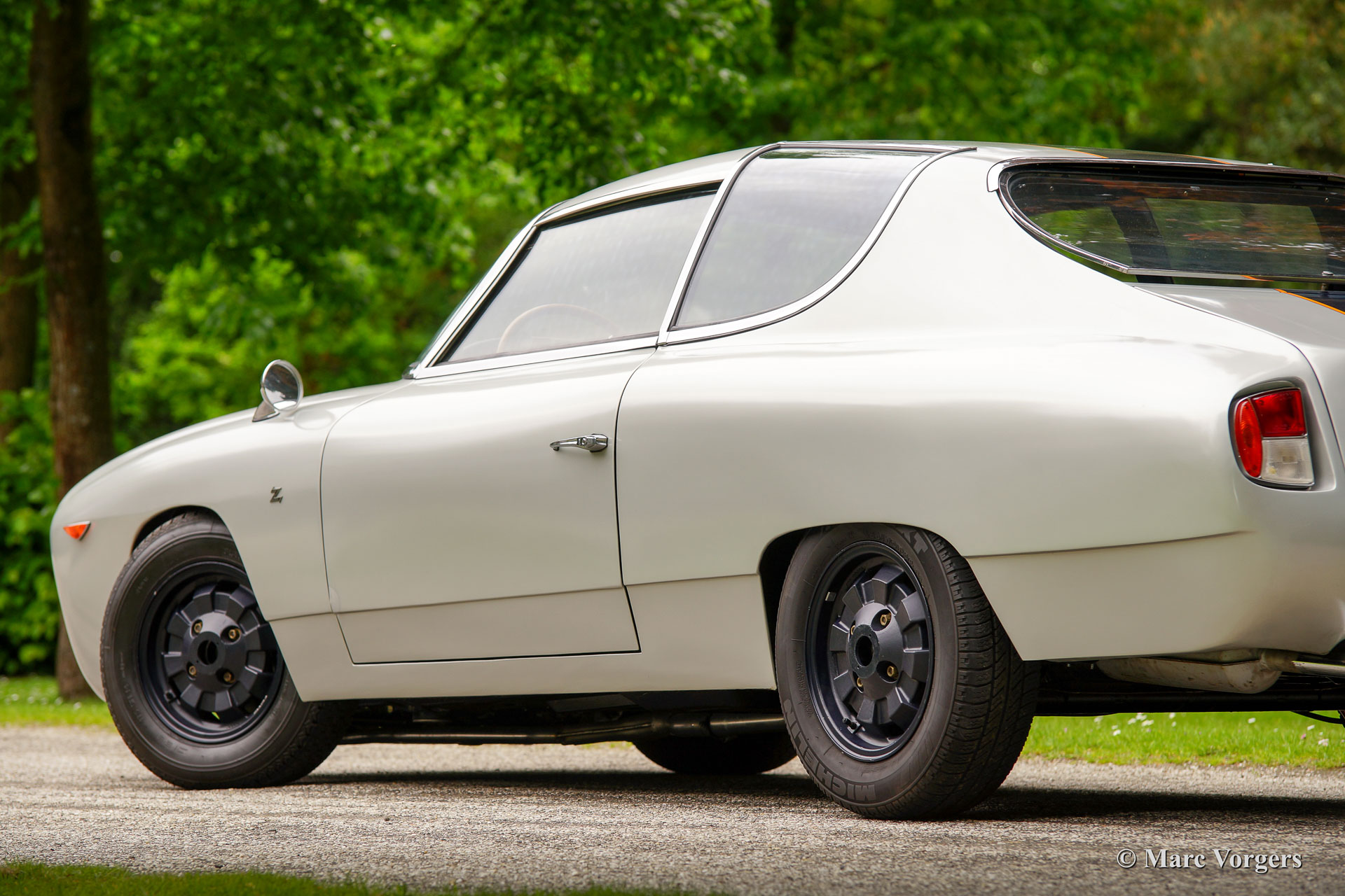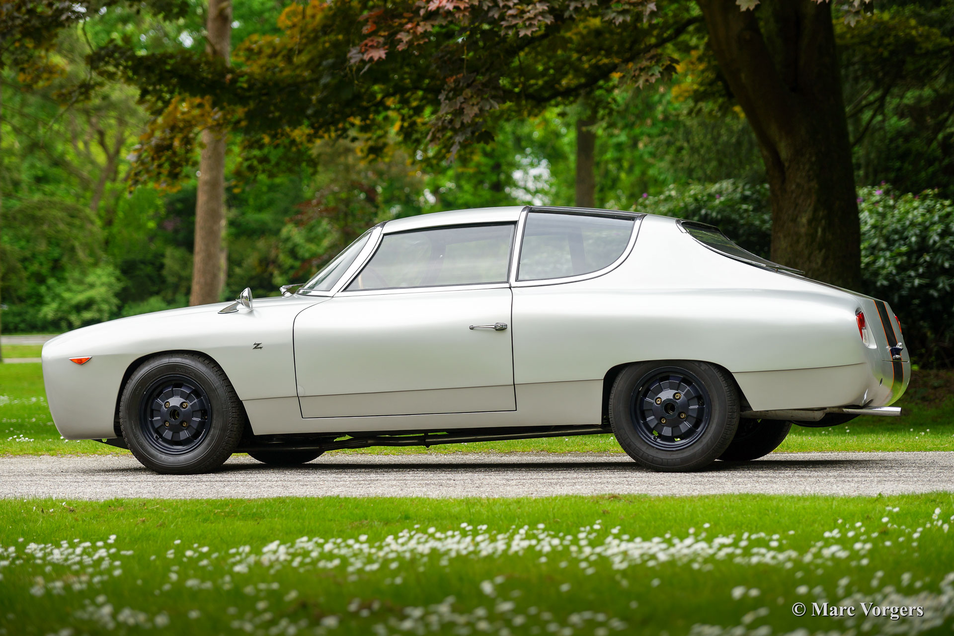 Lancia Flavia Sport Zagato, année 1966. Numéro de châssis: 815,532 * 001XXX. Couleur métallique mat d'argent avec un intérieur en cuir noir. Cette fabuleuse Lancia Flavia Zagato est en très bon état. La voiture roule fantastique et il est un véritable ‘head-turner’! La voiture a été restaurée il ya une quinzaine d'années. Le travail du corps a été donné beaucoup d'attention, beaucoup pièces en tôle ont été renouvelés, les portes ont été re-construit, de nouveaux seuils et renforcés A-postes ont été soudées et le plancher dans le coffre a été renouvelé. La tapisserie d'ameublement intérieure a été renouvelé, maintenant en cuir noir. L'intérieur original et non restaurée rouge est également livré avec la voiture. Aussi inclus: un ensemble de roues à disque en acier d'origine et non restaurée avant et pare-chocs arrière.