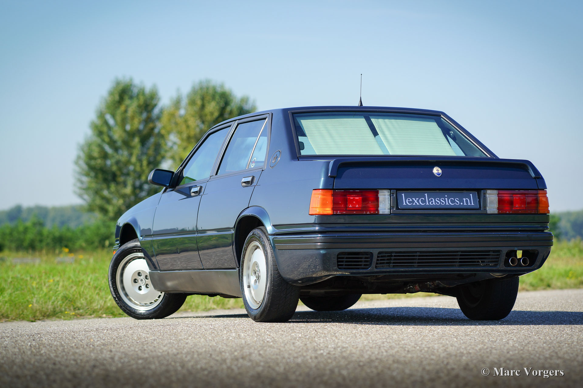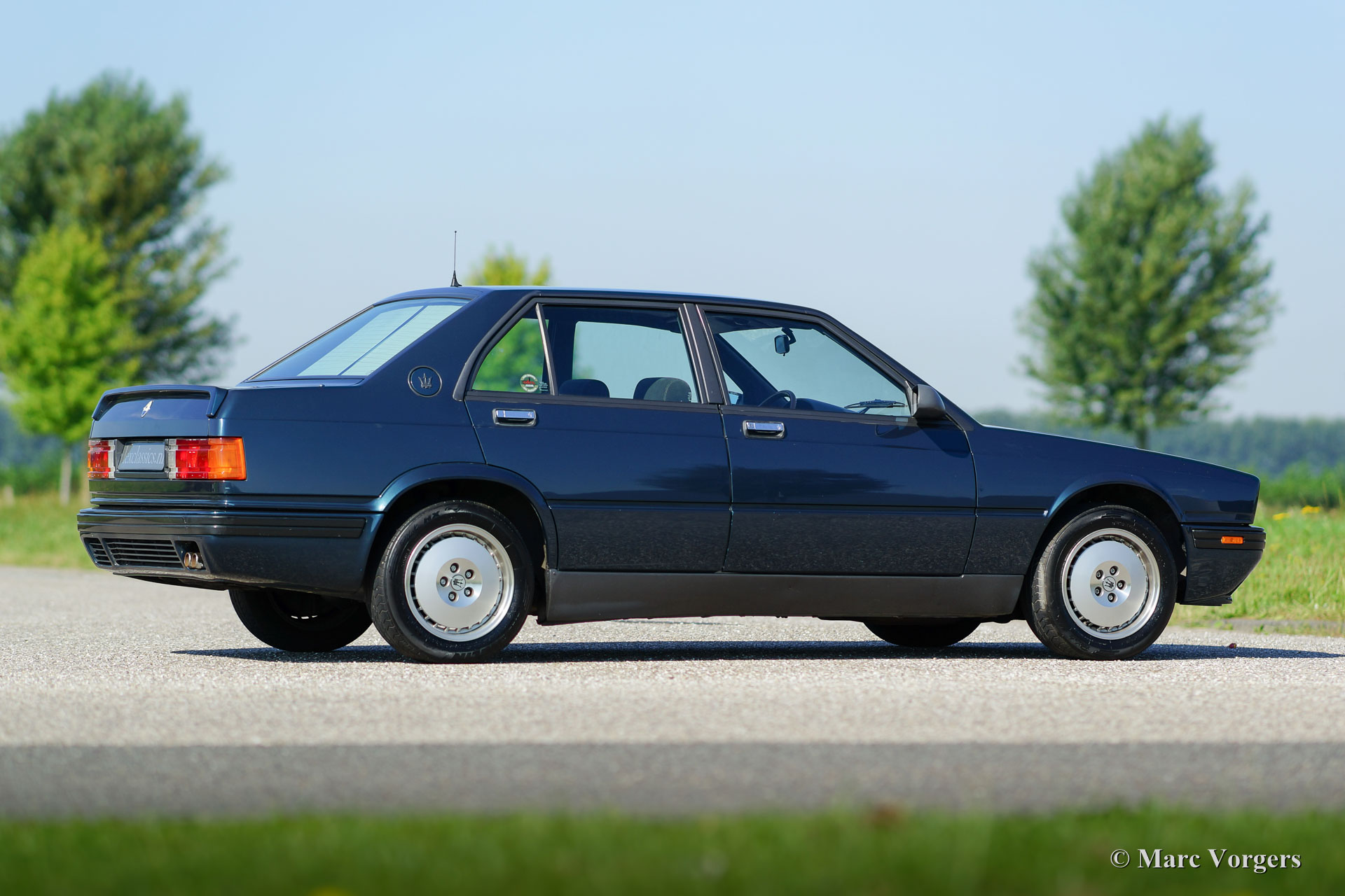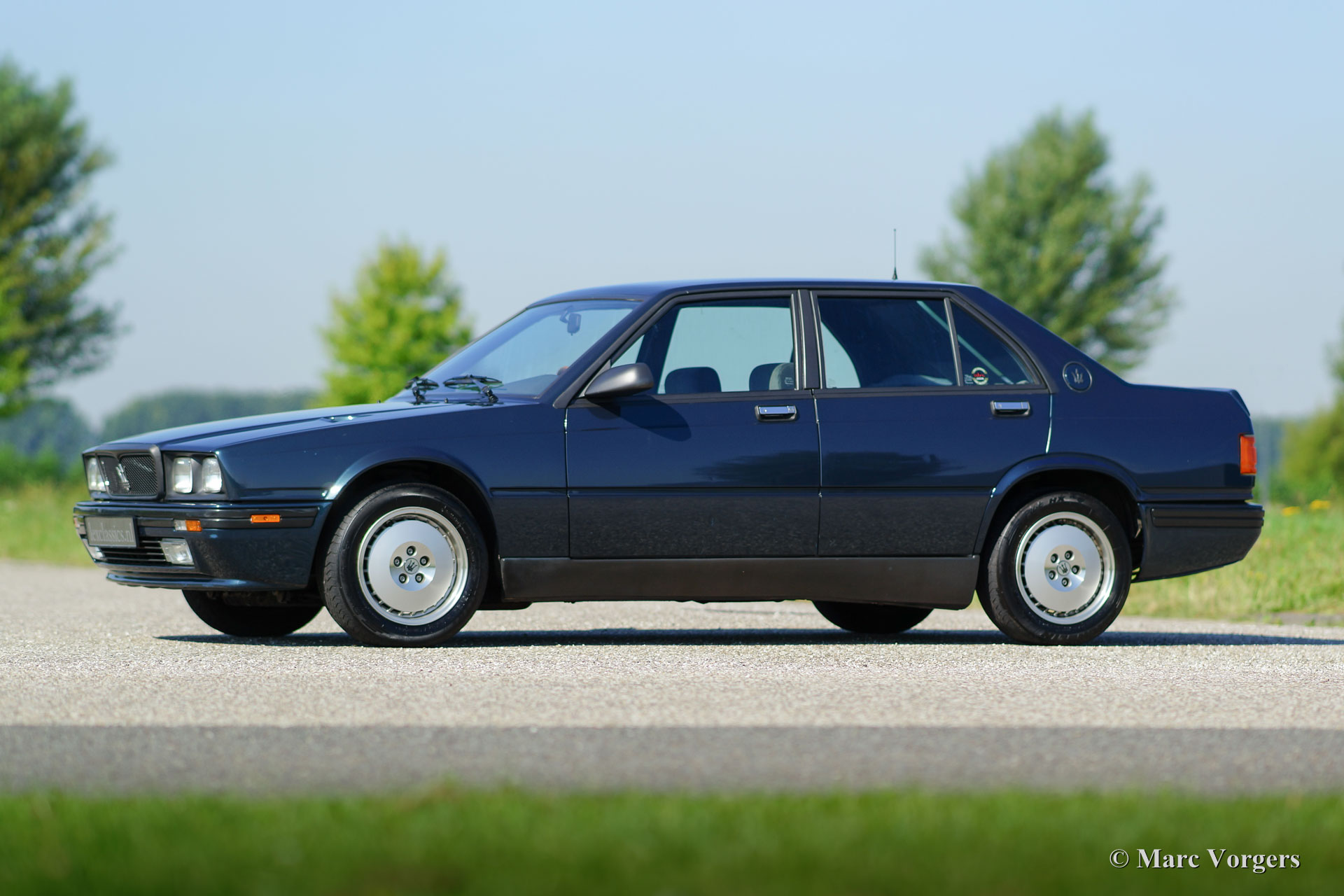 Maserati 422 Bi-Turbo, année 1991. Couleur bleu métallique avec un intérieur gris velours. Cette Maserati berline sport à quatre portes provient d'une collection de voiture néerlandaise. La voiture a été chéri pendant des années dans un garage de climat contrôlé ; la voiture a conduit seulement 94,492 km depuis qu'il a quitté l'usine Maserati. Cette Maserati est dans un très bon état d'origine; la peinture est en grande partie d'origine et l'intérieur d'origine est vierge! Les lecteurs de voiture, les sons et les poignées sont absolument parfaitement. Le Bi-Turbo est mécaniquement et optiquement un beau bijou ; un coup d'œil sous le capot est un ‘high-light’ pour tous les amateurs. Il sera difficile de trouver un deuxième exemple dans cet état super original !