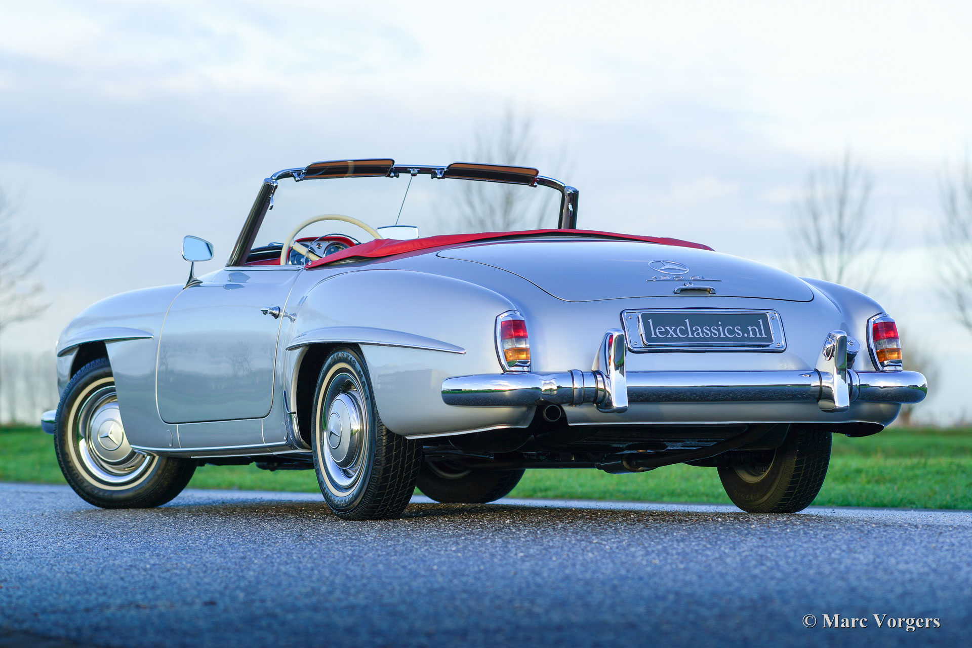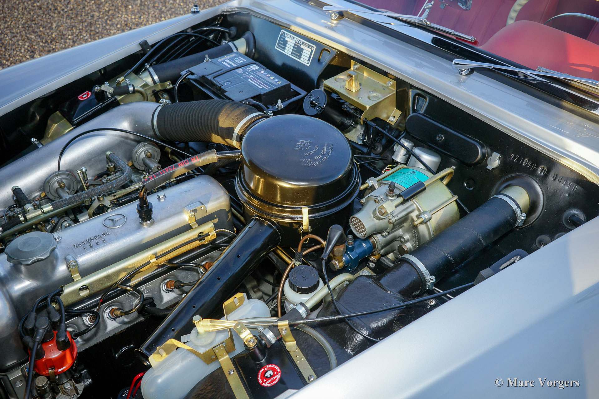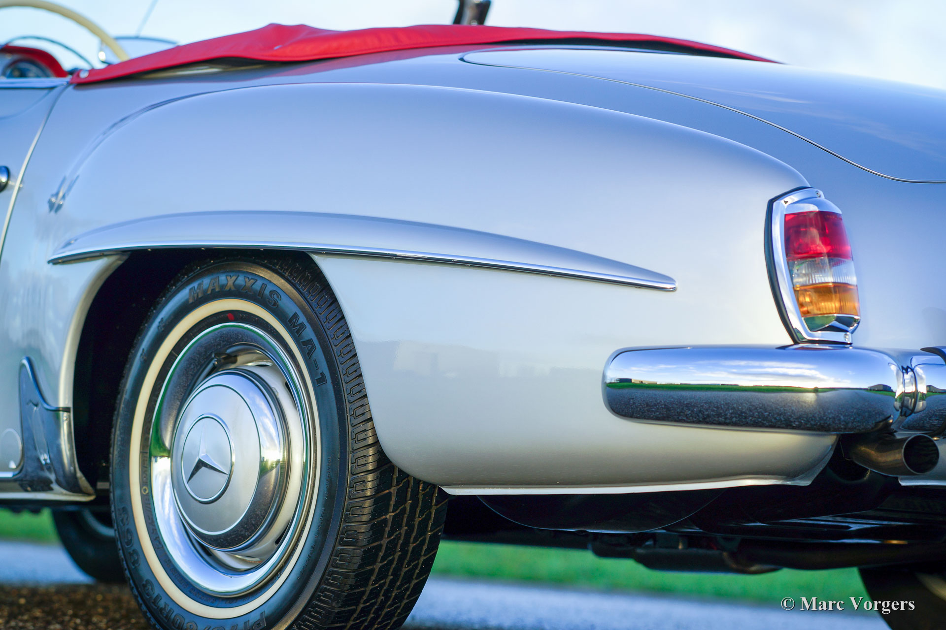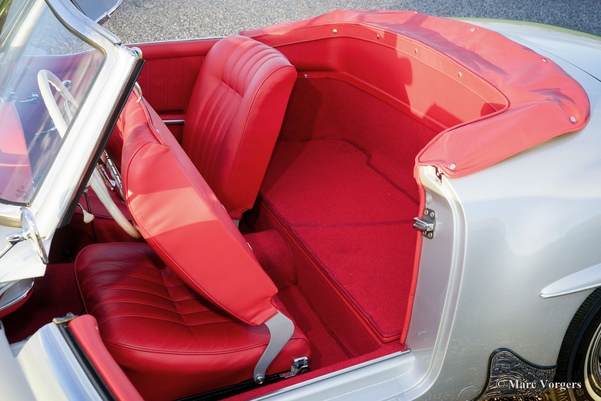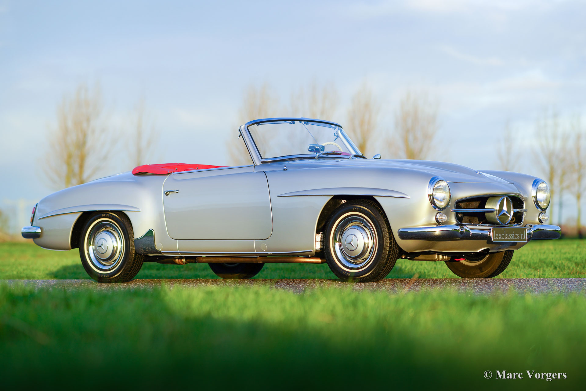 Mercedes-Benz 190 SL, année 1961. Couleur argent métallique avec un intérieur en cuir rouge. Cette belle Mercedes 190 SL a été restauré détaillé et parfaitement dans le passé. La carrosserie montre un ajustement du panneau parfait et tous les détails originaux sont présents. Cette 190 SL est en superbe état top! Un reportage photo de la restauration est présent. Une Mercedes-Benz ‘document de patrimoine’ est présent confirmant que cette voiture a ‘matching numbers’. Un spécimen TOP!