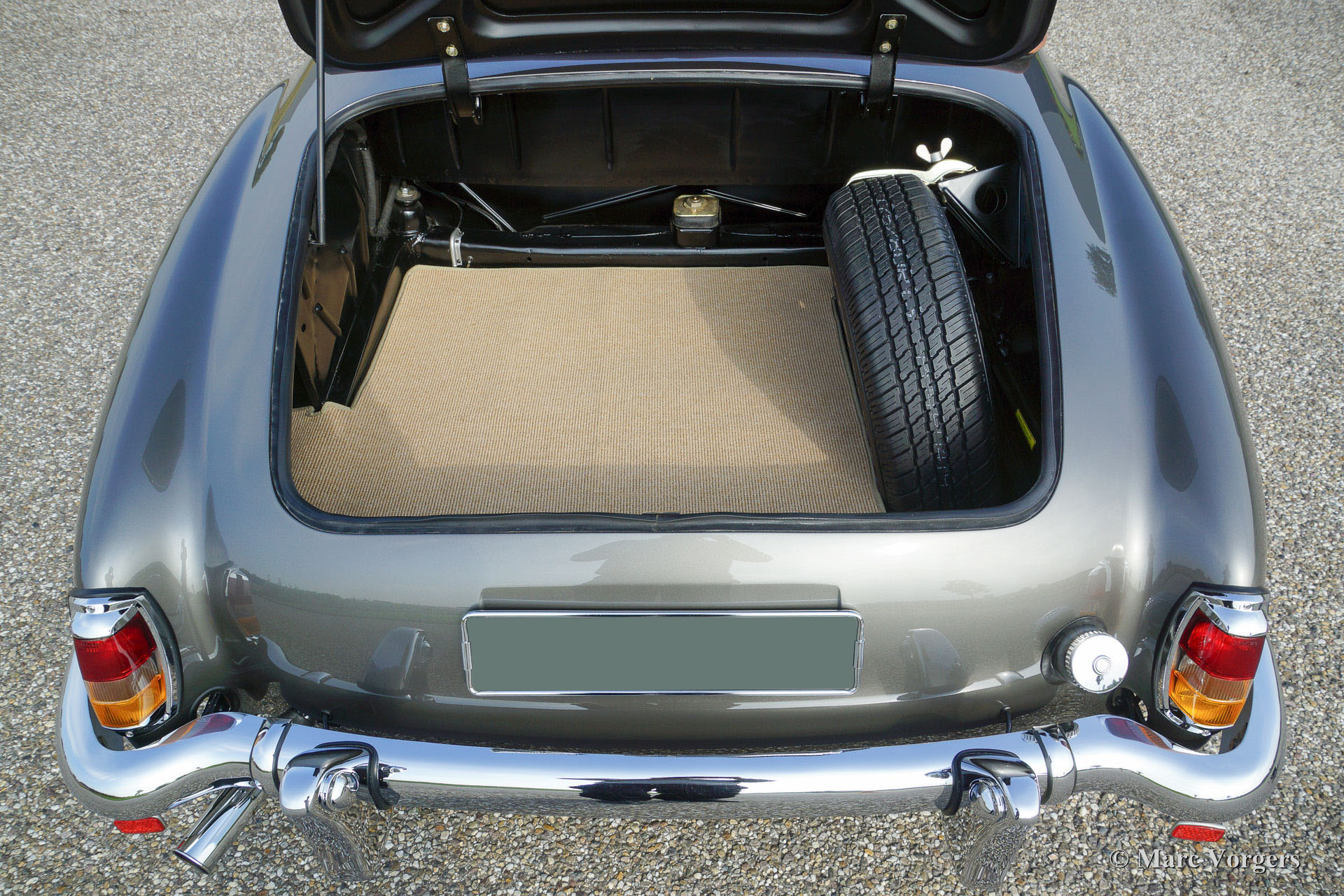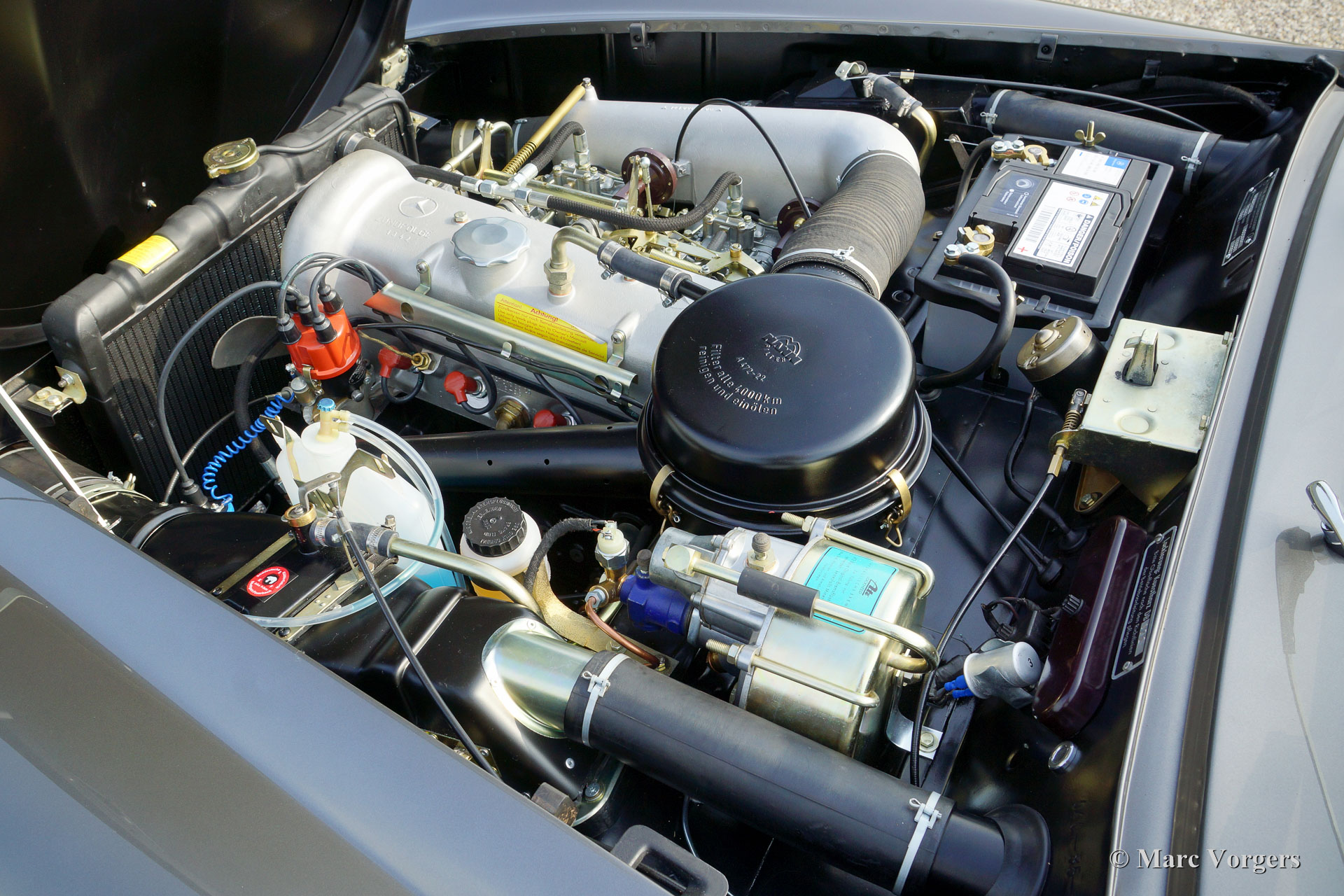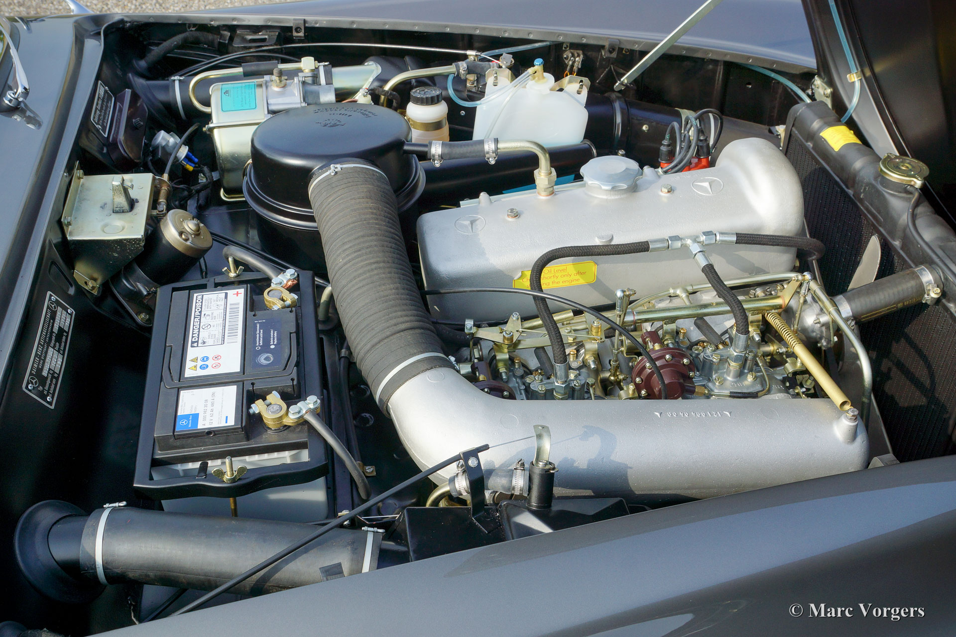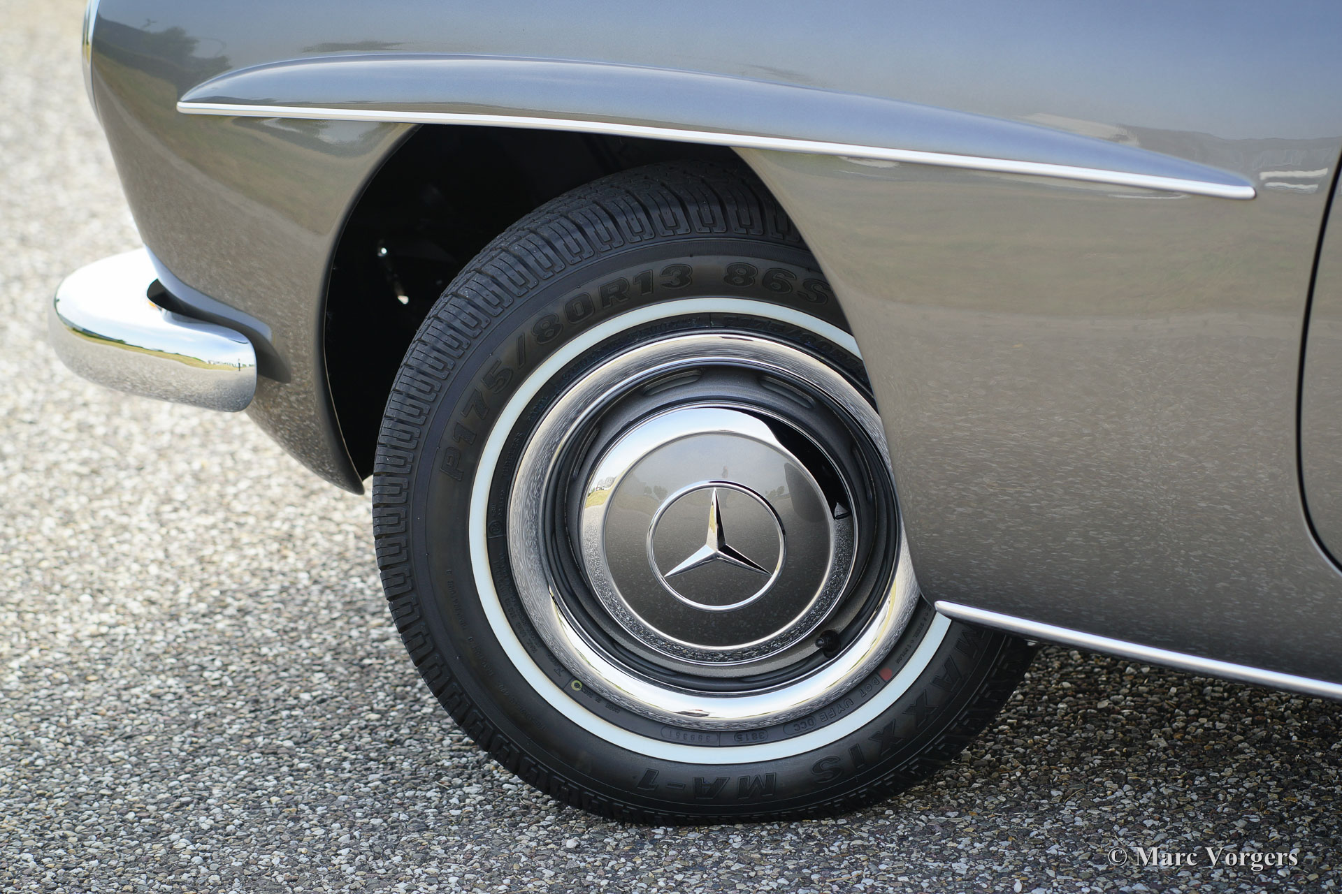 Mercedes-Benz 190 SL (W121), année 1962. Couleur gris foncé métallisé avec un intérieur en cuir cognac-brun et un tapis beige. Capot de mohair brun foncé et couvercle de la hotte en brun-cognac. Cette magnifique Mercedes 190 SL fut restaurée détaillée dans les années 2015 à 2017 ! Au cours de cette restauration de première classe, de nombreuses pièces Mercedes originales sont utilisées. Tout furent restauré et révisé ; Le moteur, la boîte de vitesses, les carburateurs, même toutes les jauges du tableau de bord. Le pare-brise et les fenêtres latérales furent renouvelés et un nouveau métier à tisser a été installé. Tout le chrome fut chromé parfaitement. C'est un spécimen TOP en condition de concours ! La voiture a des ‘Matching Numbers’, un Mercedes-Benz 'Datenkarte' est présent pour confirmer cela.