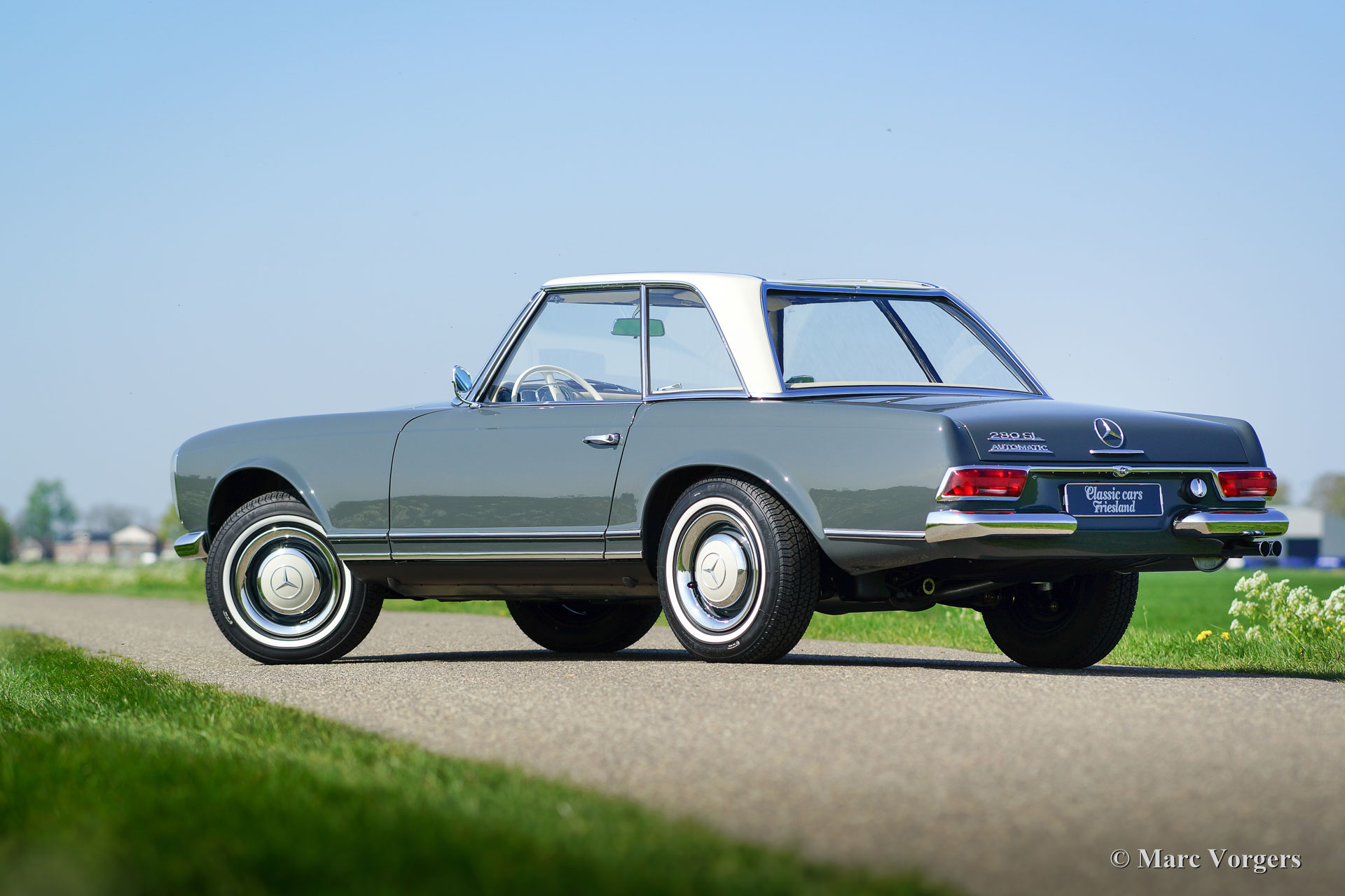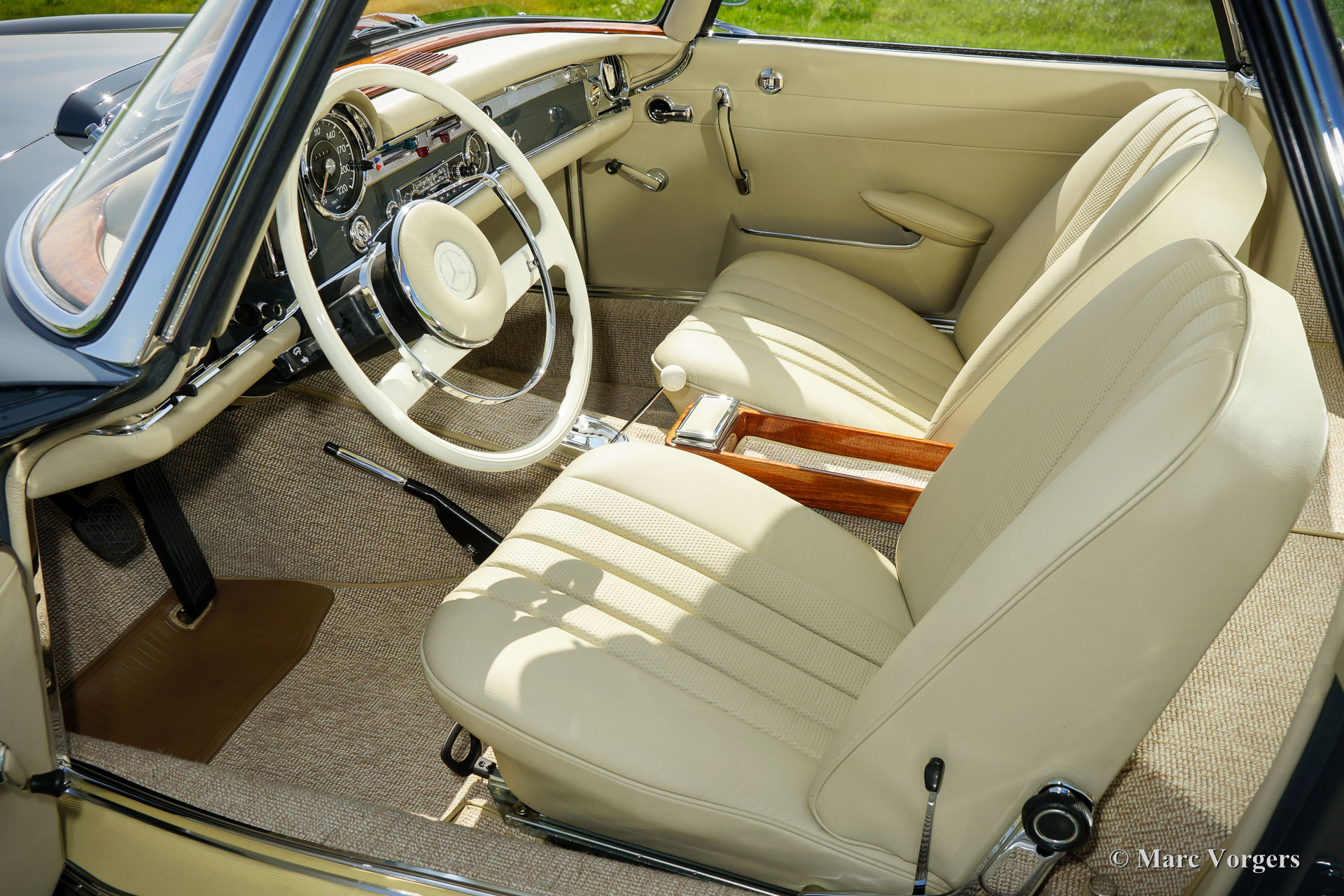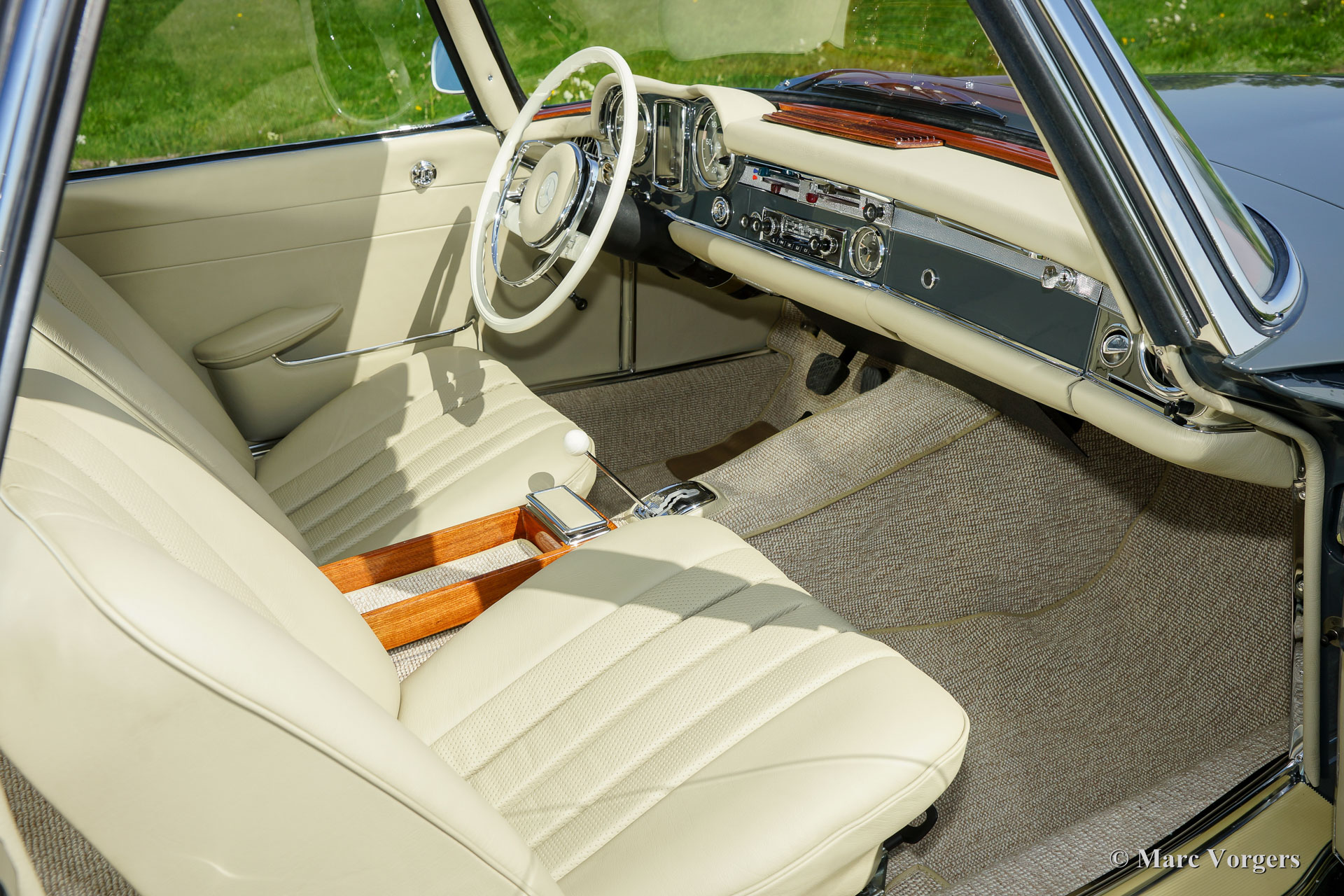 Mercedes-Benz 230 SL 'Pagode', année 1967. 'Matching numbers', MB 'Datenkarte' est présent. Couleur gris (Graphitgrau MB, numéro de couleur 190) avec un ‘hard-top’ en couleur crème et un capot mohair noir. Intérieur en cuir beige et tapis beige. Cette magnifique Mercedes 230 SL 'Pagode' fut entièrement et parfaitement 'body-off' restaurée dans les années 2014-2016. Sans exception, tout fut restauré, révisé et / ou renouvelé ! Environ 2000 heures ont été investies dans cette restauration de première classe dont un reportage photo est présent. Ce magnifique SL 'Pagode' présente un ajustement de panneau parfait, toutes les soudures par points originales, un capot parfaitement adapté, un hard-top restauré à nouveau et un intérieur rembourré avec les meilleurs matériaux de la période. C'est un spécimen TOP impeccable en condition A1 concours ! L'automobile comporte une direction assistée, des servofreins, une boîte de vitesses automatique et une radio Blaupunkt de période très belle. Vous serez difficile de trouver un exemple plus beau et mieux restauré !