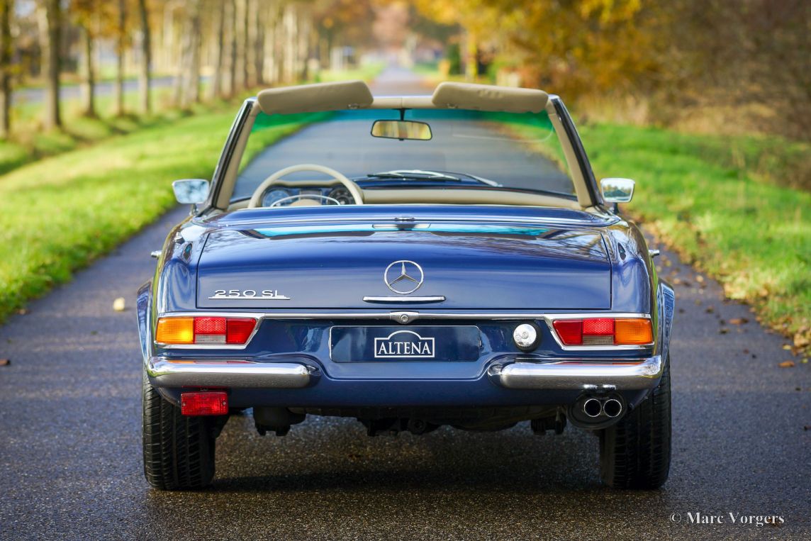The Mercedes 250 SL was produced alongside the 230 SL from 1966 until 1968. The timeless, austere design that was first seen in the Mercedes 300 SE sedan in 1961, was continued in the 230 SL, the 250 SL and thereafter the 280 SL: many see these versions as the most beautiful Mercedes-Benz creations since the 1960s. The 250 SL is characterized by its refined, lively handling and by its very high constructive and technical quality. The car also offers much space, many comforts and practical conveniences. The open two-person roadster is also available with a hardtop, which changes the car into a closed coupe. The Mercedes-Benz 230 SL/250 SL/280 SL carried the nickname of 'Pagoda' because of the design of the hardtop.