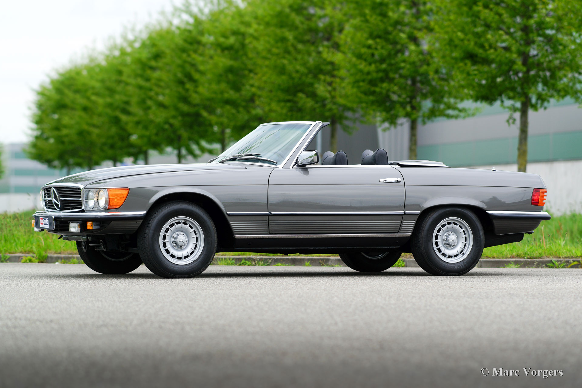 Mercedes-Benz 280 SL (type R107), année 1977. Couleur gris foncé métallisé avec un intérieur noir « Tex » et tapis noir. Capot noir et ‘hard-top’ original dans la couleur du corps. Cette belle Mercedes 280 SL a été vendue neuf aux États-Unis. Plusieurs détails à l'avant et à l'arrière (groupes de lampes et pare-chocs) sont des témoins d'origine américaine. Après l'importation de la voiture aux Pays-Bas, la voiture a reçu une nouvelle peinture parfaite et un intérieur flambant neuf. Du nouveau, la voiture a parcouru 131 000 milles. Cette Mercedes SL est en excellent état et la voiture fonctionne parfaitement. Très spécial, c'est la présence d'une boîte de vitesses manuelle qui rend la voiture très souhaitable. Ceci en raison de l'interaction splendide avec le moteur en ligne à six cylindres de 195 ch. La voiture est livrée avec le ‘hard-top’ original, déjà mentionné, et la voiture est équipée de jolies roues en alliage original MB et d'un lecteur de radio-CD.