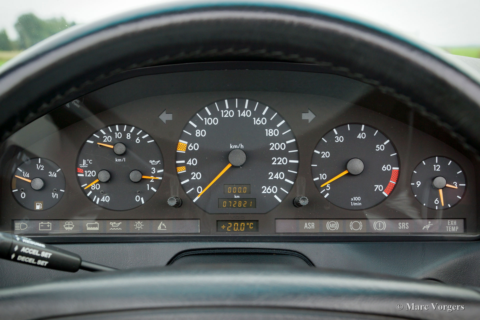 La voiture dispose des options suivantes (entre autres): régulateur de vitesse, ASR, EDS, ABS, airbag de pilote, airbag passager, climatisation, verrouillage centralisé, vitres électriques, capote électrique, miroirs ajustables et rétractables électriques (3 réglages mémoire), sièges réglables électriquement (3 mémoire de réglage), volant réglable électriquement (mémoire 3 paramètres), roll-bar de sécurité automatique, verre teinté, couvert de cuir du volant, des roues en alliage, peinture métallisée, phares antibrouillard à l'avant, la système radio/ cd, différentiel à glissement limité, volant a direction assistée, rétroviseurs chauffants, les lampes au xénon (original sur les derniers modèles de la série R129), etcetera. Ceci est un spécimen TOP !