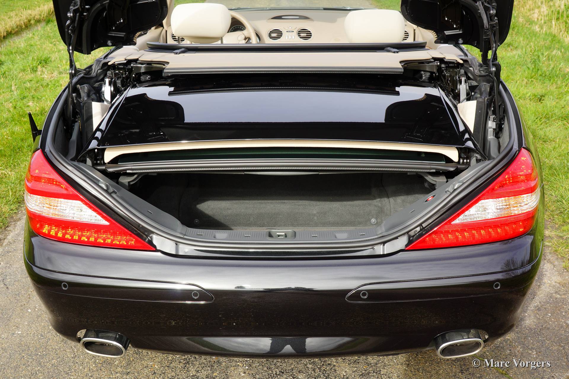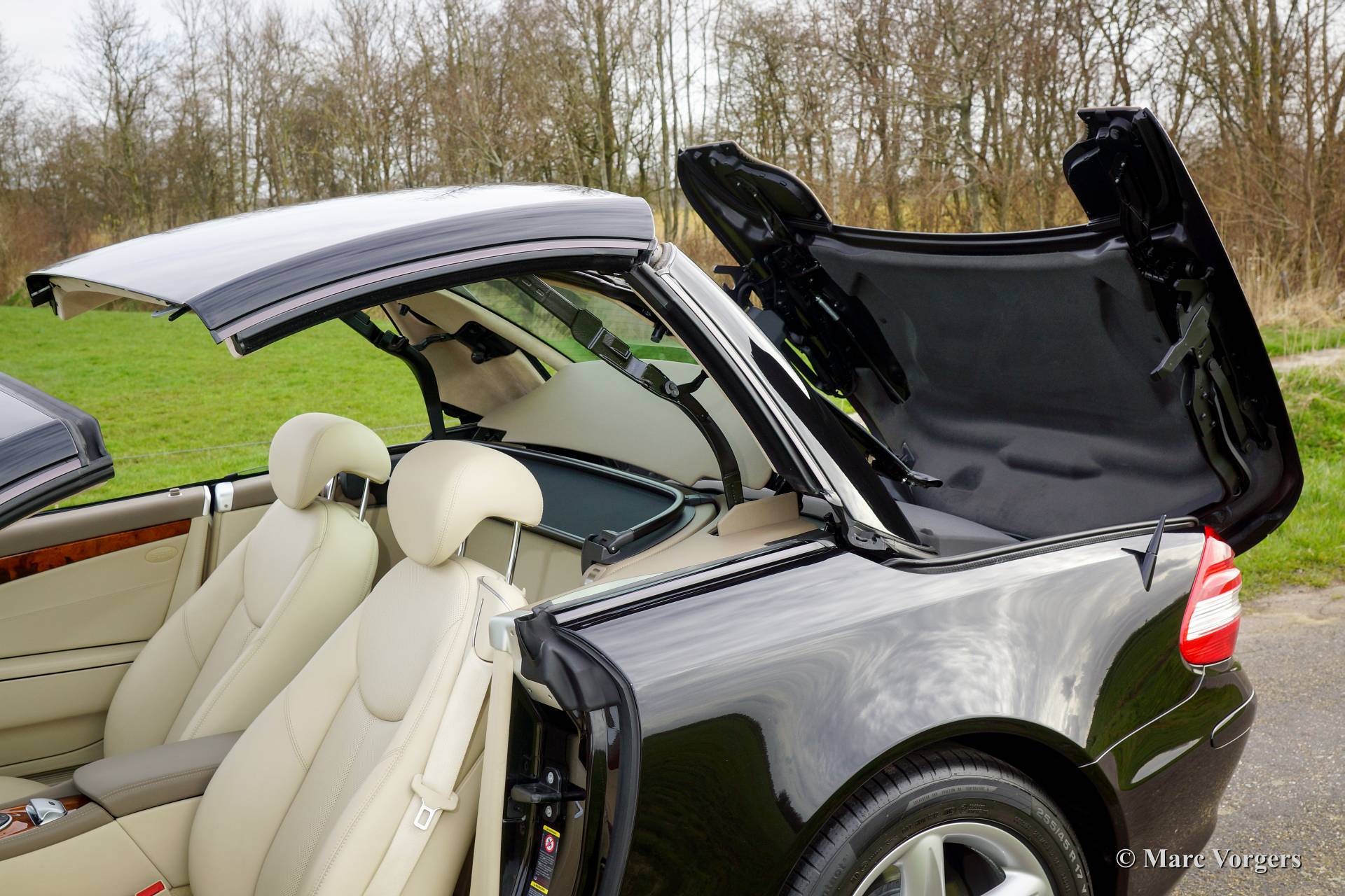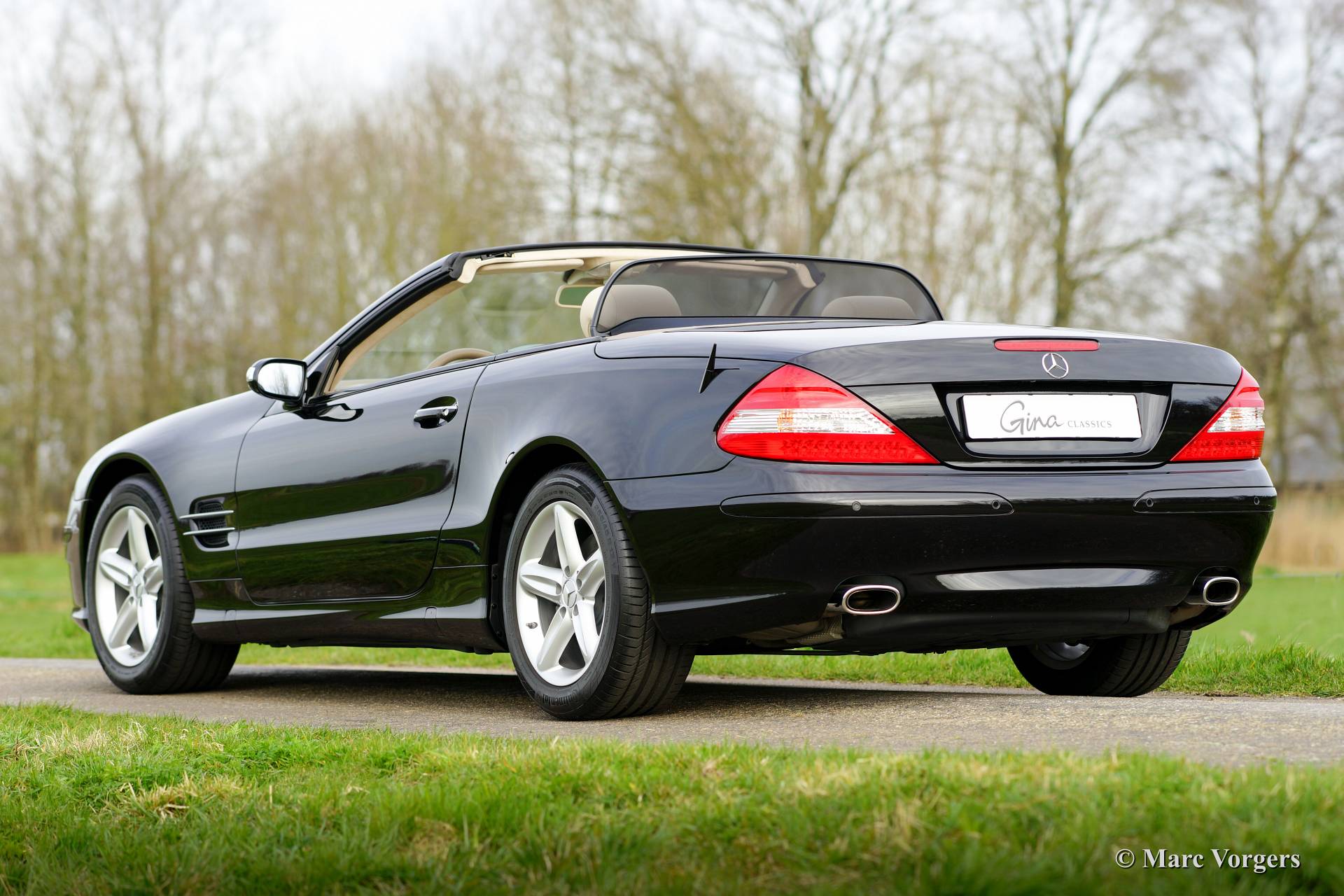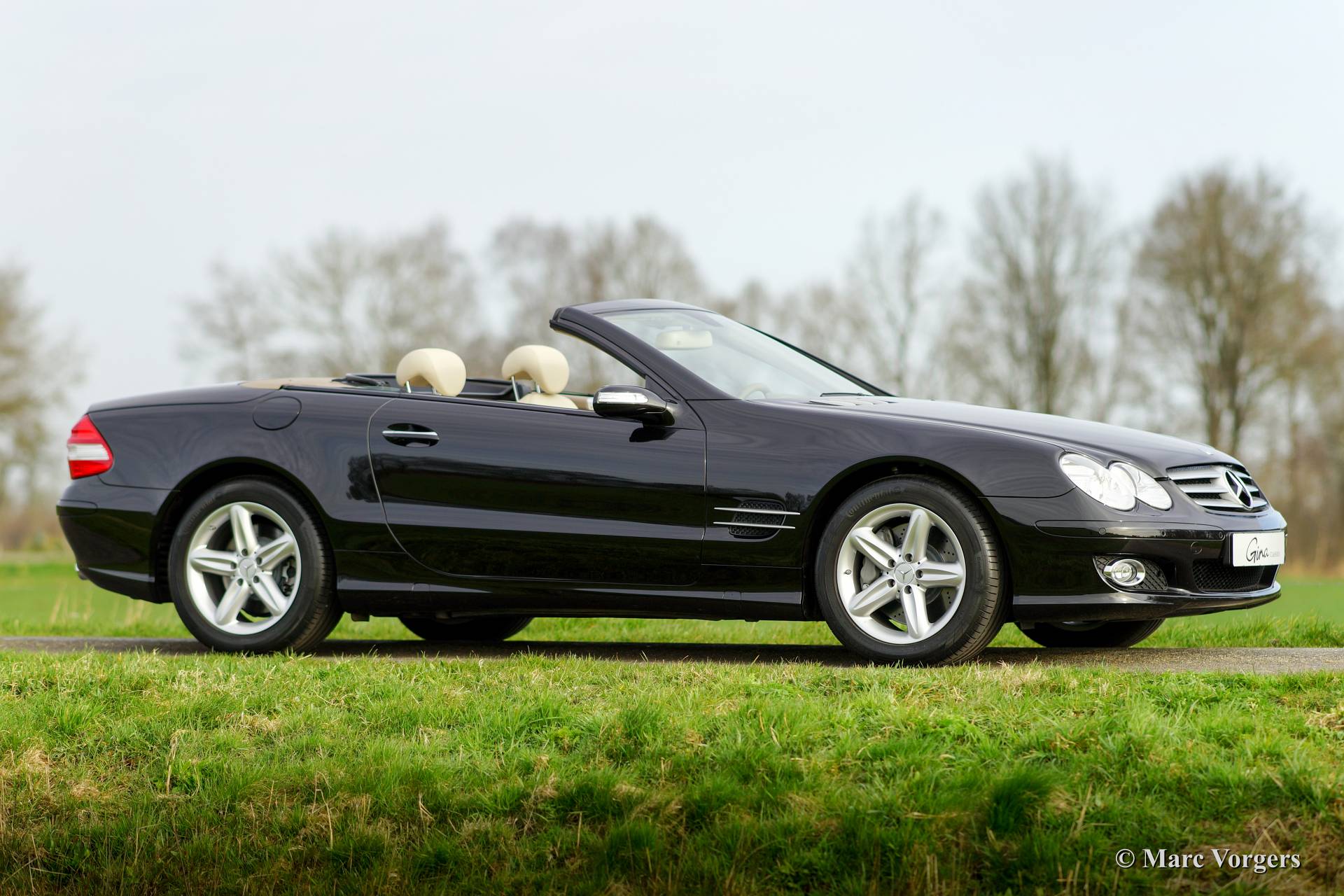 Mercedes-Benz 500 SL, année mai 2007. Couleur Noir obsidienne métallisé (code 197) avec un intérieur en cuir beige (code 515).