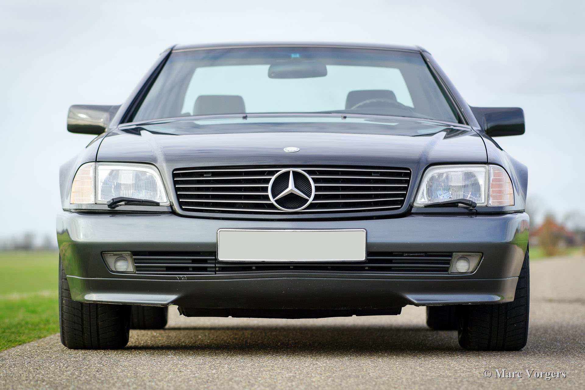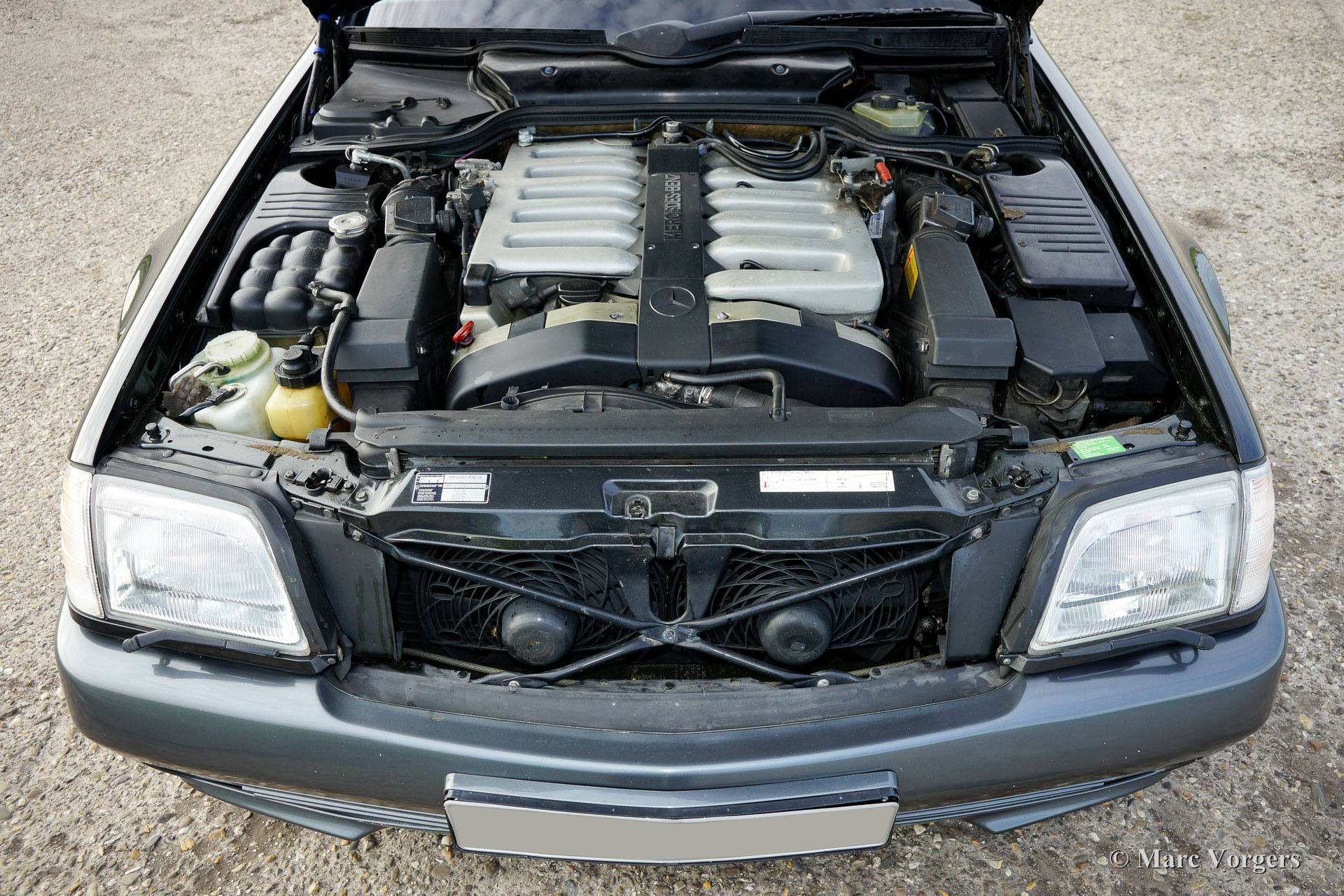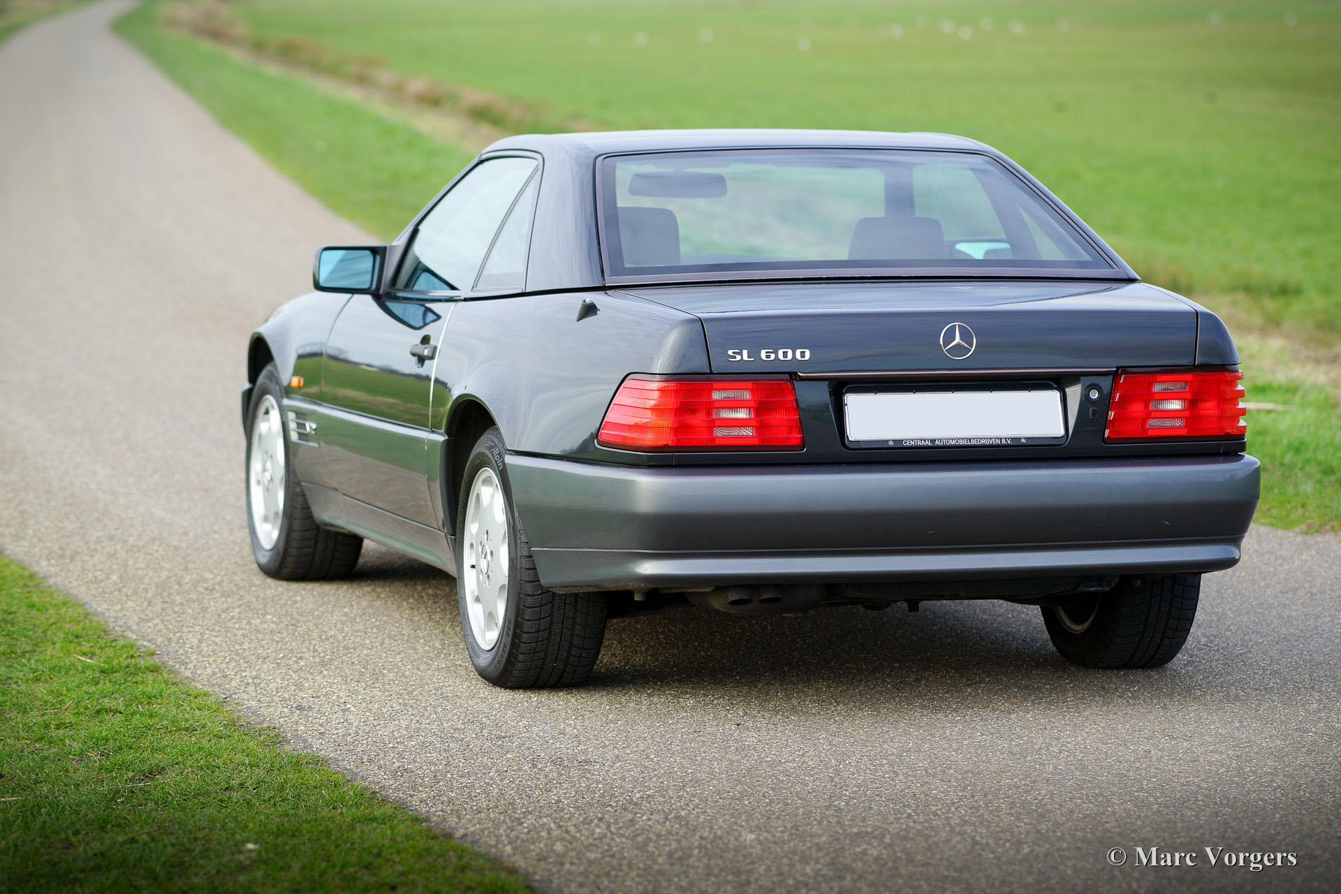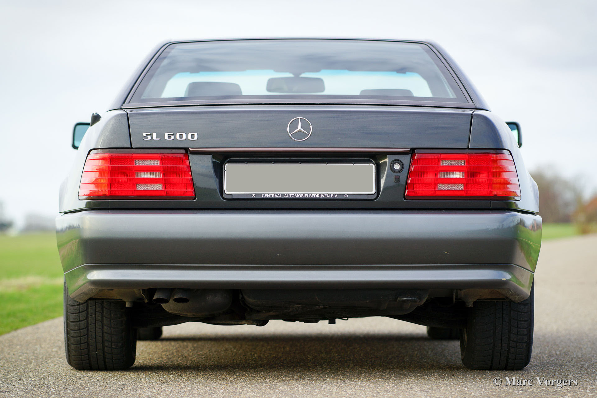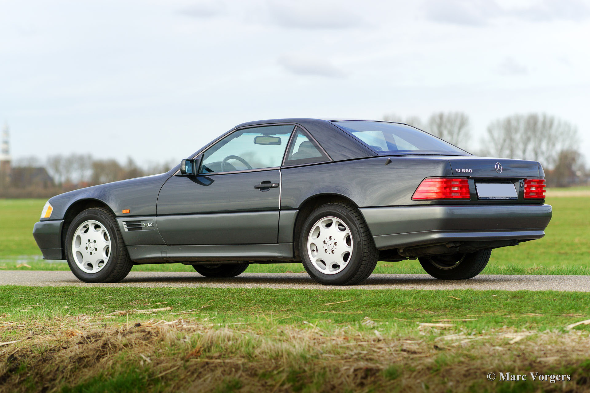 Mercedes-Benz 600 SL (type R129), année 1995. Couleur anthracite métallique avec un intérieur en cuir noir. Capot mohair noir et un hard-top d’origine dans la couleur du corps. Cette impressionnante Mercedes 600 SL fut vendue neuf en Allemagne et la voiture est équipée d'une liste complète d'options. Du nouveau, cette automobile n'a parcouru que 72,585 kilomètres. Ce 600 SL fut équipé de Mercedes-Benz au cours des années et la voiture est en excellent état ! Même le capot mohair original est en parfait état. Un dossier contenant des factures de service, des livres et des manuels, une brochure 600 SL et d'autres documents est présent. La voiture dispose (entre autres) de la climatisation, du système de radio / CD et de sièges réglables électriquement avec 3 réglages de mémoire. Les outils d'origine sont également présents. C'est une Mercedes-Benz 600 SL d'excellente qualité !