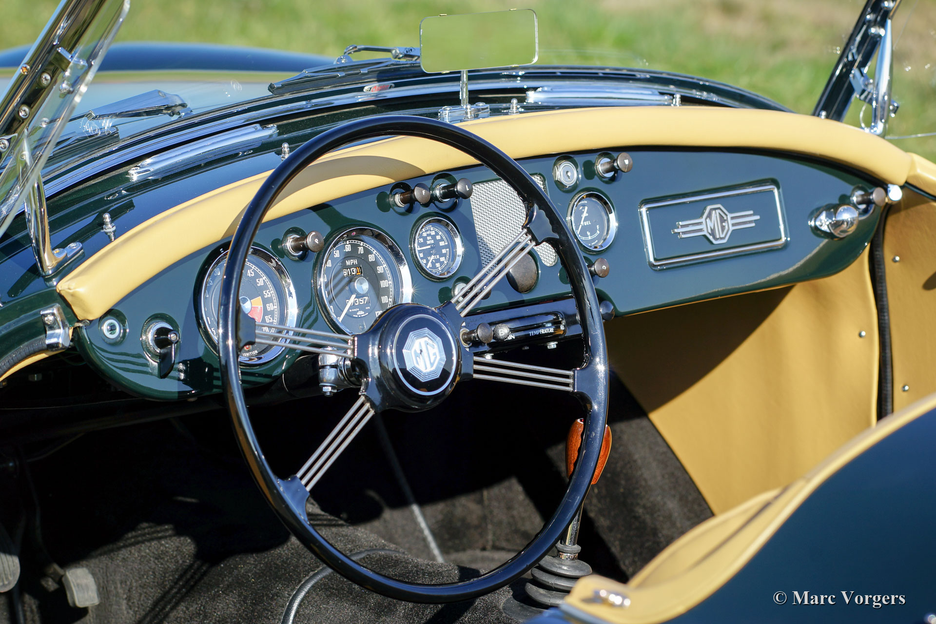 The year 1955 saw the introduction of the MGA. With this design the MG broke new grounds. After its predecessors MG TD and MG TF, which were largely based on the pre-war MG TB, it was a roadster with a very modern sporty design. Like its predecessors, the MGA was a great success and, like before, the greater part was sold in America. Until 1959, the MGA was equipped with a 1459 cc four-cylinder engine. From that year, the car was fitted with a 1588 cc four-cylinder. A 1622 cc four-cylinder engine replaced the 1588 cc. engine in 1961. The early MGA versions had very good drum brakes until 1959, but after that year, the MG A was equipped with disc brakes on the front wheels. The year 1962 saw the production of the MGA, the A 1600 Mk II. The MGB replaced this very popular British sports car, and was to develop the success of the MG A even further.