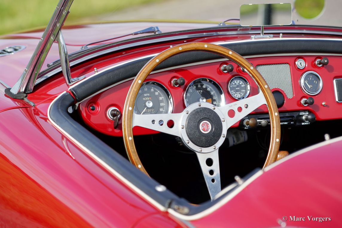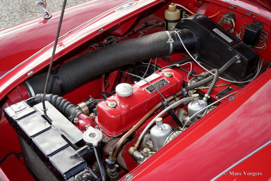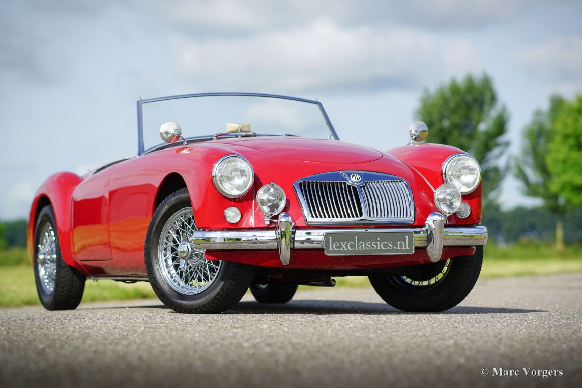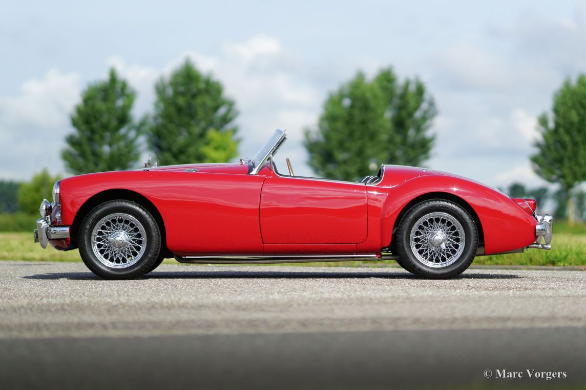 The year 1955 saw the introduction of the MGA. With this design the MG broke new grounds. After its predecessors MG TD and MG TF, which were largely based on the pre-war MG TB, it was a roadster with a very modern sporty design. Like its predecessors, the MGA was a great success and, like before, the greater part was sold in America. Until 1959, the MGA was equipped with a 1459 cc four-cylinder engine. From that year, the car was fitted with a 1588 cc four-cylinder. A 1622 cc four-cylinder engine replaced the 1588 cc. engine in 1961. The early MGA versions had very good drum brakes until 1959, but after that year, the MG A was equipped with disc brakes on the front wheels. The year 1962 saw the production of the MGA, the A 1600 Mk II. The MGB replaced this very popular British sports car, and was to develop the success of the MG A even further.