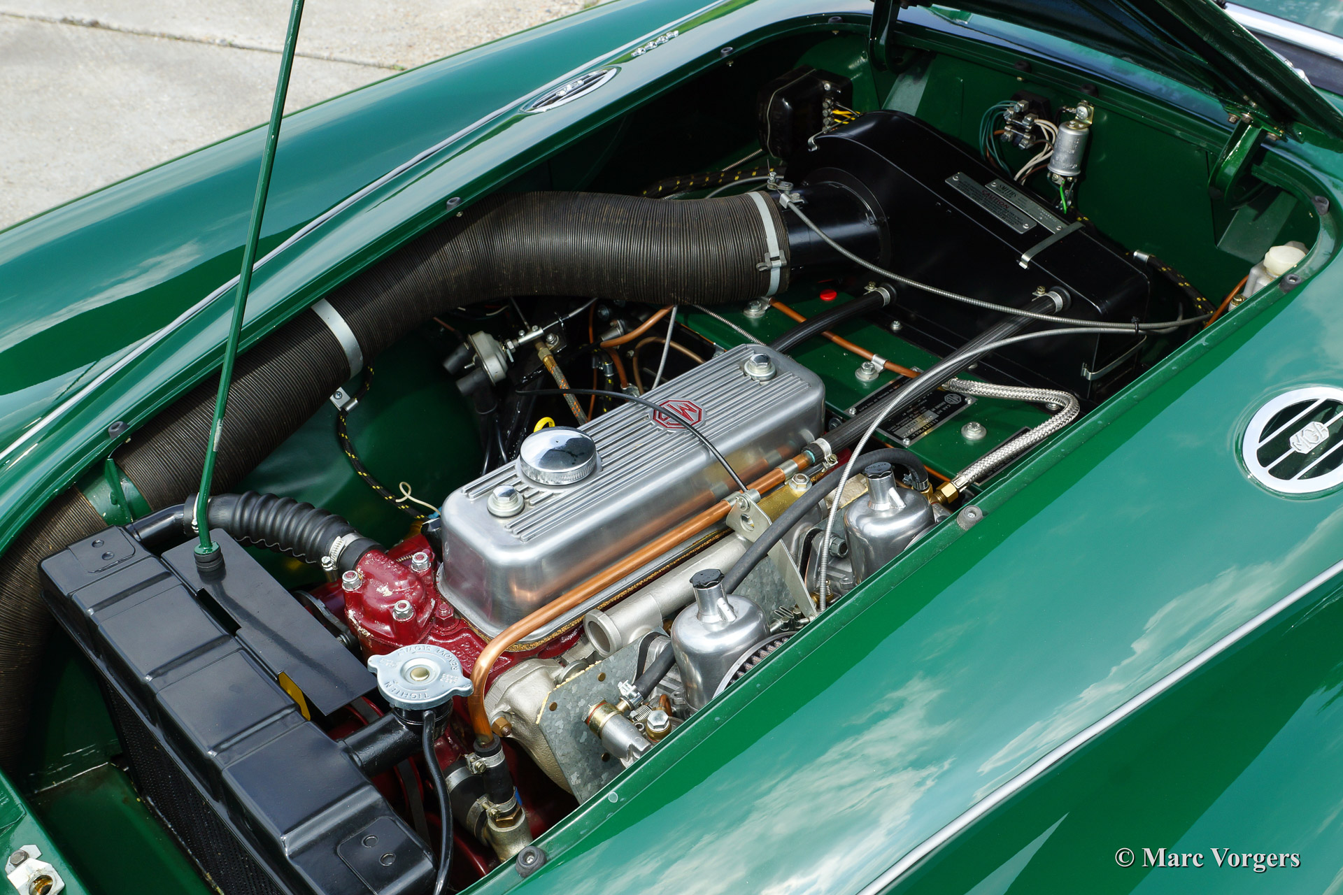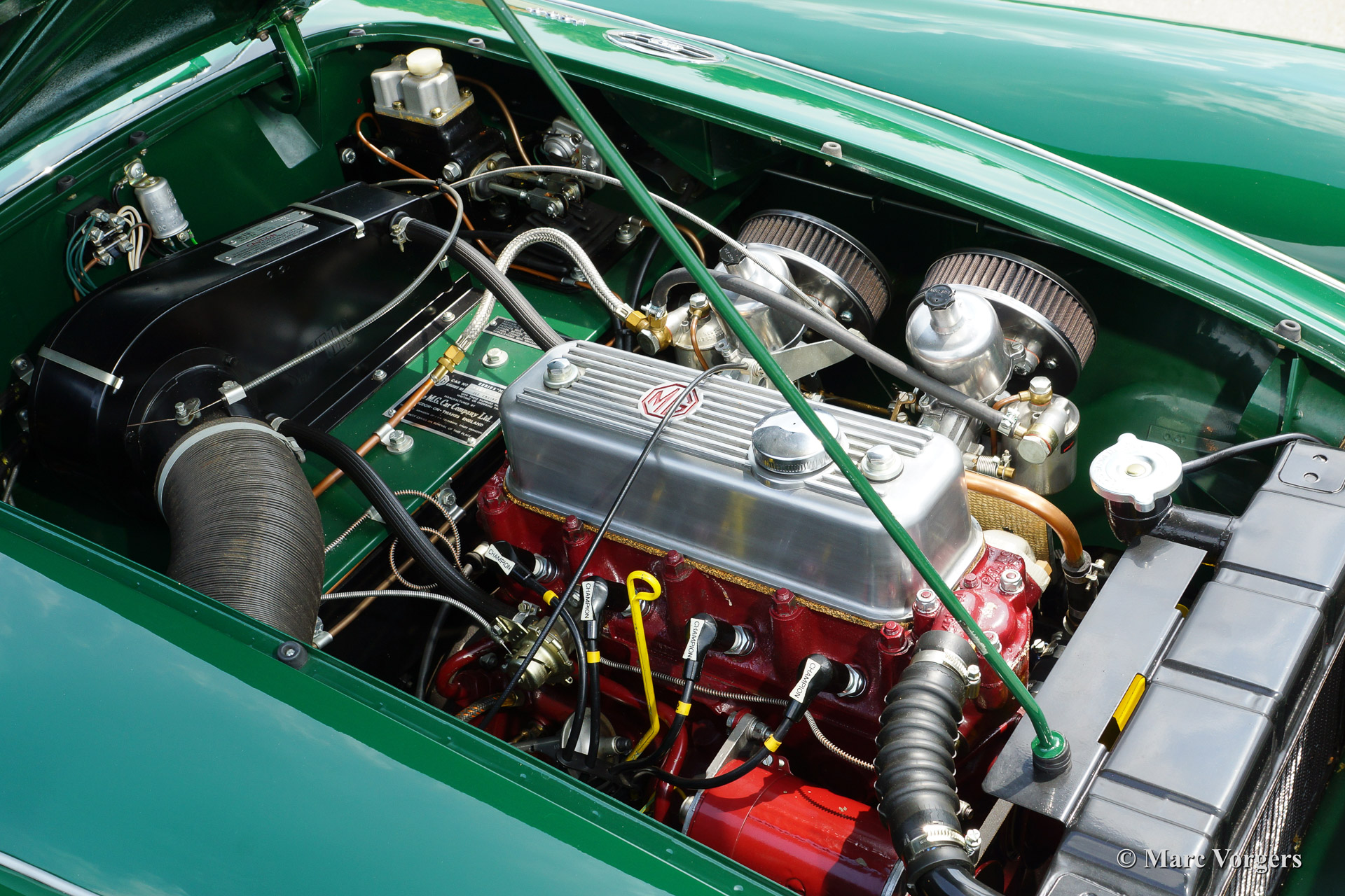 The year 1955 saw the introduction of the MGA. With this design the MG broke new grounds. After its predecessors MG TD and MG TF, which were largely based on the pre-war MG TB, it was a roadster with a very modern sporty design. Like its predecessors, the MGA was a great success and, like before, the greater part was sold in America. Until 1959, the MGA was equipped with a 1459 cc four-cylinder engine. From that year, the car was fitted with a 1588 cc four-cylinder. A 1622 cc four-cylinder engine replaced the 1588 cc. engine in 1961. The early MGA versions had very good drum brakes until 1959, but after that year, the MG A was equipped with disc brakes on the front wheels. The year 1962 saw the production of the MGA, the A 1600 Mk II. The MGB replaced this very popular British sports car, and was to develop the success of the MG A even further.