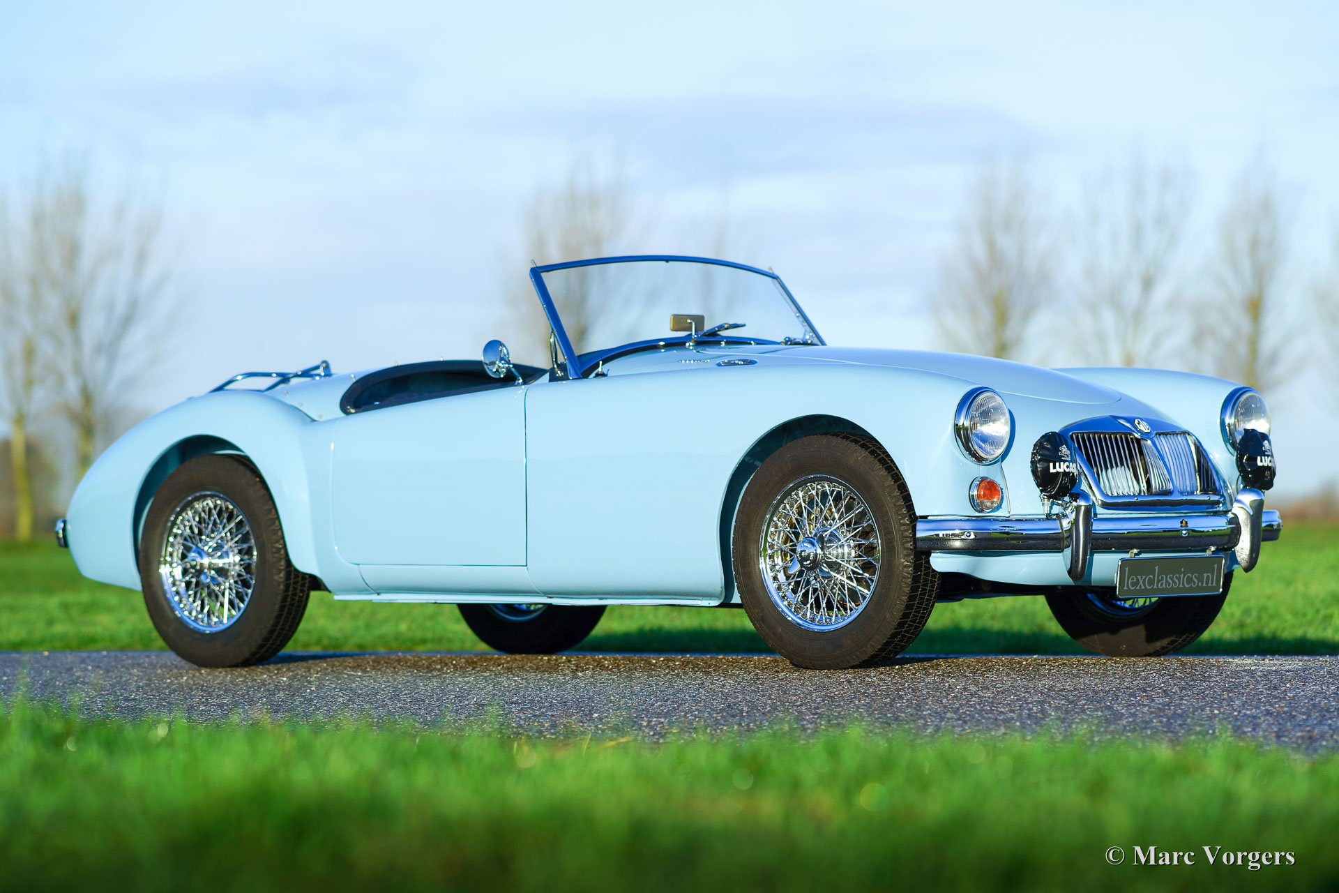 The year 1955 saw the introduction of the MGA. With this design the MG broke new grounds. After its predecessors MG TD and MG TF, which were largely based on the pre-war MG TB, it was a roadster with a very modern sporty design. Like its predecessors, the MGA was a great success and, like before, the greater part was sold in America. Until 1959, the MGA was equipped with a 1459 cc four-cylinder engine. From that year, the car was fitted with a 1588 cc four-cylinder. A 1622 cc four-cylinder engine replaced the 1588 cc. engine in 1961. The early MGA versions had very good drum brakes until 1959, but after that year, the MG A was equipped with disc brakes on the front wheels. The year 1962 saw the production of the MGA, the A 1600 Mk II. The MGB replaced this very popular British sports car, and was to develop the success of the MG A even further.