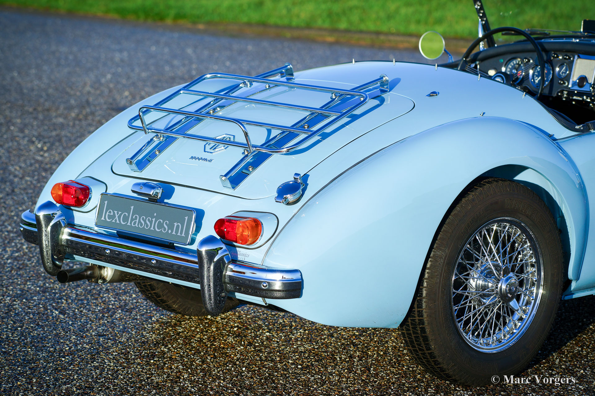 MG MGA 1600 Mk II roadster, année 1961. Couleur 'powder blue’ avec un intérieur en cuir bleu foncé. Cette belle MGA 1600 roadster a été restauré détaillé et ‘body off’ il ya quelques années. La carrosserie présente une excellente forme de panneau et la peinture est immaculé. Cette MGA est en superbe état top! Un reportage photo de la restauration est présent. Cette MGA 1600 de la dernière série Mk II propose des roues chromées de fil, phares antibrouillard Lucas à l'avant, le ventilateur de refroidissement électrique, le servofrein, vinyle capote et un porte-bagages chromé.