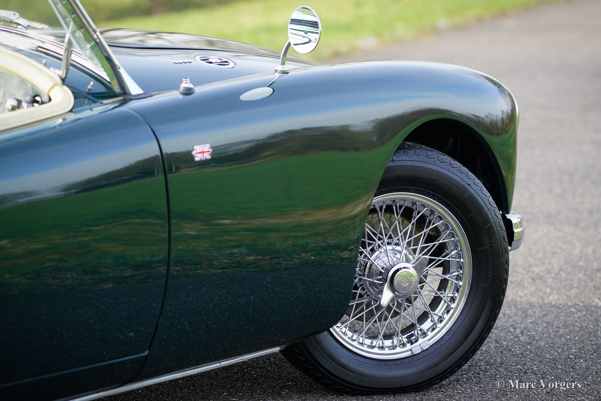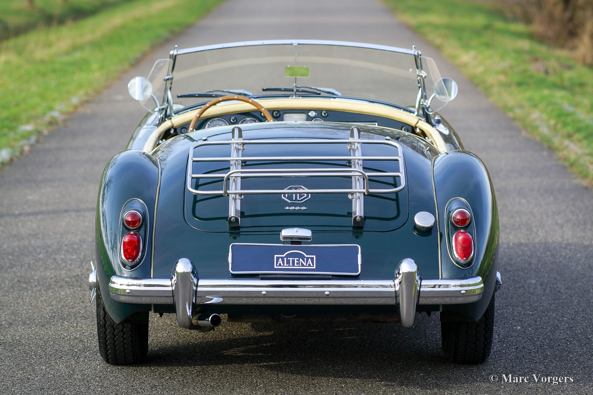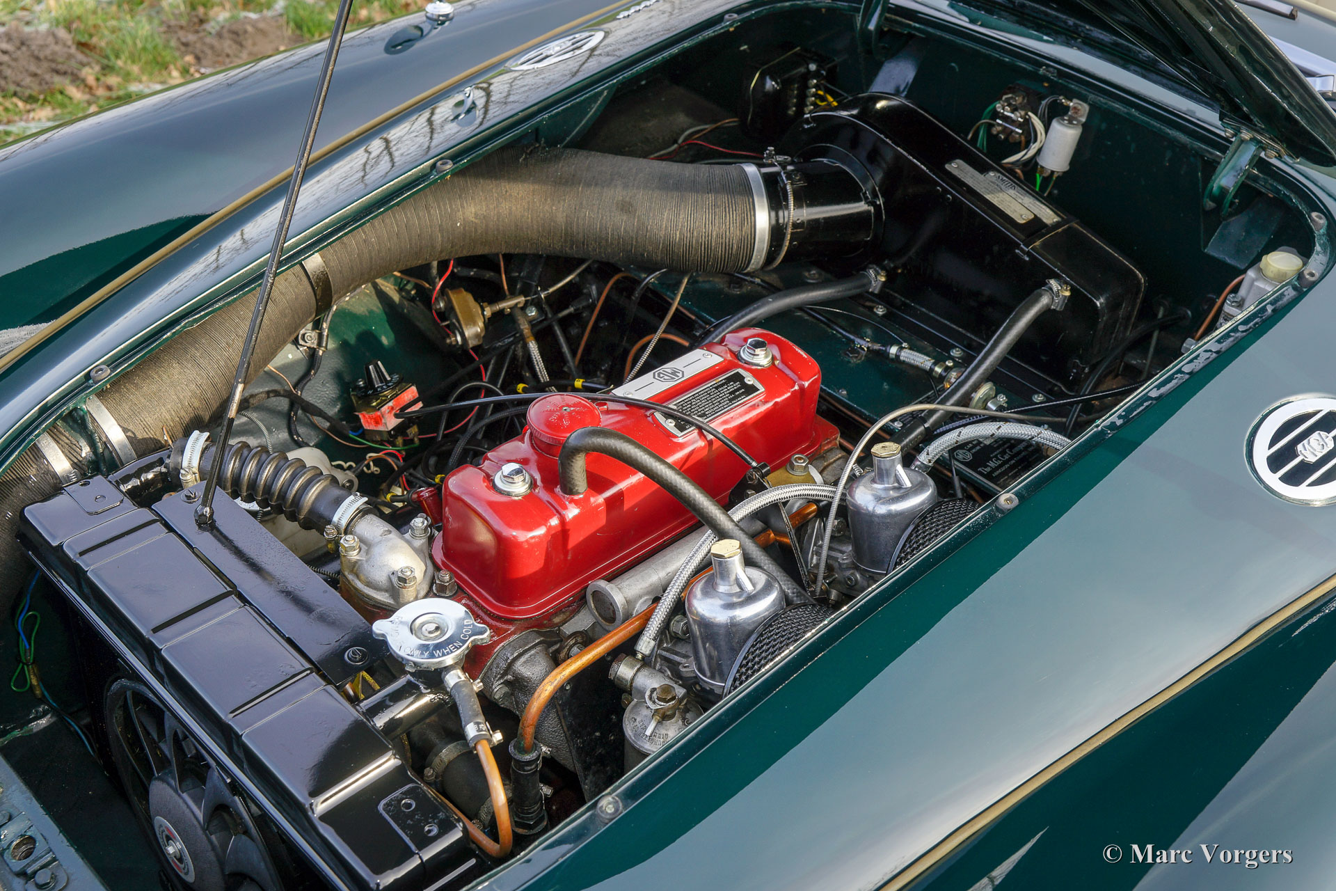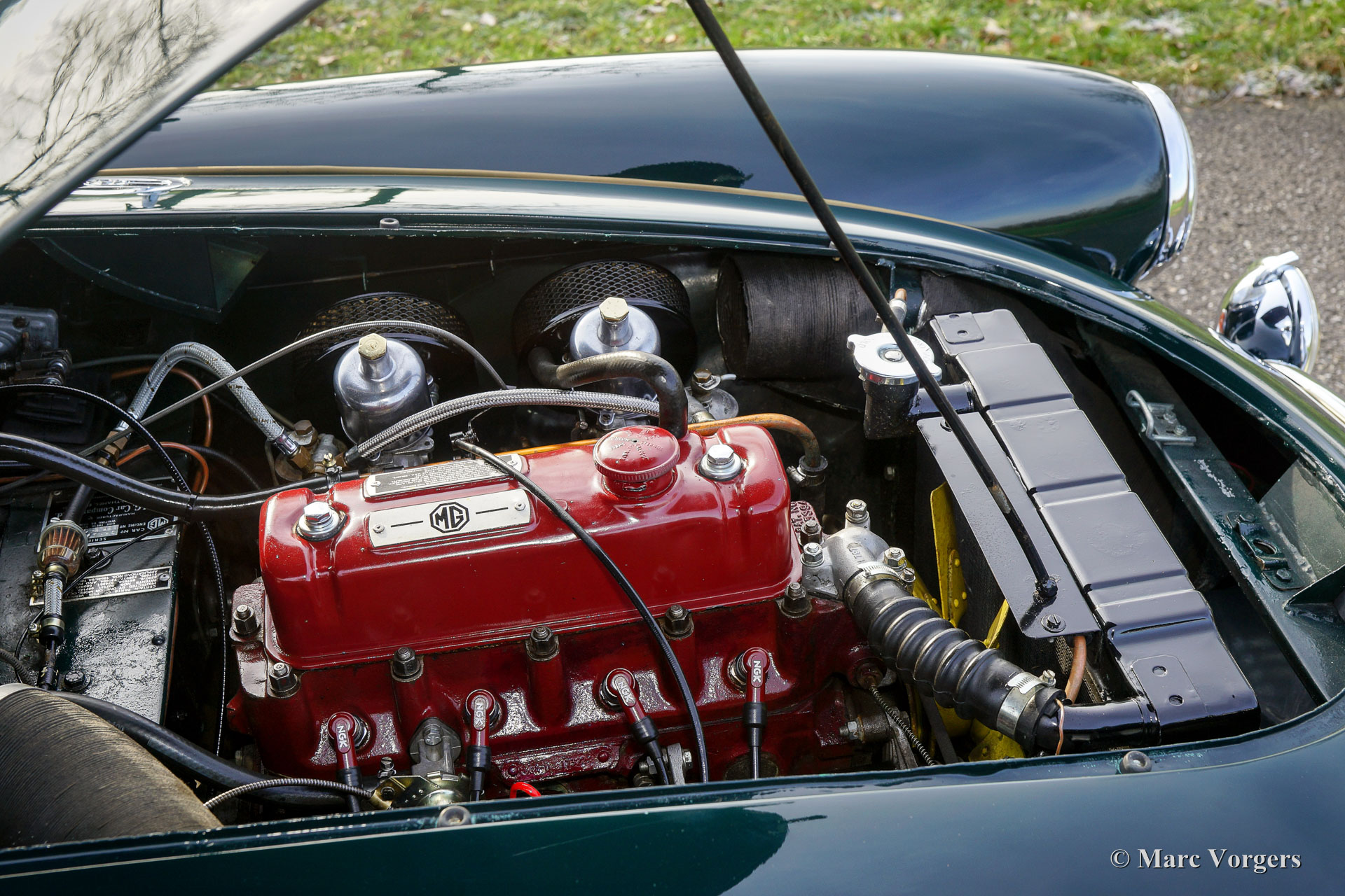 The year 1955 saw the introduction of the MGA. With this design the MG broke new grounds. After its predecessors MG TD and MG TF, which were largely based on the pre-war MG TB, it was a roadster with a very modern sporty design. Like its predecessors, the MGA was a great success and, like before, the greater part was sold in America. Until 1959, the MGA was equipped with a 1459 cc four-cylinder engine. From that year, the car was fitted with a 1588 cc four-cylinder. A 1622 cc four-cylinder engine replaced the 1588 cc. engine in 1961. The early MGA versions had very good drum brakes until 1959, but after that year, the MG A was equipped with disc brakes on the front wheels. The year 1962 saw the production of the MGA, the A 1600 Mk II. The MGB replaced this very popular British sports car, and was to develop the success of the MG A even further.