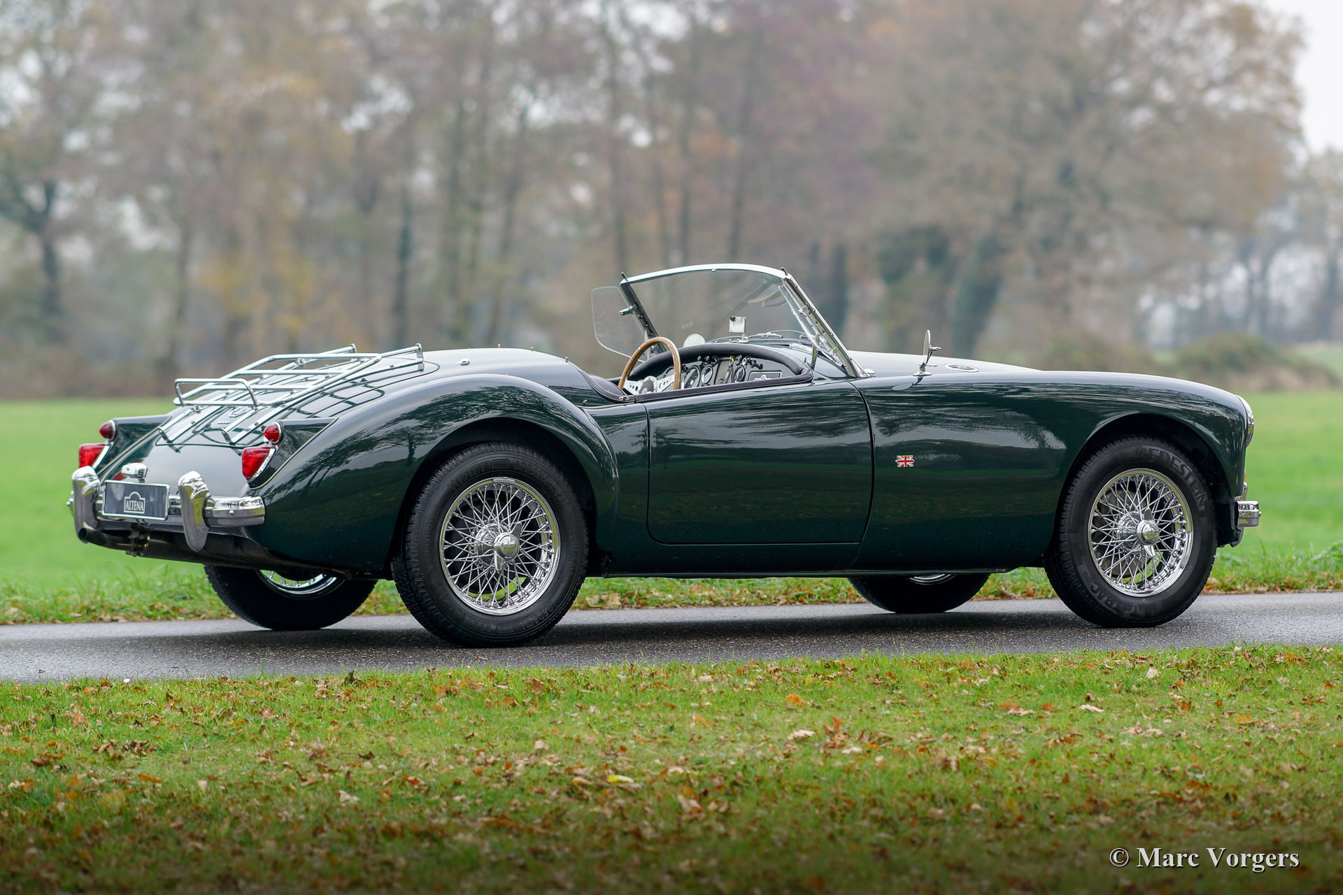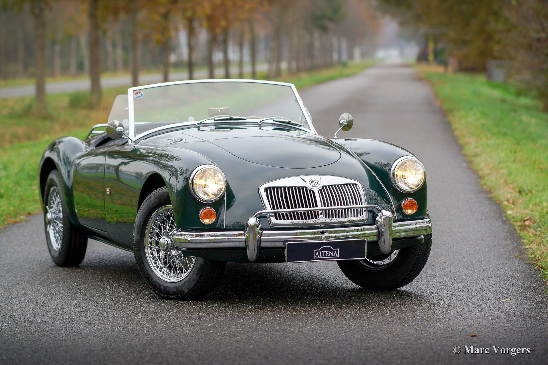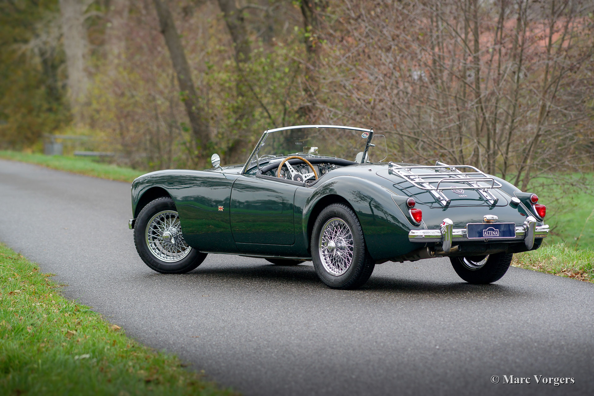 MG MGA 1600 roadster, année 1960. Numéro de châssis 9HNL7492X. Couleur British Racing Green combinée avec un intérieur noir et un tapis noir. Capote noire, écrans latéraux et couvre-tonneau noir. Ce magnifique MGA 1600 roadster fut vendu neuf aux États-Unis. En 1994, la voiture fut importée d'Oregon aux Pays-Bas. Dans les années 1995-1996, l’automobile fut restaurée et révisée détaillée par un spécialiste néerlandais de la marque MG. Un reportage photo complet de la restauration est présent. La carrosserie présente des carreaux bien ajustés. La voiture ne présente que de légères traces d'utilisation et l'aspect sous le capot est bien détaillé. Cette amende MGA est en très bon état et la voiture roule et se comporte à merveille ! En 2003, cette MGA fut vendue au propriétaire actuel par Altena Classic Service et Altena a entretenu la voiture au cours de toutes ces années. Ce roadster MGA est doté de roues à rayons chromées, d'un porte-bagages chromé et d'un volant sport Moto-Lita. C'est un très beau spécimen, prêt à être savouré au maximum par le nouveau propriétaire !