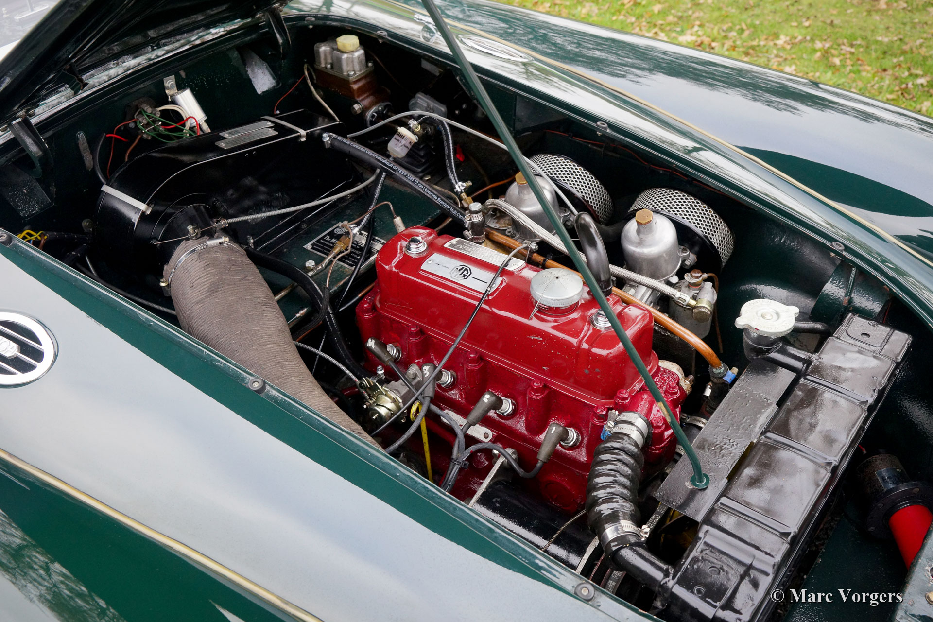 The year 1955 saw the introduction of the MGA. With this design the MG broke new grounds. After its predecessors MG TD and MG TF, which were largely based on the pre-war MG TB, it was a roadster with a very modern sporty design. Like its predecessors, the MGA was a great success and, like before, the greater part was sold in America. Until 1959, the MGA was equipped with a 1459 cc four-cylinder engine. From that year, the car was fitted with a 1588 cc four-cylinder. A 1622 cc four-cylinder engine replaced the 1588 cc. engine in 1961. The early MGA versions had very good drum brakes until 1959, but after that year, the MG A was equipped with disc brakes on the front wheels. The year 1962 saw the production of the MGA, the A 1600 Mk II. The MGB replaced this very popular British sports car, and was to develop the success of the MG A even further.