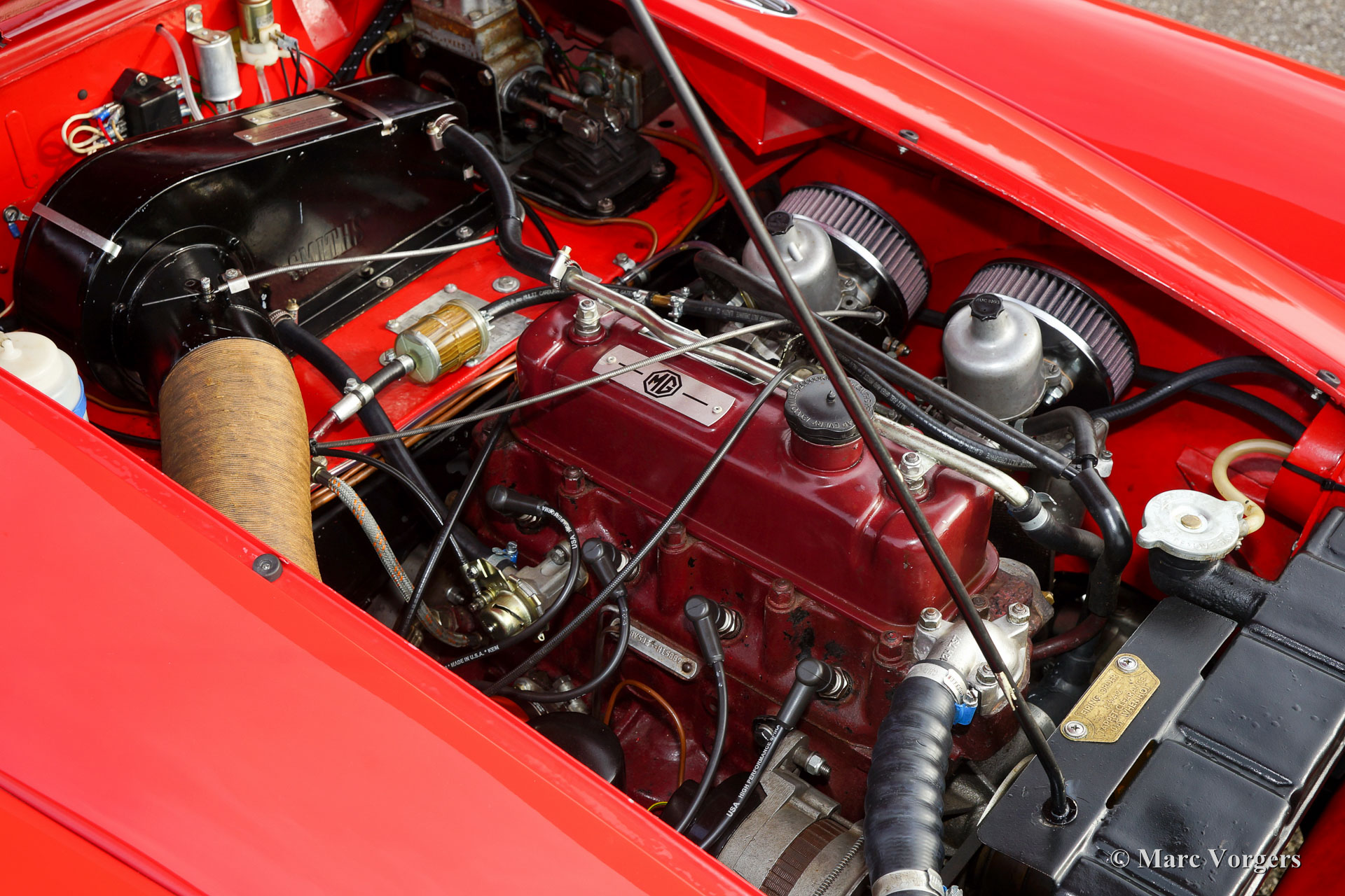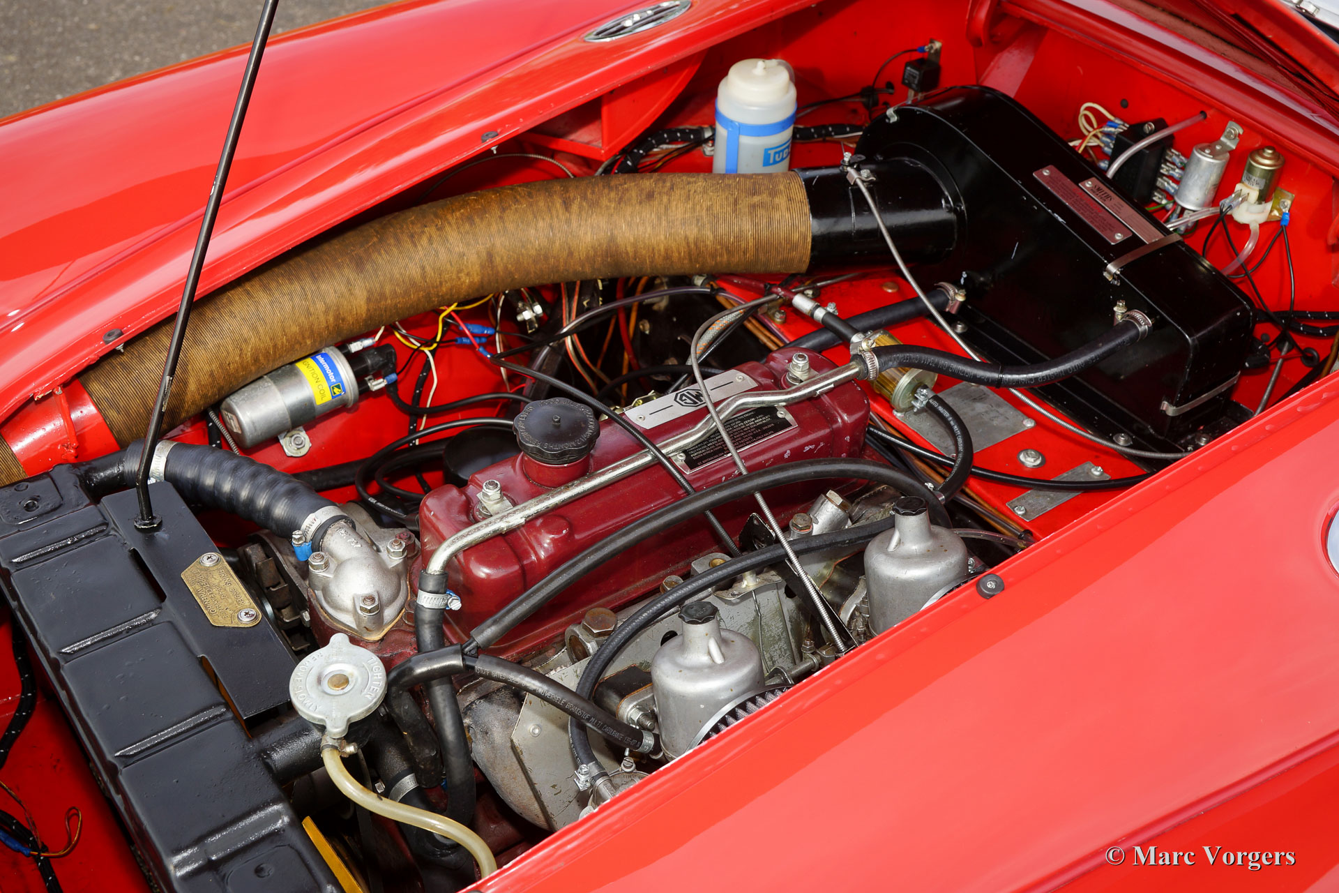 The year 1955 saw the introduction of the MGA. With this design the MG broke new grounds. After its predecessors MG TD and MG TF, which were largely based on the pre-war MG TB, it was a roadster with a very modern sporty design. Like its predecessors, the MGA was a great success and, like before, the greater part was sold in America. Until 1959, the MGA was equipped with a 1459 cc four-cylinder engine. From that year, the car was fitted with a 1588 cc four-cylinder. A 1622 cc four-cylinder engine replaced the 1588 cc. engine in 1961. The early MGA versions had very good drum brakes until 1959, but after that year, the MG A was equipped with disc brakes on the front wheels. The year 1962 saw the production of the MGA, the A 1600 Mk II. The MGB replaced this very popular British sports car, and was to develop the success of the MG A even further.