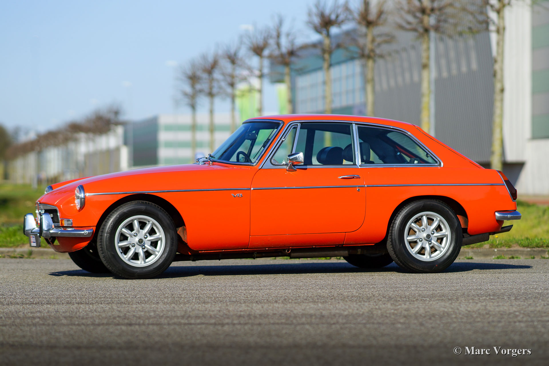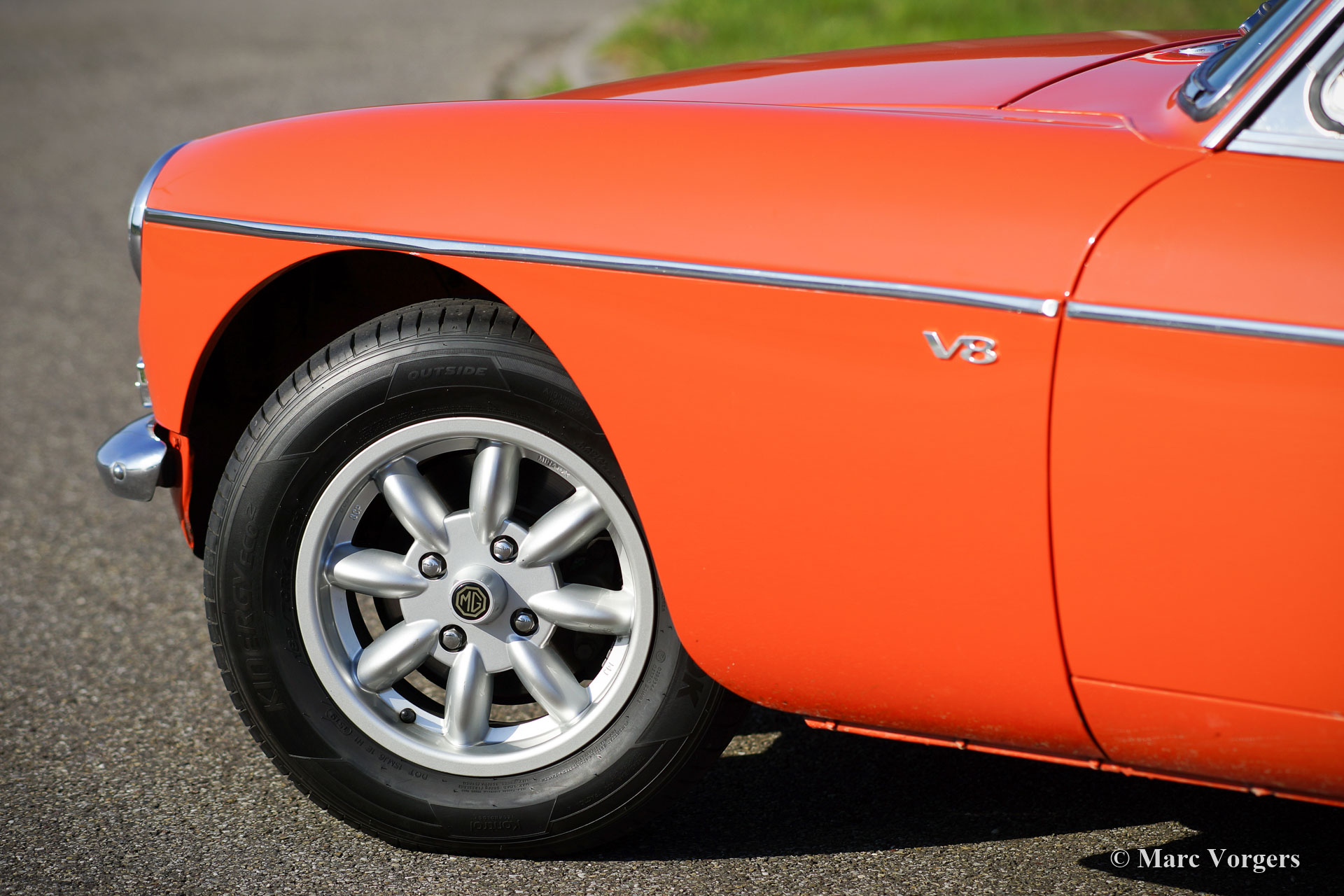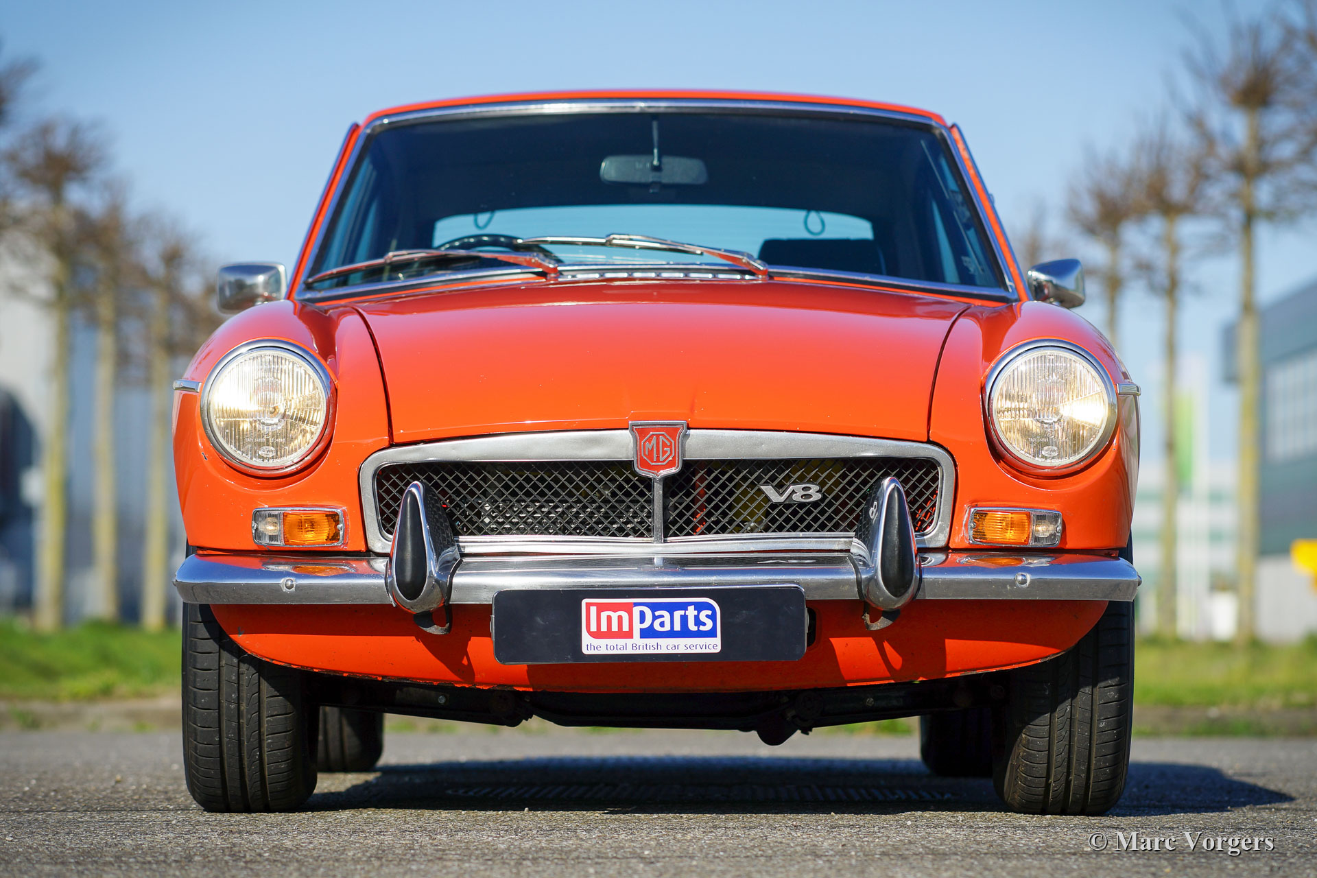 MG MGB GT V8, année 1973. Couleur orange « Blaze » combiné avec un intérieur en tissu noir et un tapis noir. Ce magnifique conduite à droite MGB GT V8 fut chéri par le dernier propriétaire pendant plus de quinze ans. La voiture fut magnifiquement entretenue et chérie, ce MGB GT V8 est dans un très bon état d'origine ! La voiture est livrée avec un fichier historique contenant les factures de service et de réparation. Ce MGB GT V8 roule, gère, embraye et freine parfaitement et la note d'échappement est vraiment addictive ! Le gros moteur V8 Rover de 3,5 litres combiné à la MGB GT est l'un des meilleurs mariages de l'histoire de l'automobile. Ces voitures sont très recherchées, assez abordables et très fiables. Le MGB GT V8 à été construit de 1973 à 1976. Seulement 2591 furent construits, dont 7 exemplaires avec direction à gauche. La voiture est équipée de jantes en alliage de style Minilite, d'un overdrive et de vitres teintées vertes. Les roues d'origine GT V8 sont également incluses. C'est une voiture fantastique dans un état magnifique !