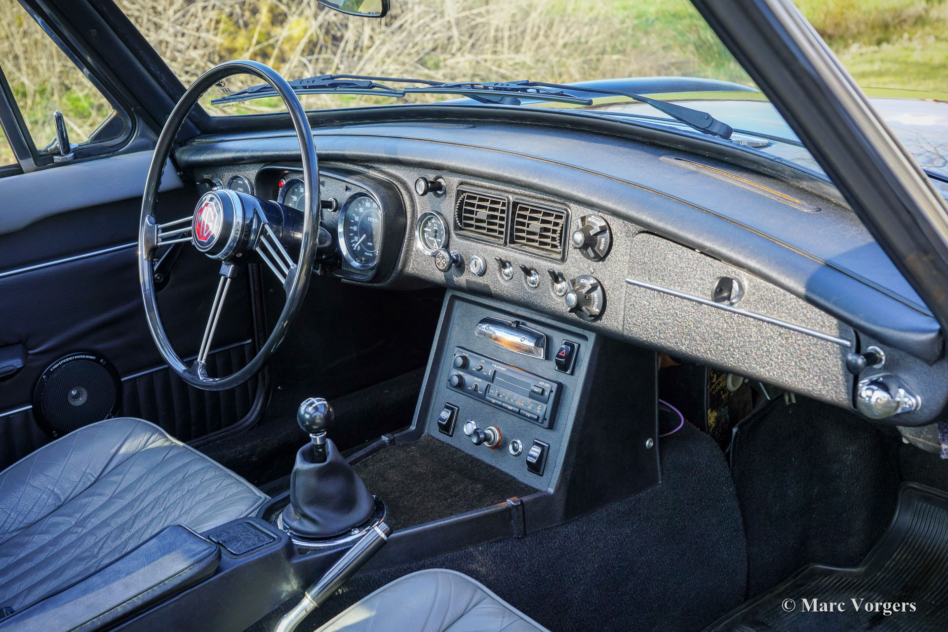 MG MGB GT V8, année 1974. Le moteur est d'origine, « matching numbers ». Un certificat du British Motor Industry Heritage Trust le confirme. Extérieur noir associé à un intérieur en cuir gris et moquette noire. Cette magnifique MGB GT V8 est une rare et originale V8 à pare-chocs chromés, produite à seulement 1 856 exemplaires. Cette puissante MGB V8 fut vendue neuve avec conduite à droite et couleur violette. Par suite de restaurations et révisions antérieures, elle fut convertie en direction à gauche et peinte en noir. Le moteur V8 de 3,5 litres, la boîte de vitesses, l'overdrive et le pont arrière furent révisés. Le moteur a été adapté aux spécifications routières rapides : un collecteur d'échappement à flux libre, un refroidisseur d'huile, un allumage électronique et une pompe à essence électrique ont été installés. De plus, un kit stabilisateur de pont arrière fut installé pour gérer la puissance supplémentaire. Depuis sa restauration, la voiture a parcouru 37 992 kilomètres. Cette MGB GT V8 est en très bon état et offre une conduite et une sonorité exceptionnelles ! Son dernier propriétaire l'a chérie pendant 28 ans, et son historique d'entretien complet est connu et documenté. Cette magnifique MGB GT V8 est dotée d'un élégant tableau de bord en métal, du volant d'origine orné du logo MG rouge/chrome au centre, d'un toit ouvrant coulissant Webasto d'origine et de jantes alliage Minilite. Les jantes V8 d'origine sont également présentes. Cette MGB GT V8 spectaculaire fera sourire les passionnés !
