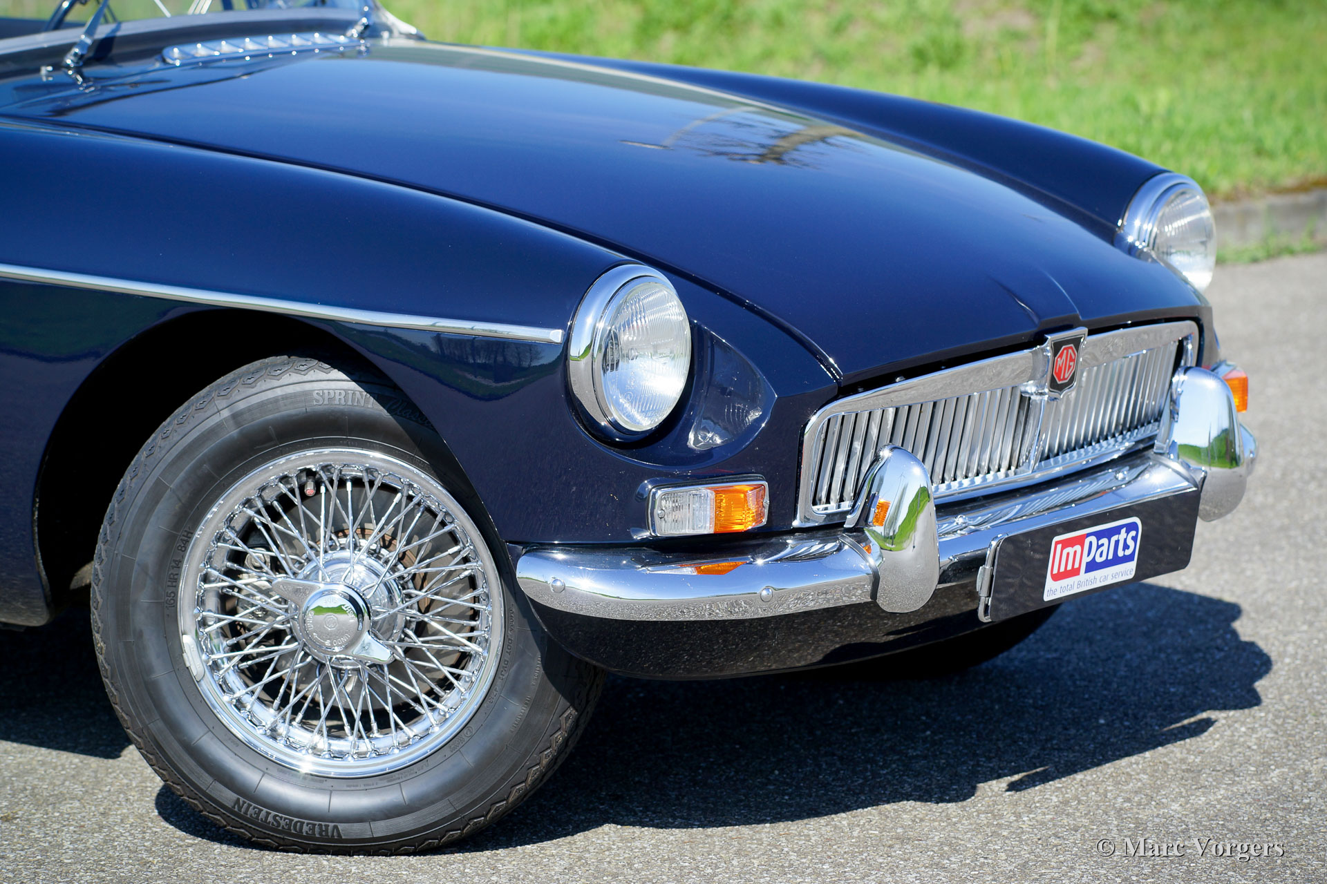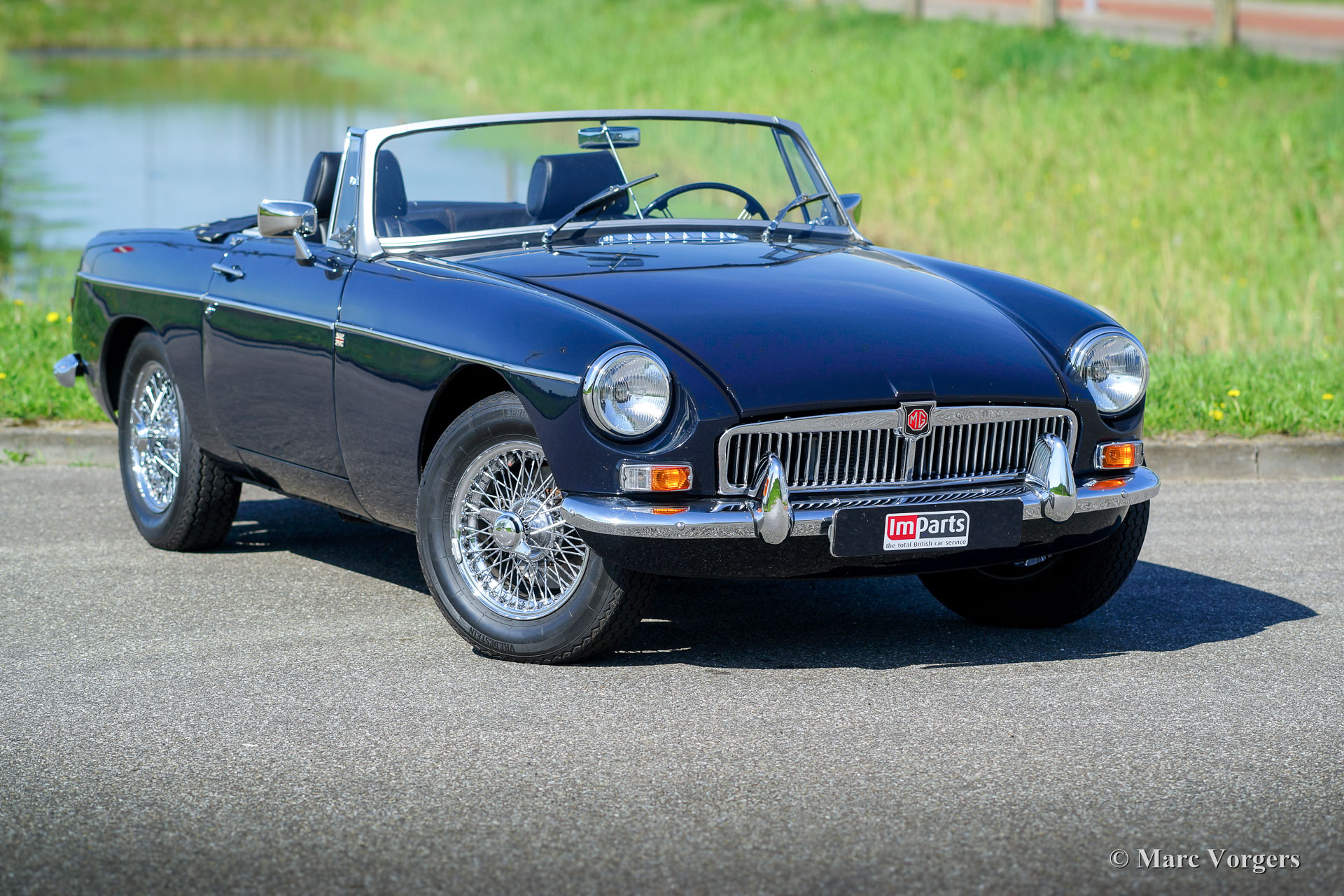 The MG B was the first MG (Morris Garage) to be built of unitary construction bodywork. The MG B roadster was manufactured between 1962 and 1980. Early models can be recognized by the chrome bumpers, but because of American rules on safety, the later models were equipped with synthetic bumpers. The greater part was exported to the United States.