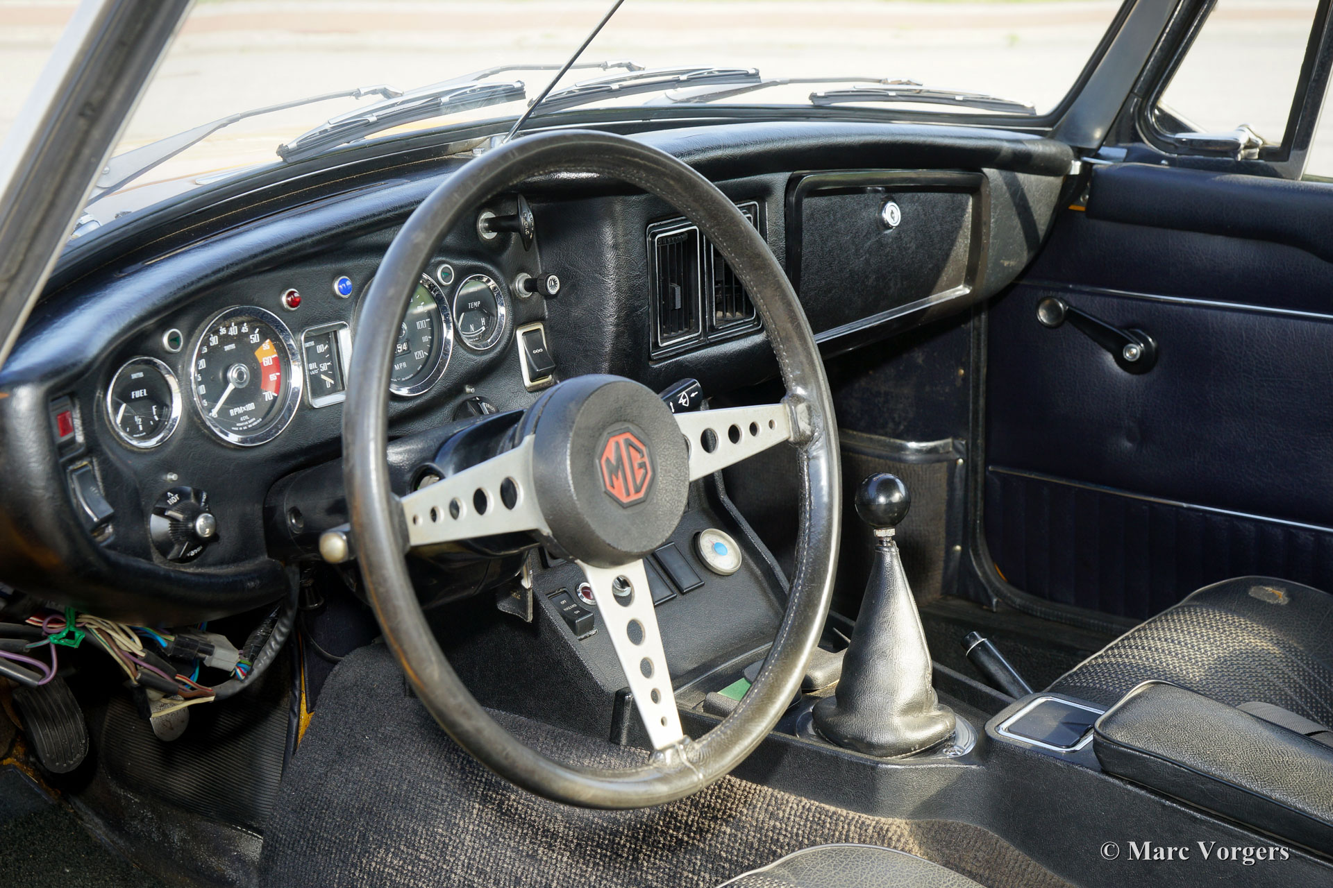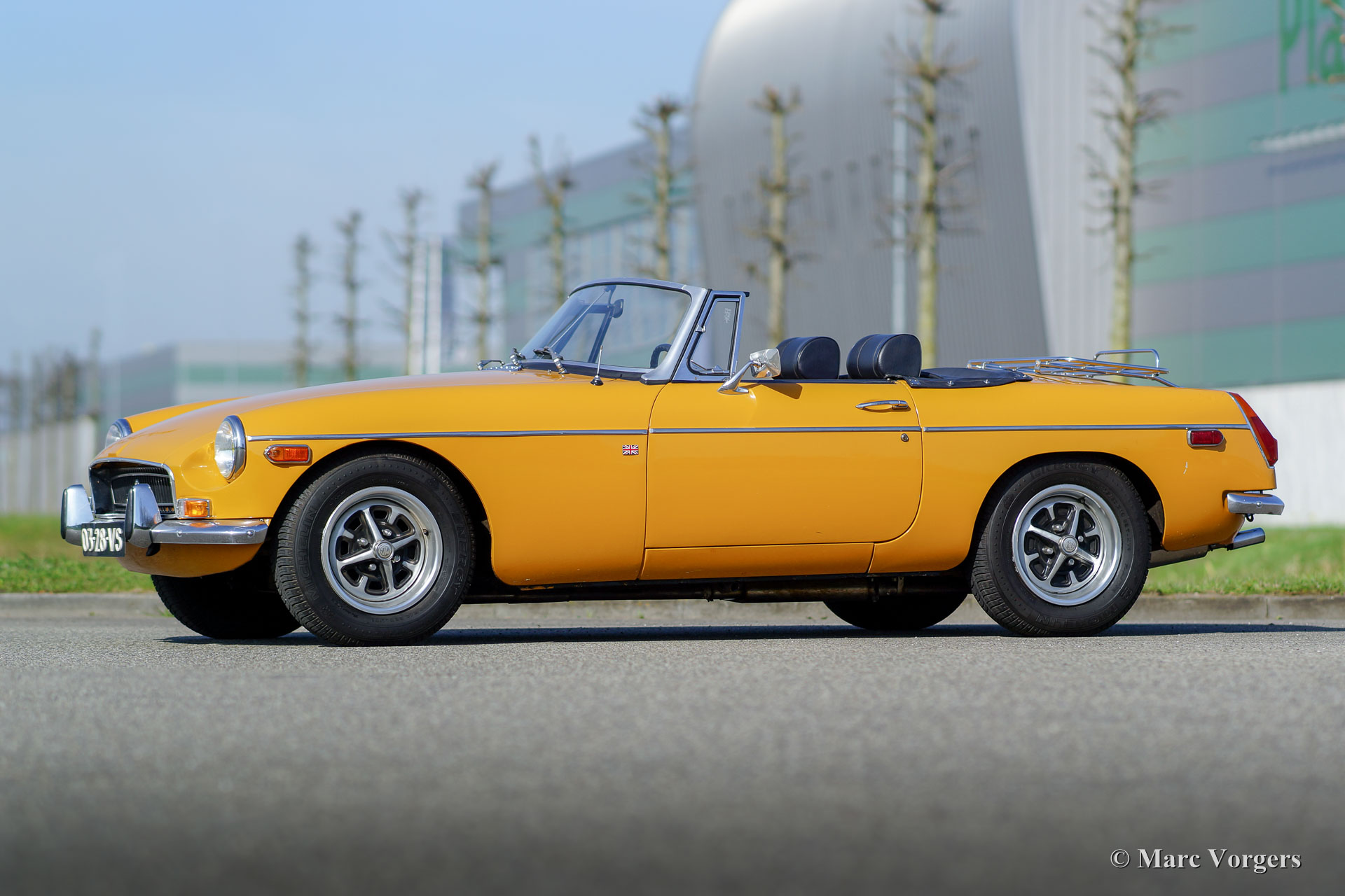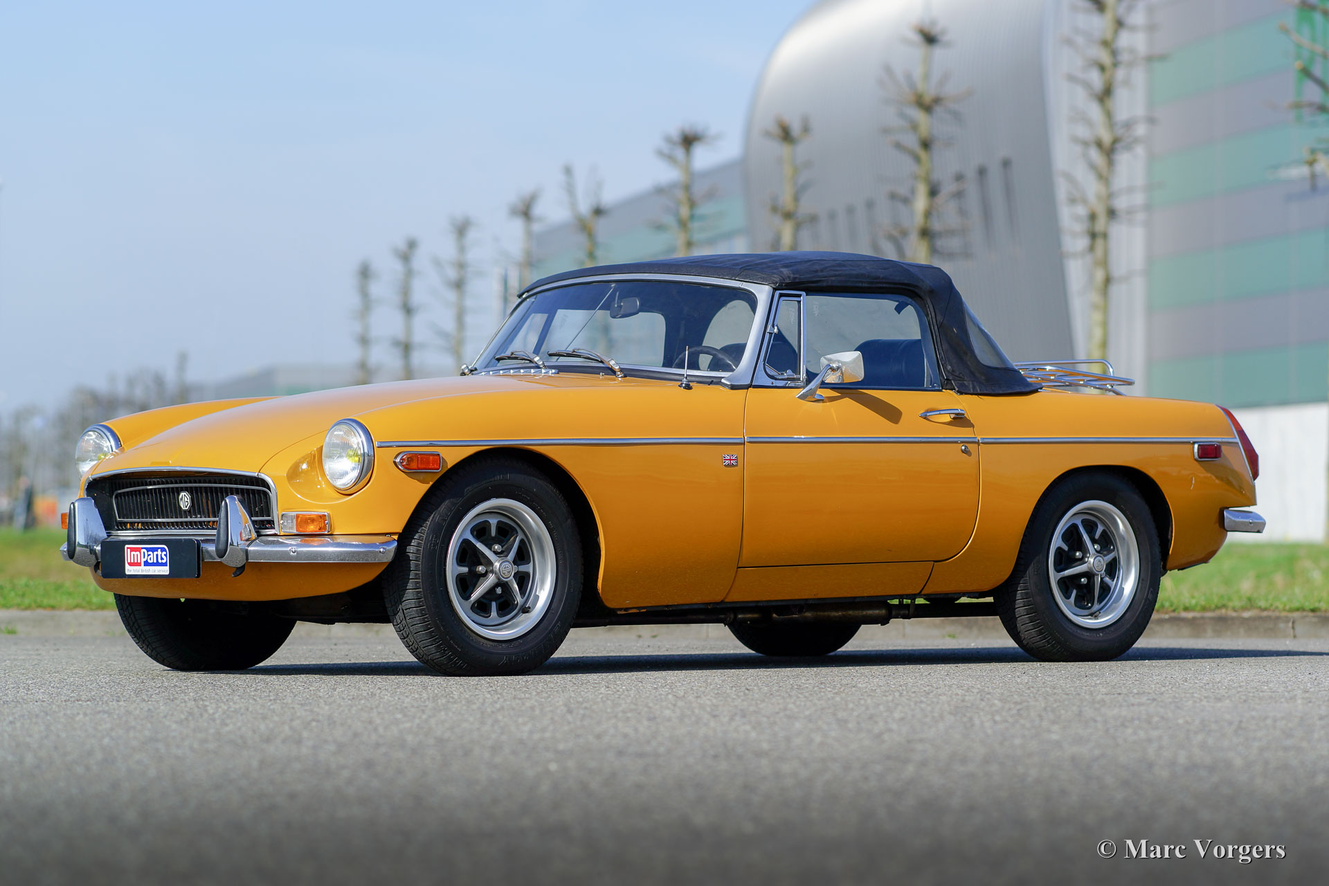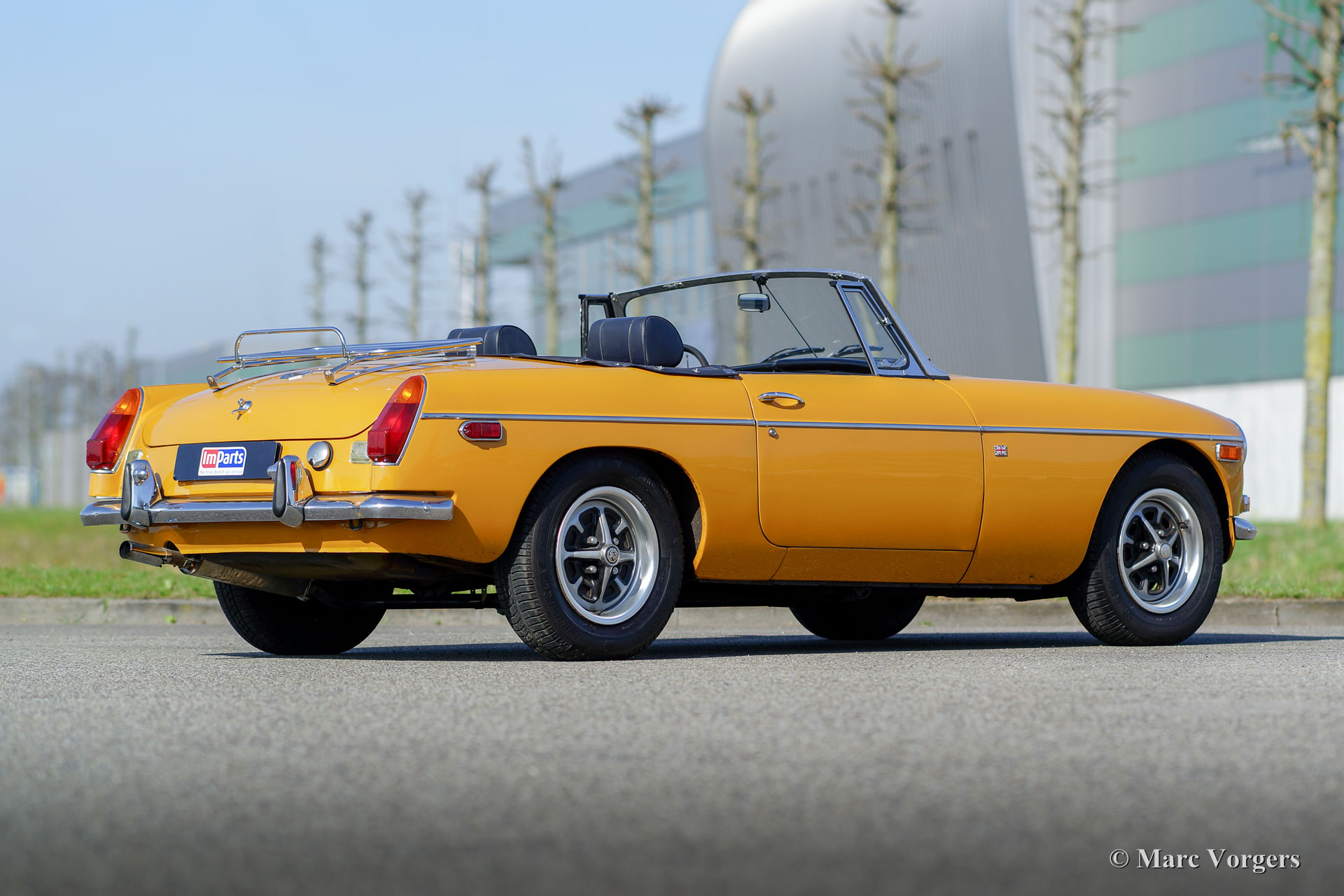 MG roadster MG, année 1973. Couleur jaune ocre combinée avec un intérieur en similicuir noir, tapis noir et une capote noire. Cette beau roadster MGB vient d'un passionné qui possède la voiture depuis 27 ans! La voiture est en très bon état de conduite avec des traces d'utilisation normales - un MGB idéal pour profiter au maximum ! La voiture dispose du moteur de 1800 cc, des roues Rostyle d'origine, de l'overdrive et d'un échappement en acier inoxydable. S'amuser !