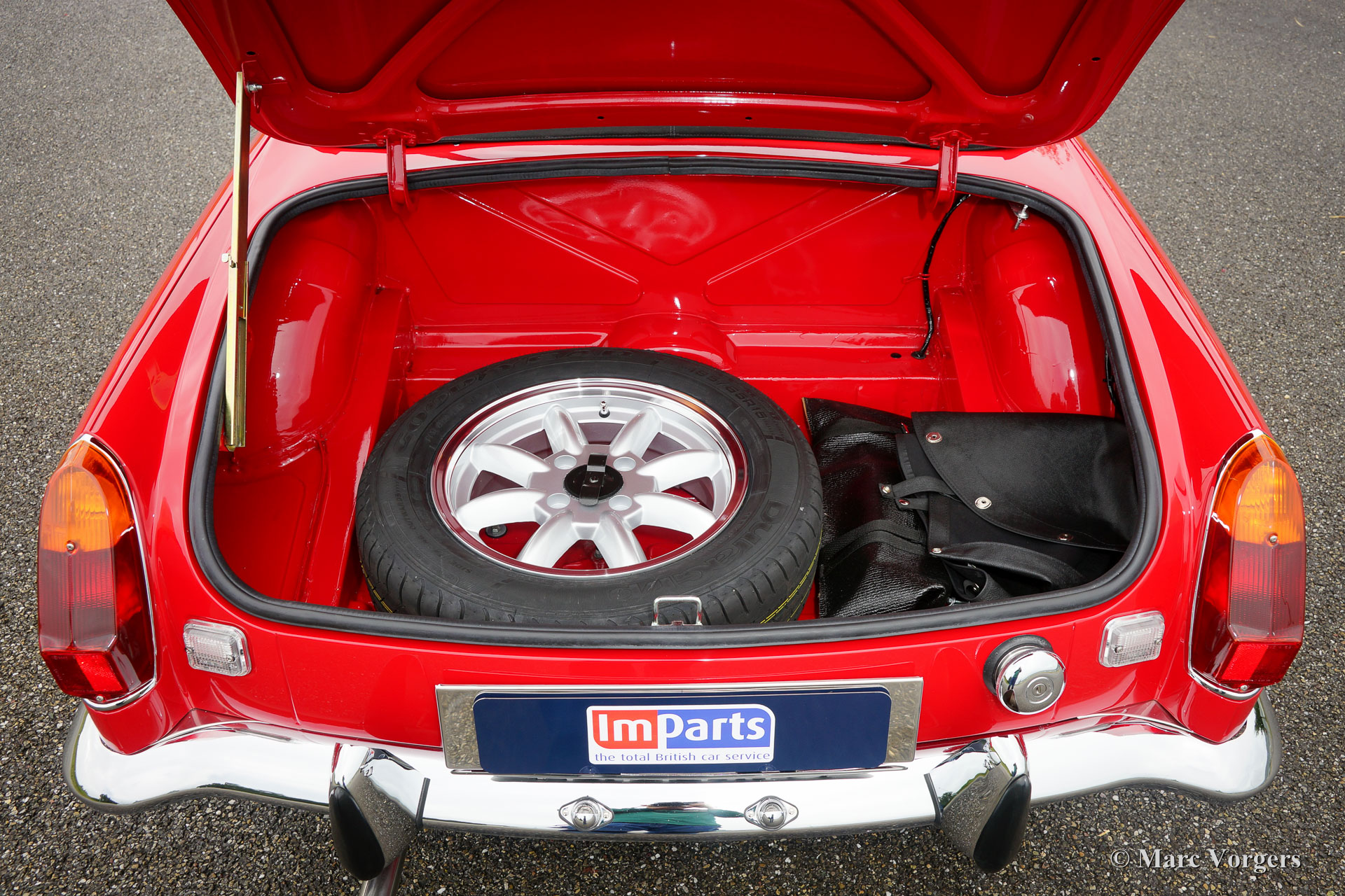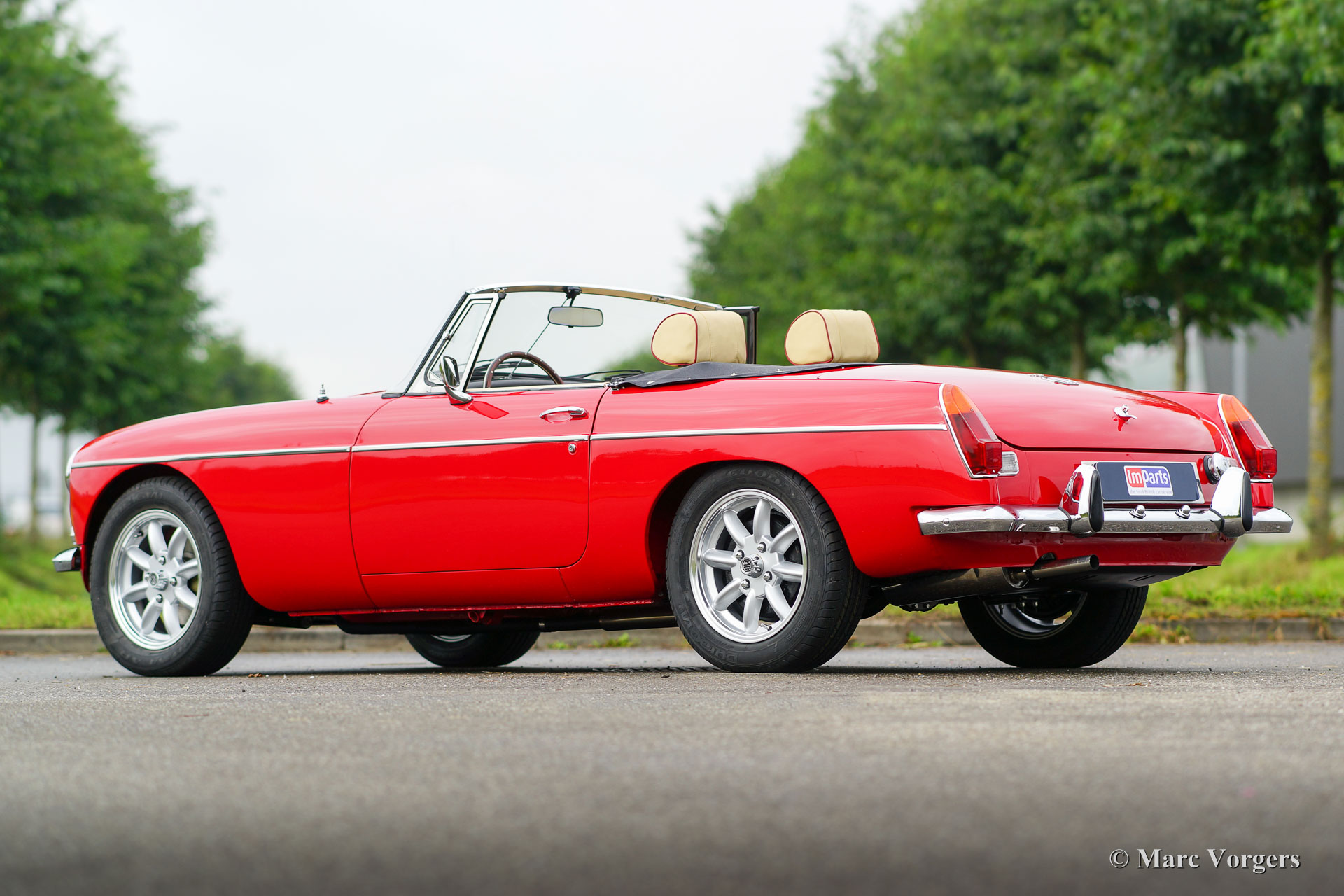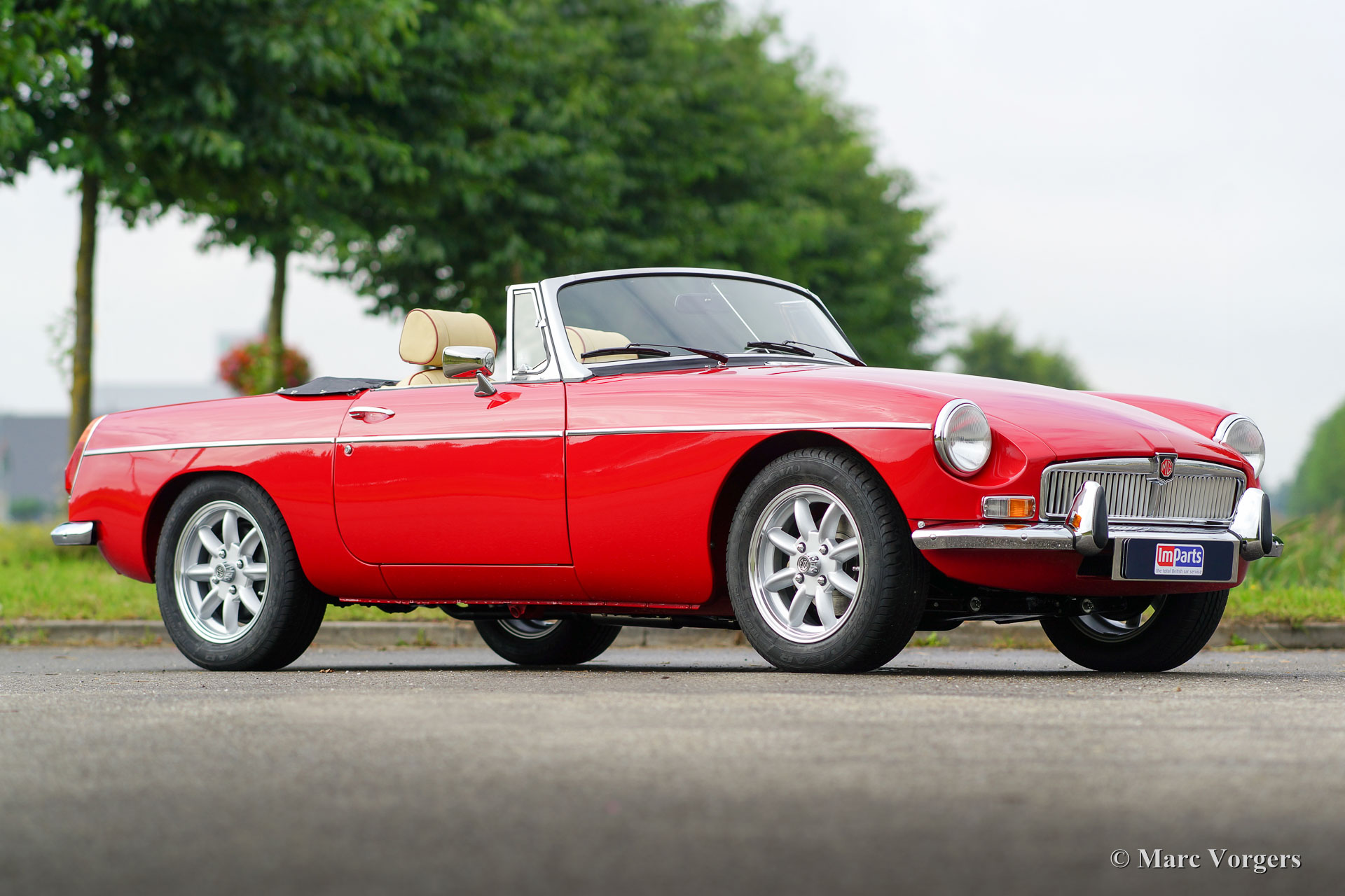 MG MGB roadster, année 1974. Couleur 'flamme rouge' avec un intérieur en cuir beige orné de passepoil rouge foncé. Capot mohair noir. Ce MGB 1974 était immatriculé aux Pays-Bas dans l'année 1975. Récemment, la voiture était flambant construit neuf! Une toute nouvelle carrosserie ’British Motor Heritage’ a été utilisé et tout a été renouvelé et / ou révisé. La voiture est à l'état neuf TOP et de la MG a entraîné seulement 2000 km depuis le boulon las a été resserré. Un vaste reportage photo de la construction est présent. Ce MGB roadster est livré complet avec overdrive, jantes en alliage de style Minilite, servo-freins, sellerie cuir, volant avec la jante en bois et d'une radio 'classic style' avec lecteur CD. Ce roadster MGB conduit parfaitement et mieux que de nouvelles!