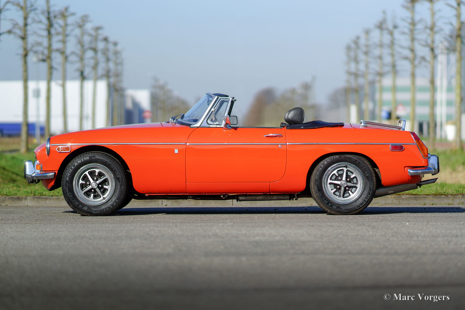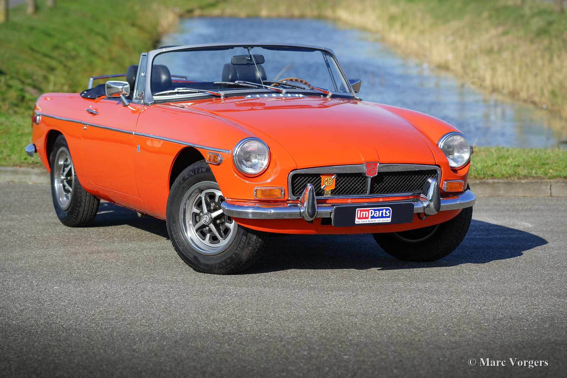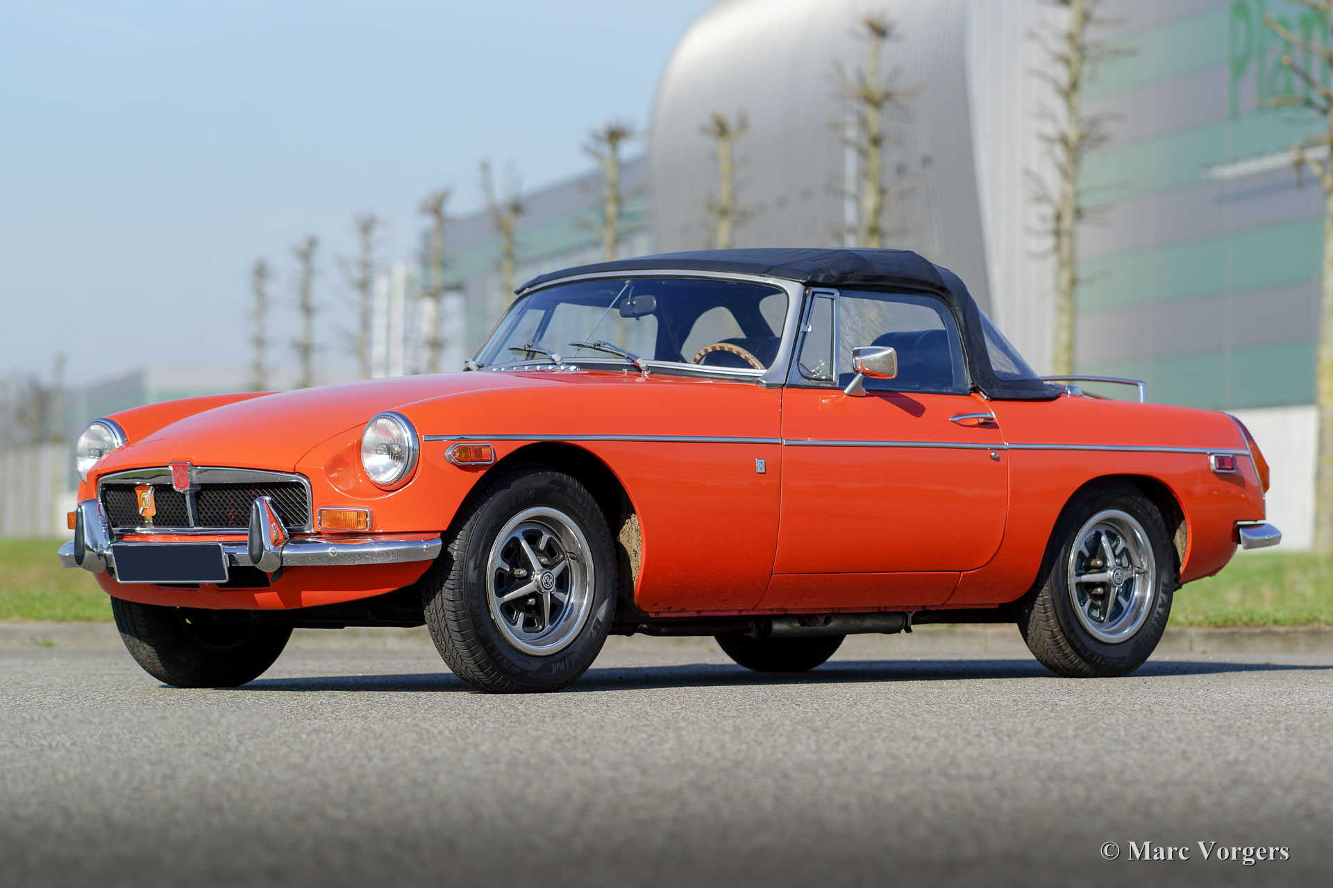 The MG B was the first MG (Morris Garage) to be built of unitary construction bodywork. The MG B roadster was manufactured between 1962 and 1980. Early models can be recognized by the chrome bumpers, but because of American rules on safety, the later models were equipped with synthetic bumpers. The greater part was exported to the United States.