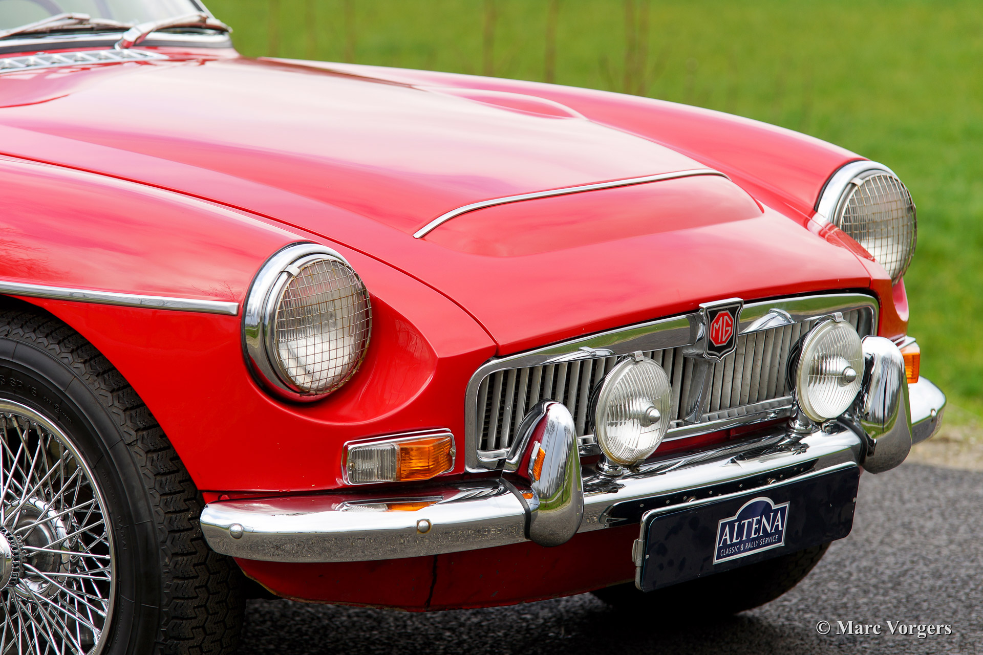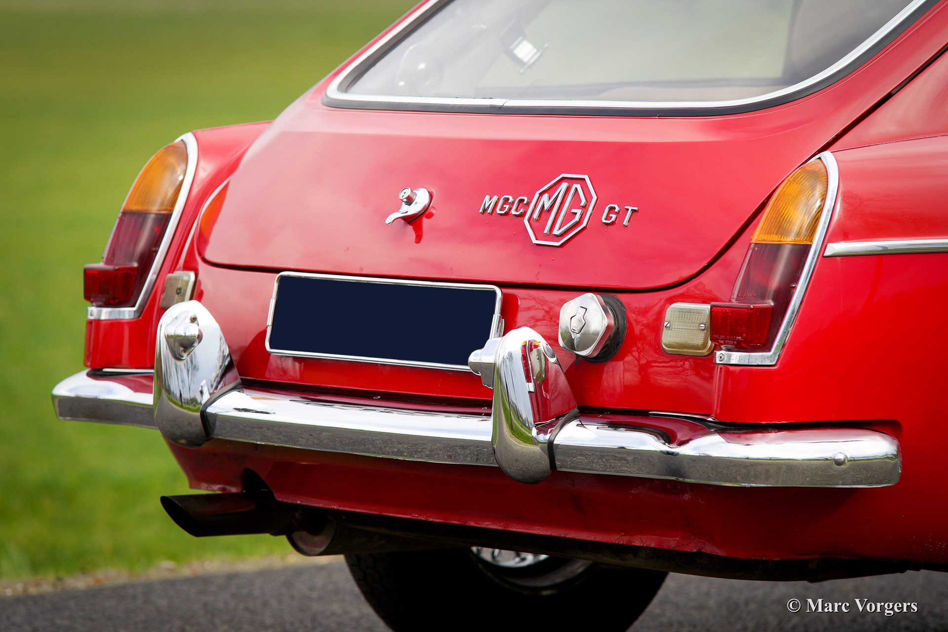 De MGC was built between 1967 and 1969 and was meant to be the successor of the Austin Healey. The MGC bodywork is identical to the MGB. De MGC was powered by a 2912 cc. six-cylinder in-line engine with an output of 145 bhp. The powerful engine made a top speed of 190 km/h (118 mph) possible. To cope with the weight of thee six-cylinder in stead of the four cylinder the MGC was equipped with a stronger torsion bar- suspension in front. 4542 MGC cars were built of which about 50% featured GT bodywork.