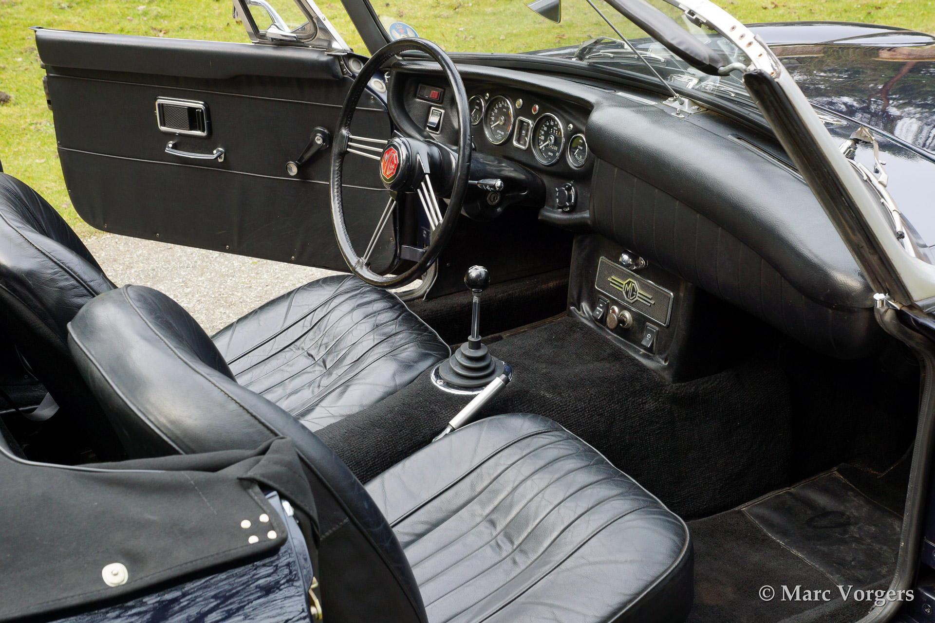 De MGC was built between 1967 and 1969 and was meant to be the successor of the Austin Healey. The MGC bodywork is identical to the MGB. De MGC was powered by a 2912 cc. six-cylinder in-line engine with an output of 145 bhp. The powerful engine made a top speed of 190 km/h (118 mph) possible. To cope with the weight of thee six-cylinder in stead of the four cylinder the MGC was equipped with a stronger torsion bar- suspension in front. 4542 MGC cars were built of which about 50% featured GT bodywork.