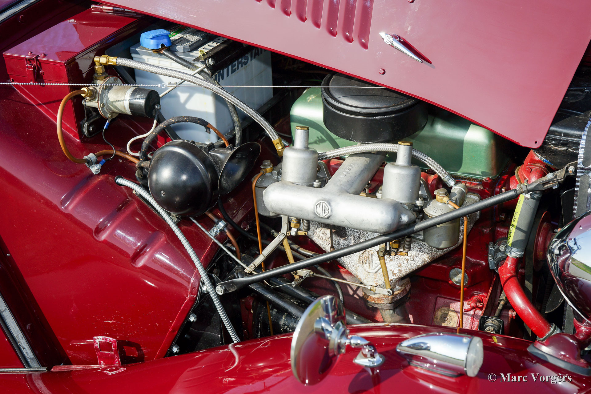 The MG TD was the successor of the MG TC, the British sports car that stole the hearts of the American soldiers returning to their country. Like the MG TC, America was the most important market for the TD. Chassis and body of the TD were largely similar to the TC. But the TD had a rack and pinion steering-gear, coil springs (instead of the leaf springs) and an independent wheel suspension in the front. The wings were different in form, as the large 19-inch wire wheels in the TD gave way to 15-inch wheels. A Mk II version was introduced in 1950, and was built simultaneously with the Mk I. The Mk II had a more powerful engine and a "power bulge" on the engine valve on the right. The MG TD was in production until 1953 and was replaced by the MG TF.
