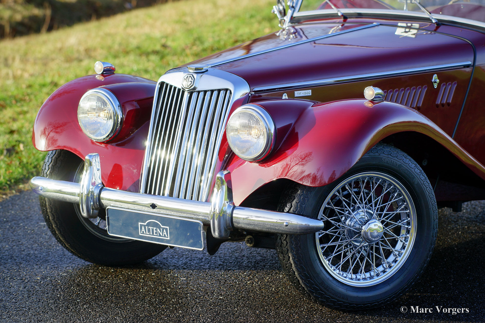 MG TF 1500, année 1955. Couleur rouge foncé avec un intérieur en cuir beige et tapis noir. Ce merveilleux et rare MG TF 1500 a été importé aux Pays-Bas en l'an 1999. Dans les années 2000 et 2001, l'automobile a été restaurée détaillée aux spécifications d'origine de l'usine. Un reportage photo de la restauration est présent. Depuis l'année 2001, la voiture n'a connu qu'un seul propriétaire ; Ce MG TF est en superbe condition TOP ! La voiture comporte des roues de fil de chrome, une ‘tonneau-cover’ et une batterie de Optima libre d'entretien. Le manuel d'instruction original est toujours avec la voiture ! Le MG TF offre une excellente expérience de conduire haut de gamme dans un style britannique impeccable classique. Un spécimen de qualité haut !