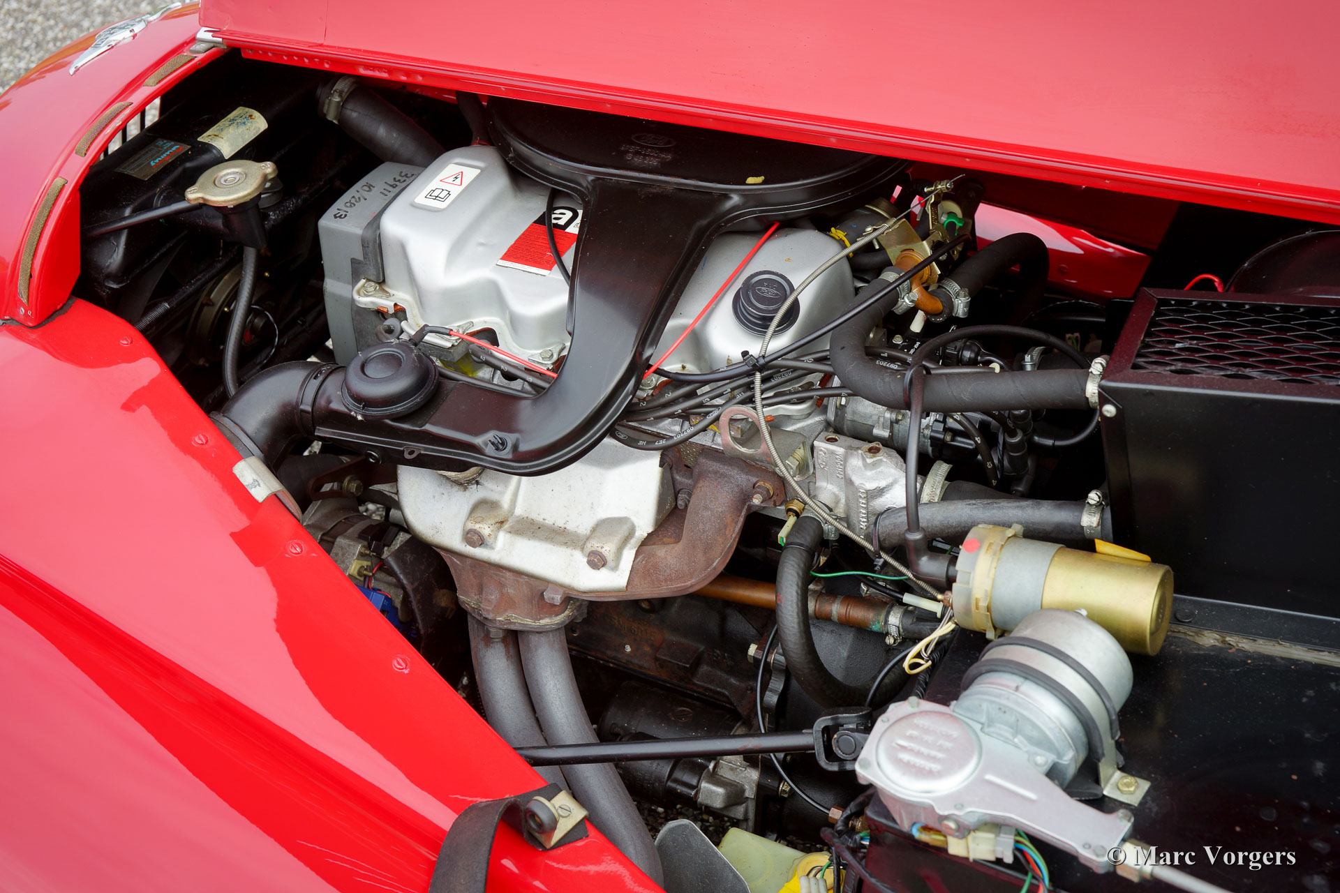 The Morgan 4/4 was built for over 50 years. The first model, introduced in the year 1936 was the 4/4 with flat radiator which was built until the year 1951. After a four year break (only the Morgan plus 4 was built those years) the Morgan 4/4 was going to be rebuild. The car did not change a lot (conservative as they are at the Morgan company), only the shape of the radiator changed from flat to cowled. Morgan never built their own engine, the early flat radiator cars were powered by Standard or Ford engines. The cowled radiator models were powered by Ford engines. The Ford engine used was known as the "Kent" engine and was also used in Fords Cortina model. Morgan 4/4 1600 cars were powered by the 1599 cc. Ford Kent engine which had a standard capacity of 98 bhp. giving the light car (two seater 660 kg./ four seater 785 kg.) sporty performance. The cars were fitted with a four speed manual gearbox. The modern Morgan 4/4 models are powered by a Ford Zetec 16V engine. These cars feature petrol injection and a five speed manual gearbox. The Morgan 4/4 is a very special car to drive because it has it's own strong character. It cannot be compared with any other roadster or convertible.