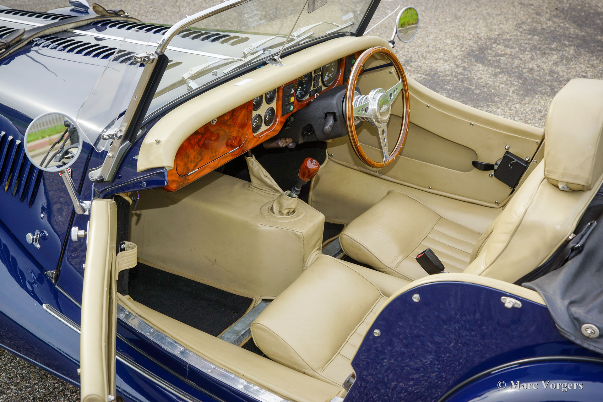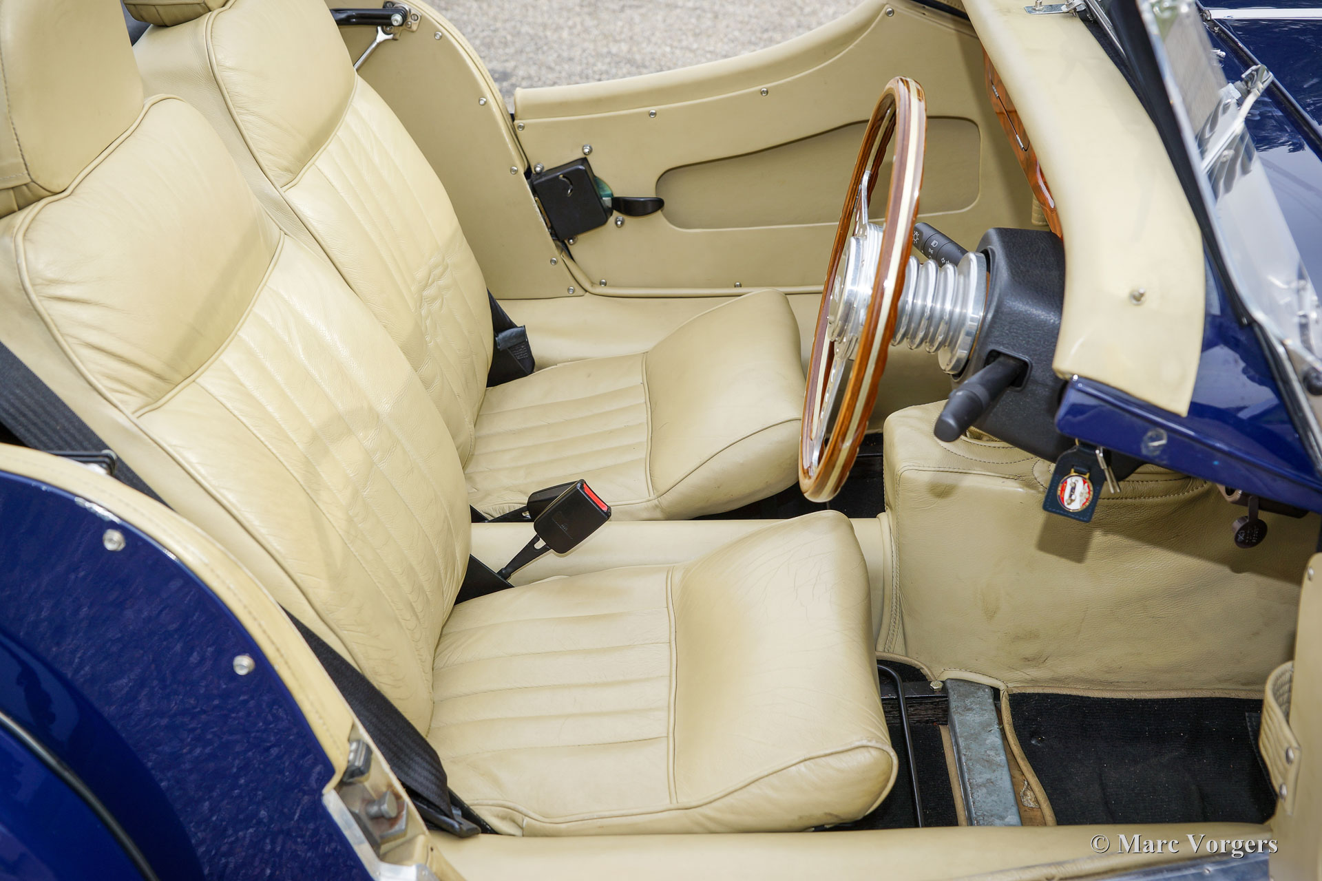 Morgan 4/4 1800, année 1998. Première immatriculation le 5 octobre 1998. Couleur bleu foncé associée à un intérieur en cuir beige et un tapis noir. Capot en vinyle noir, couvre-tonneau noir et cadres des écrans latéraux en aluminium. Cette fantastique Morgan 4/4 fut importée aux Pays-Bas en 2017, la voiture est chez le deuxième propriétaire néerlandais depuis le 31 décembre 2019. Cette merveilleuse machine est équipée du moteur quatre cylindres Ford Zetec 1800 puissant et fiable. La puissance est transmise aux roues arrière via une boîte de vitesses à cinq rapports, et la puissance de freinage est assurée par des freins à disque servo-assistés à l'avant et des freins à tambour à l'arrière. La Morgan ne pèse que 868 kilogrammes, combinée avec le puissant moteur à 16 soupapes de 120 ch, c'est une véritable voiture de sport ! Cet exemple comprend des roues à rayons de 15 pouces peintes en gris argenté chaussées de pneus Continental, un porte-bagages, un tableau de bord en noyer et un volant sport avec une jante en bois, une barre d'insigne avec des projecteurs supplémentaires, et une ceinture en cuir sur le capot. Depuis l'origine, cette belle Morgan 4/4 n'a parcouru que 28 000 miles. L'expérience de conduite est sportive et classique des années 1950/1960, avec l'avantage d'une technologie et d'une fiabilité plus modernes. Vous ne retrouverez cette expérience unique dans aucune autre voiture. Une voiture de sport britannique unique construite à la main !